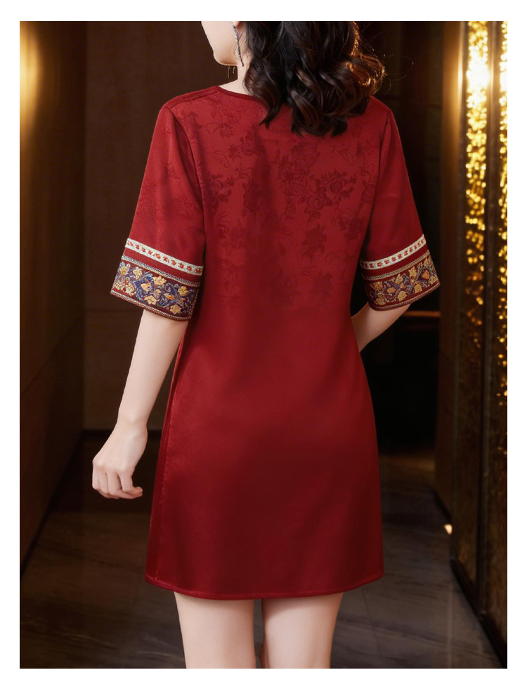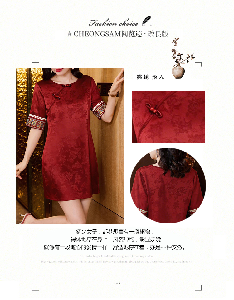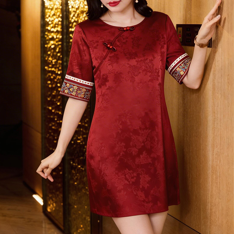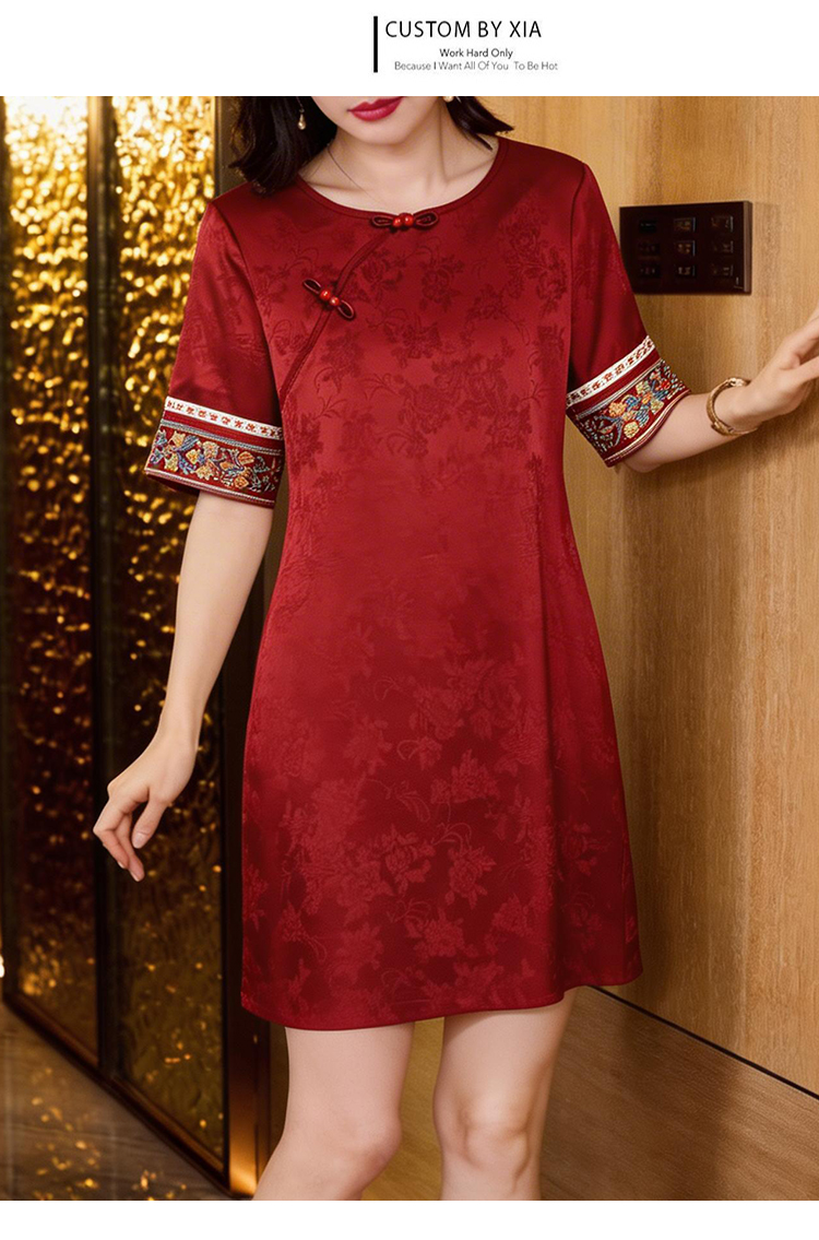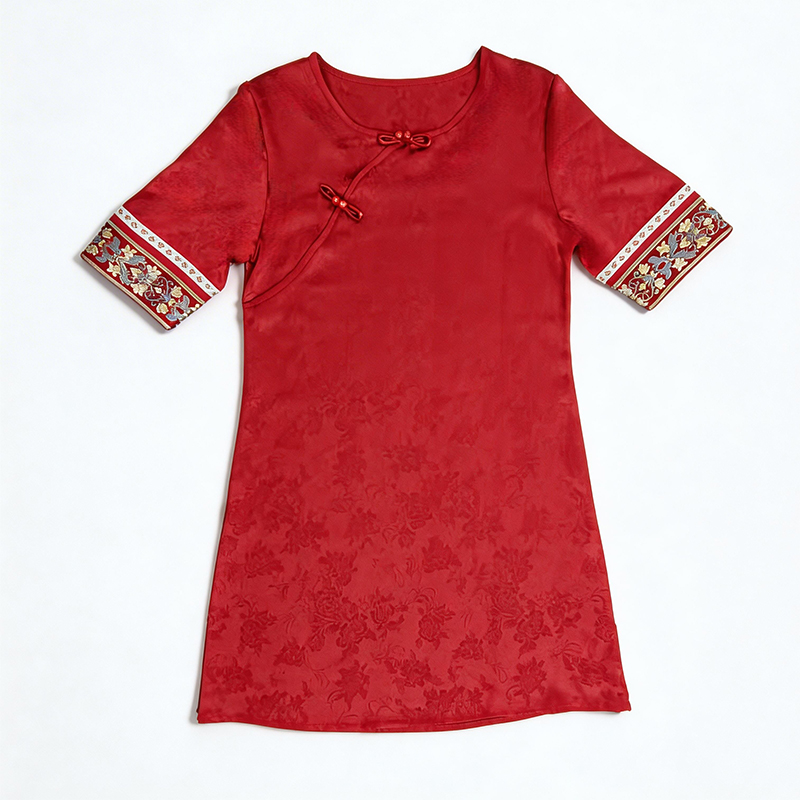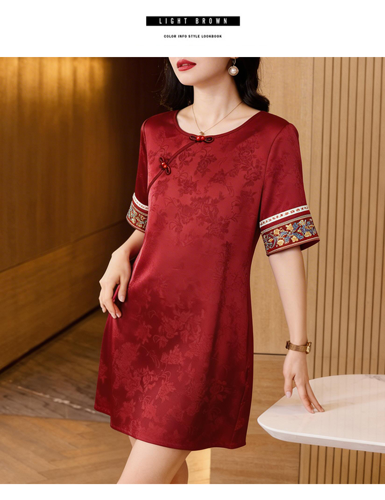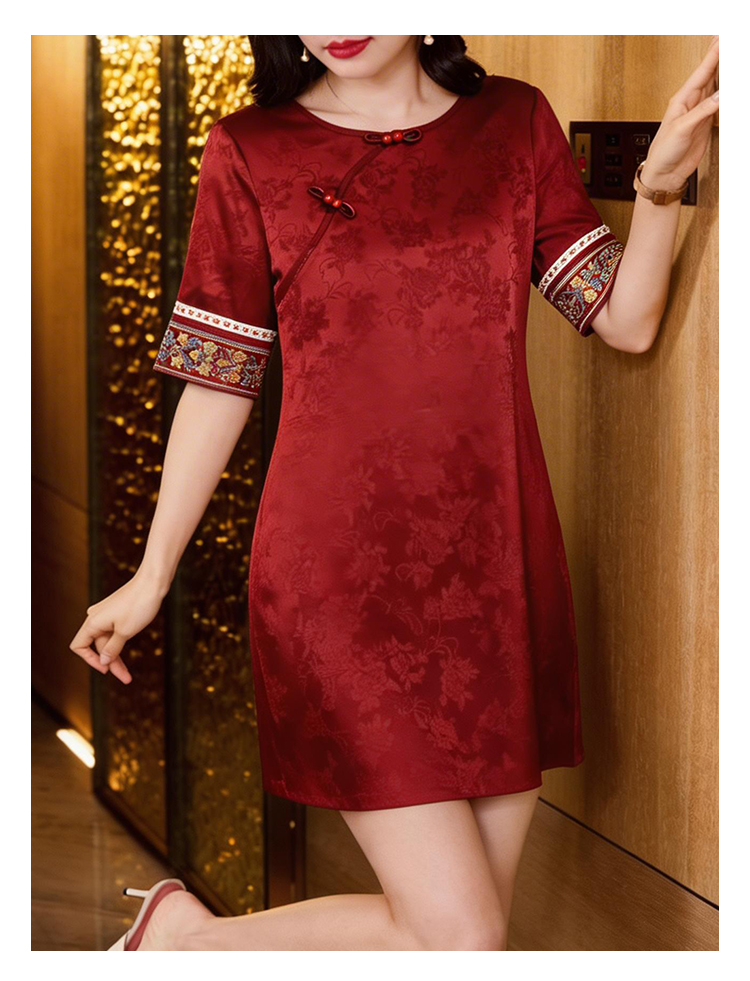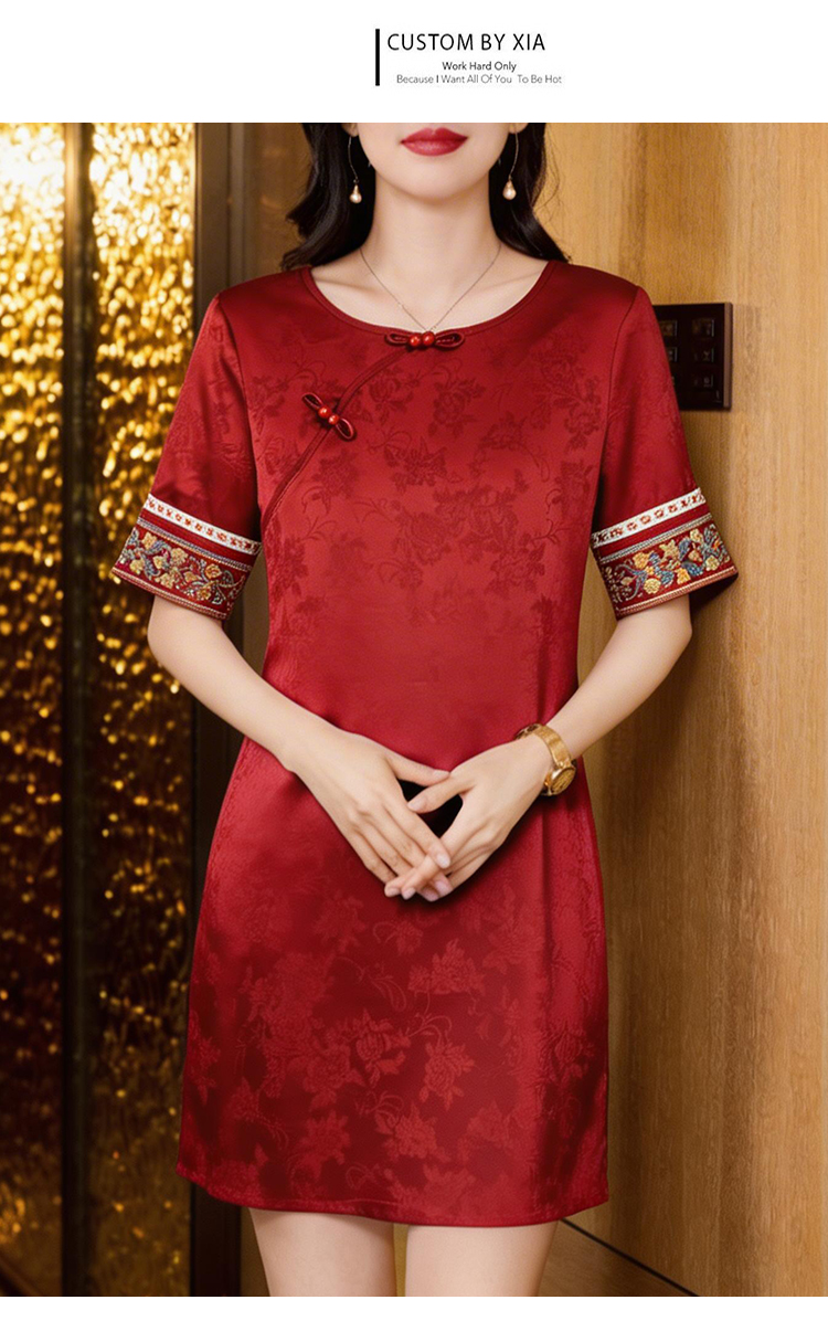 RY2999# 实拍春夏新款提花缎面连衣裙2026新款新中式盘扣设计感百搭裙子
