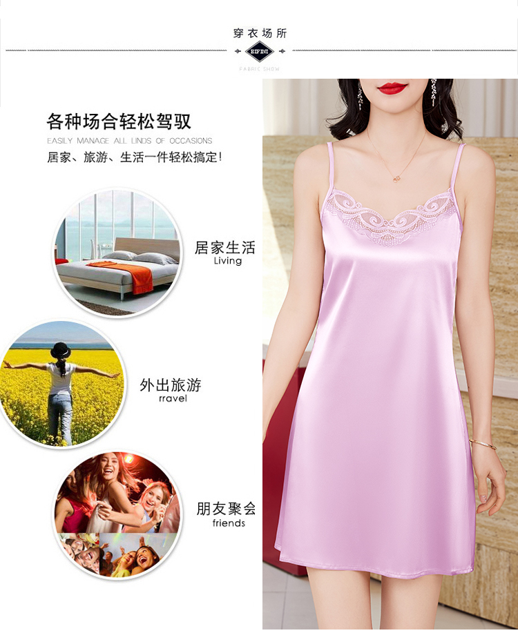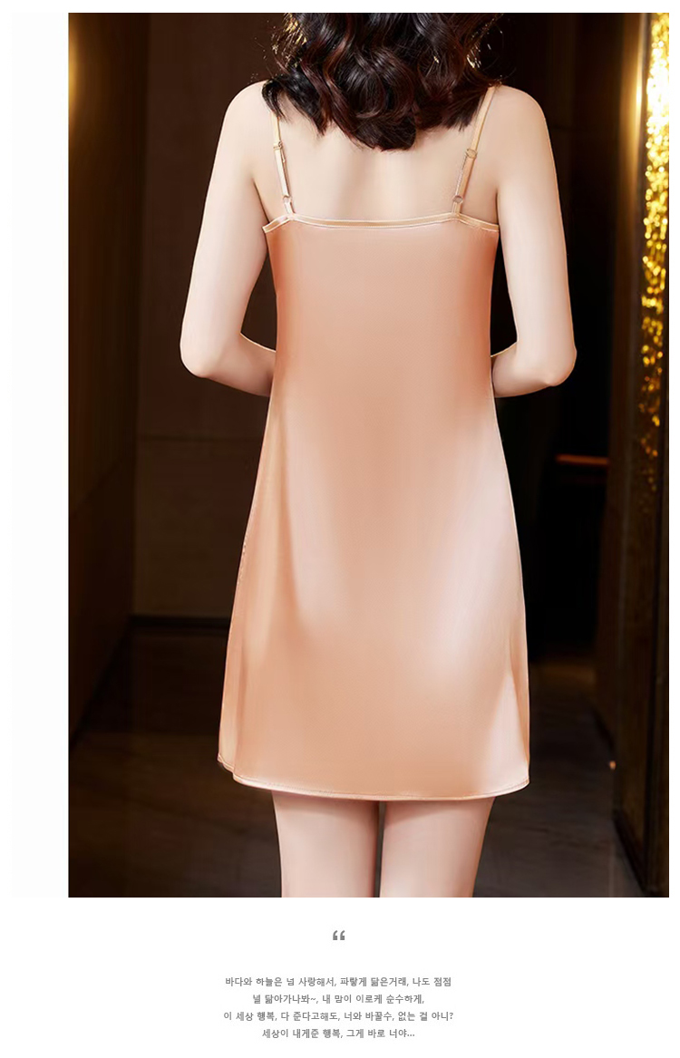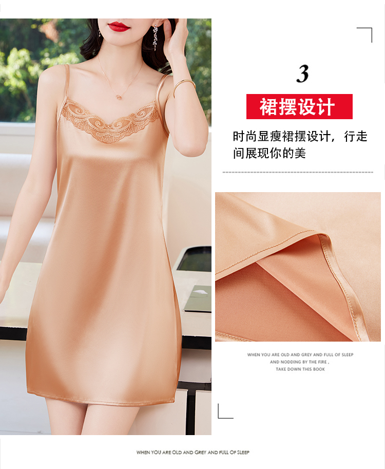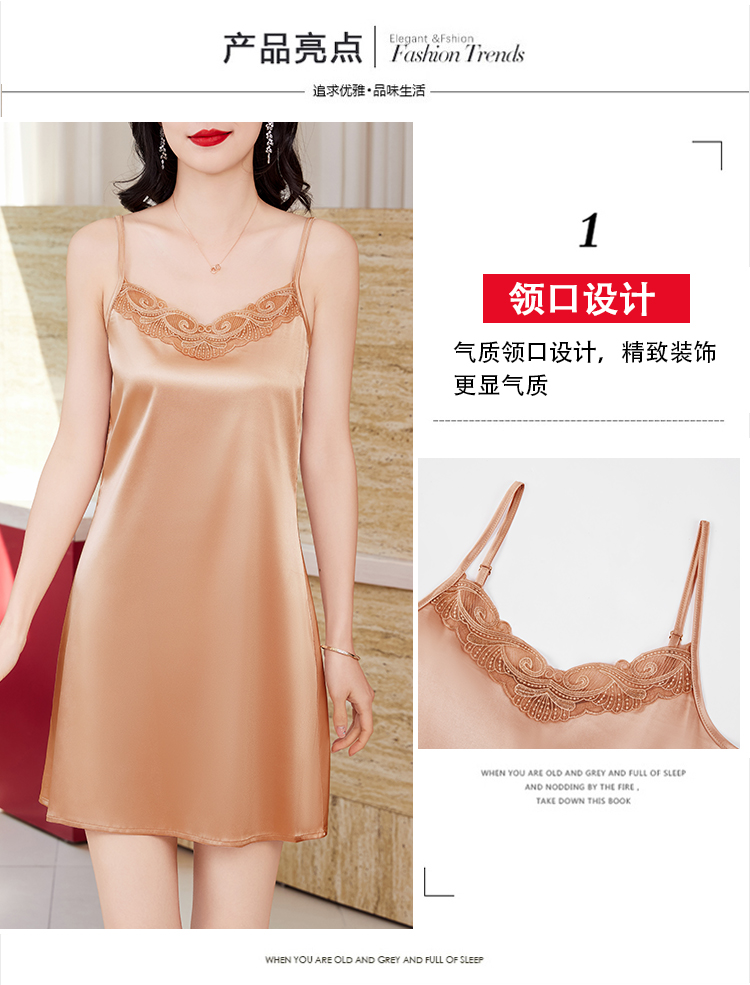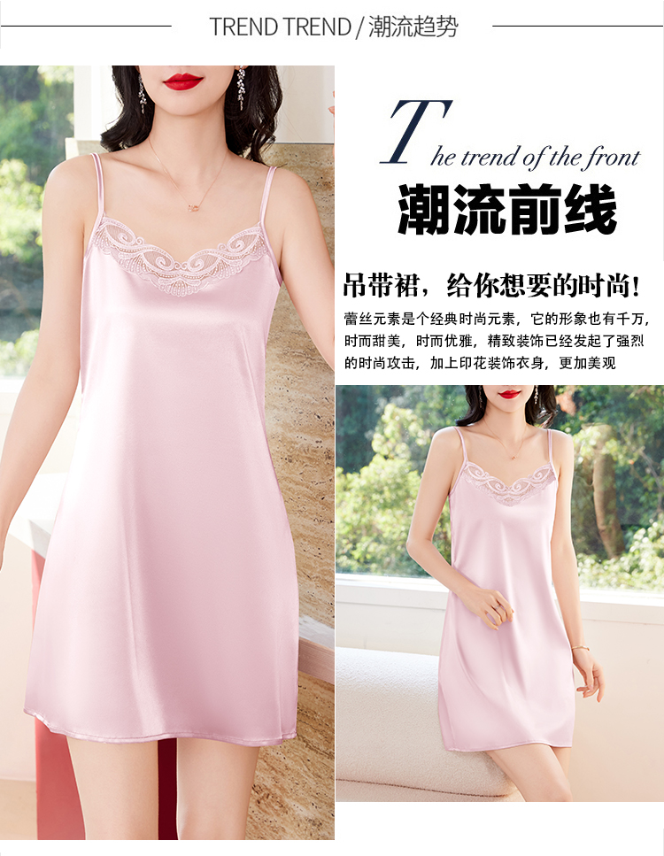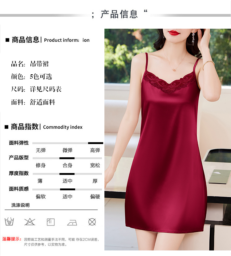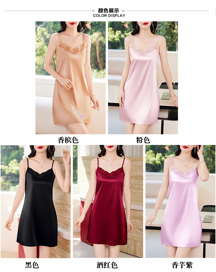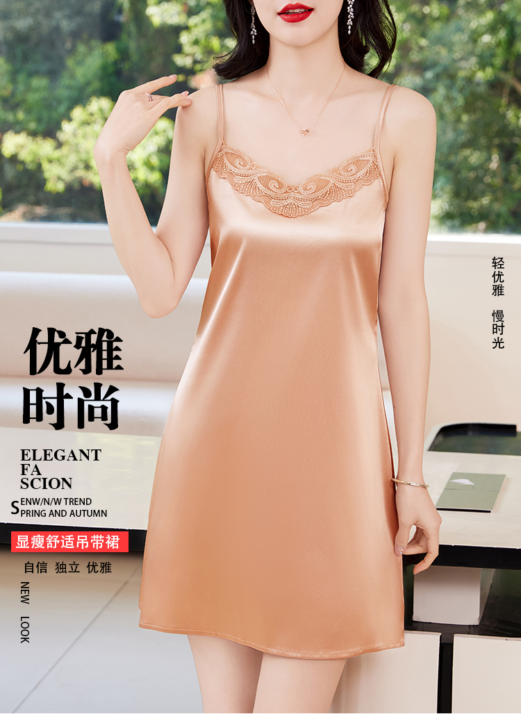 RY3002# 实拍2026春夏新款缎面韩版宽松吊带裙蕾丝V领纯欲设计感百搭a字裙
