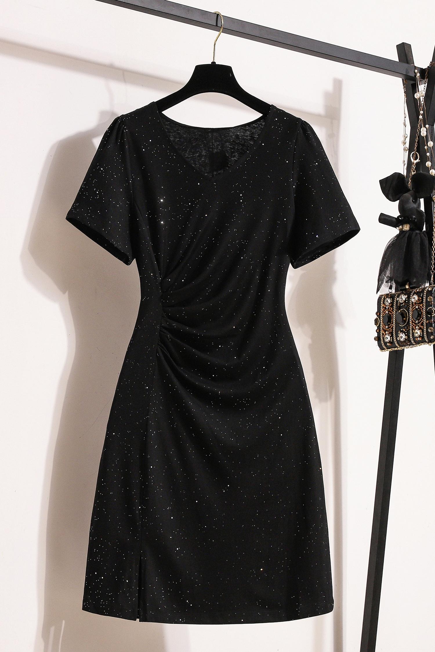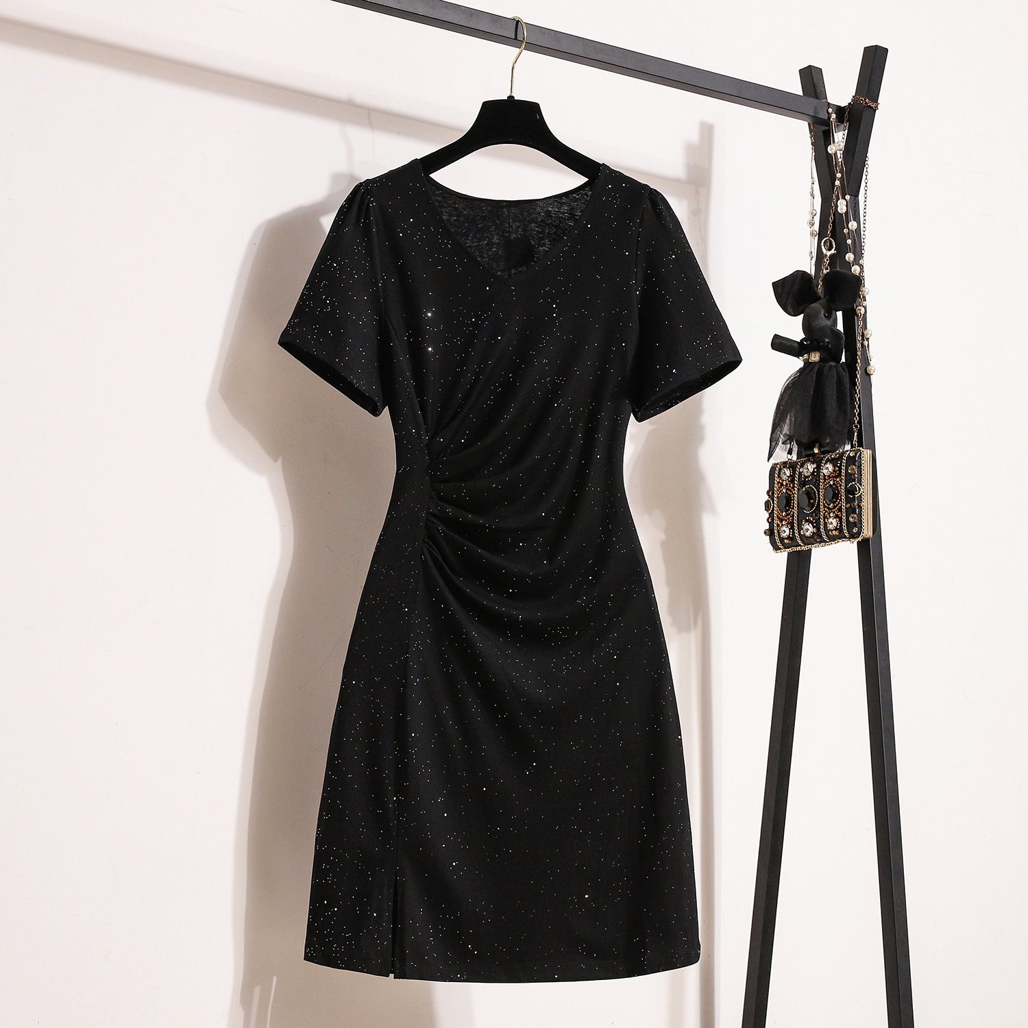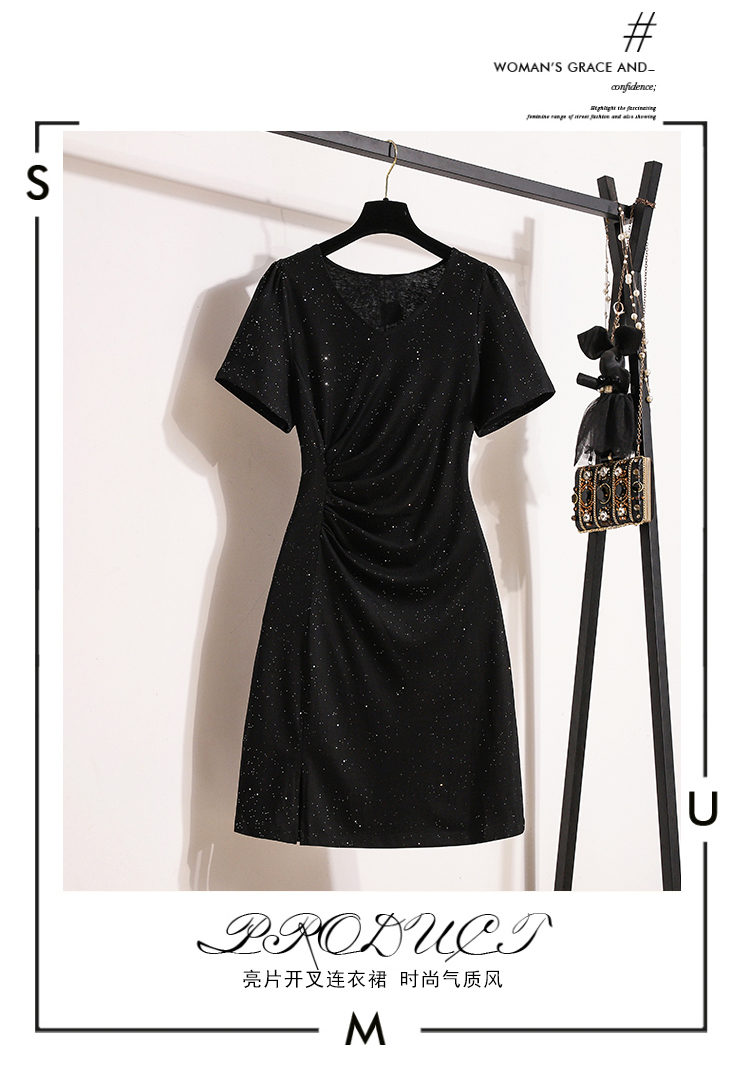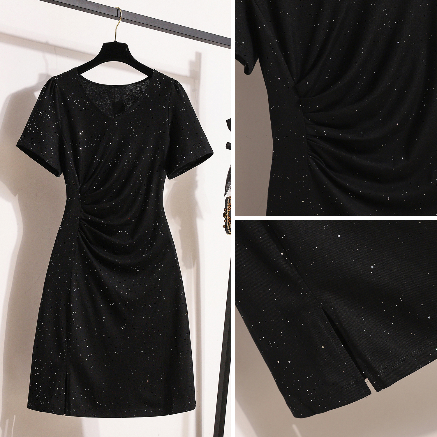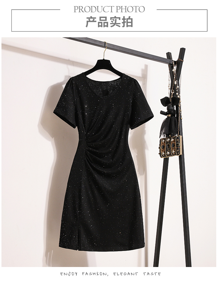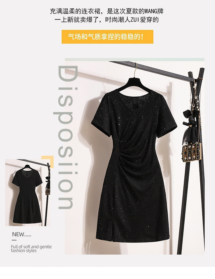 RY3003# 实拍大码女装2026夏季新款亮晶晶连衣裙微胖妹修身显瘦气质中长裙