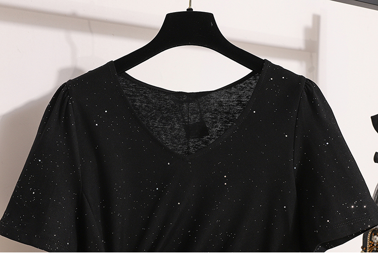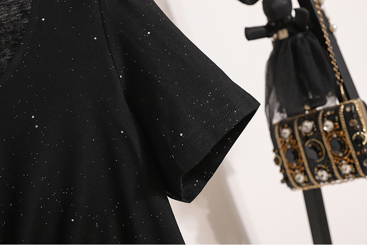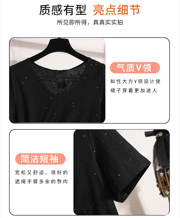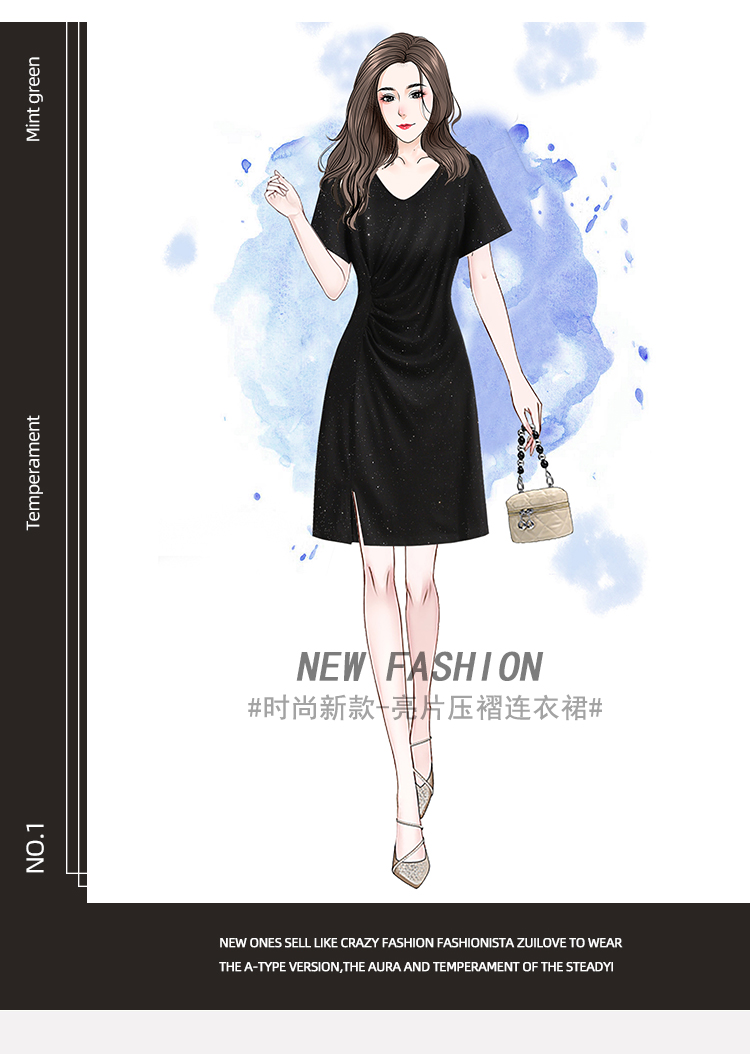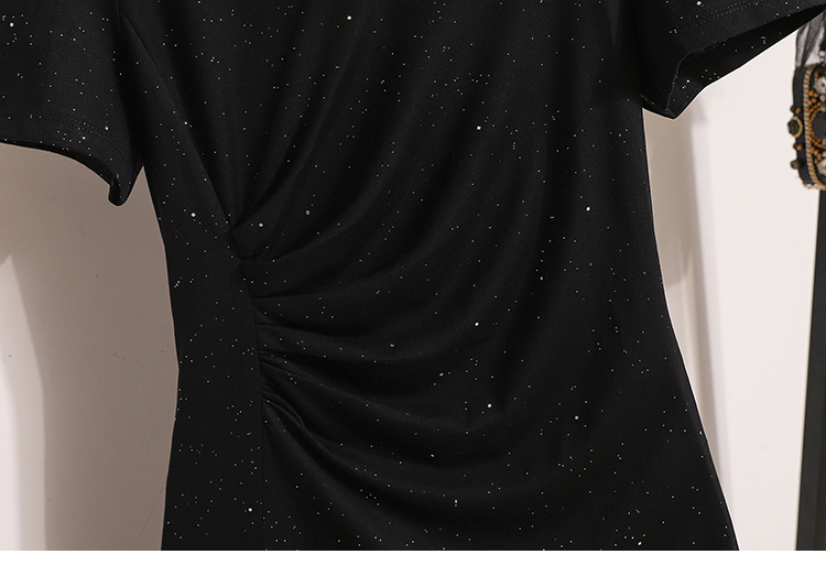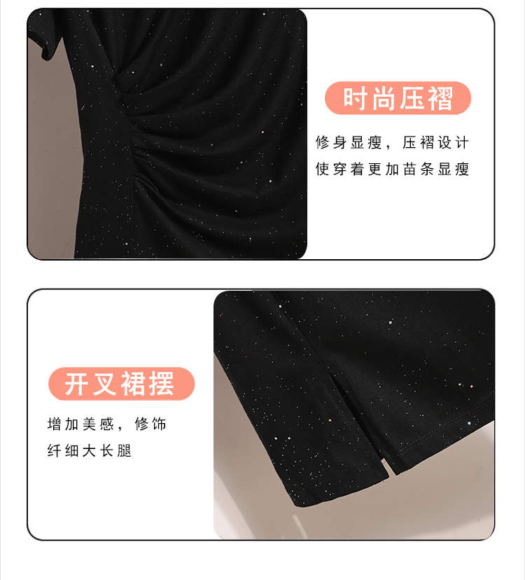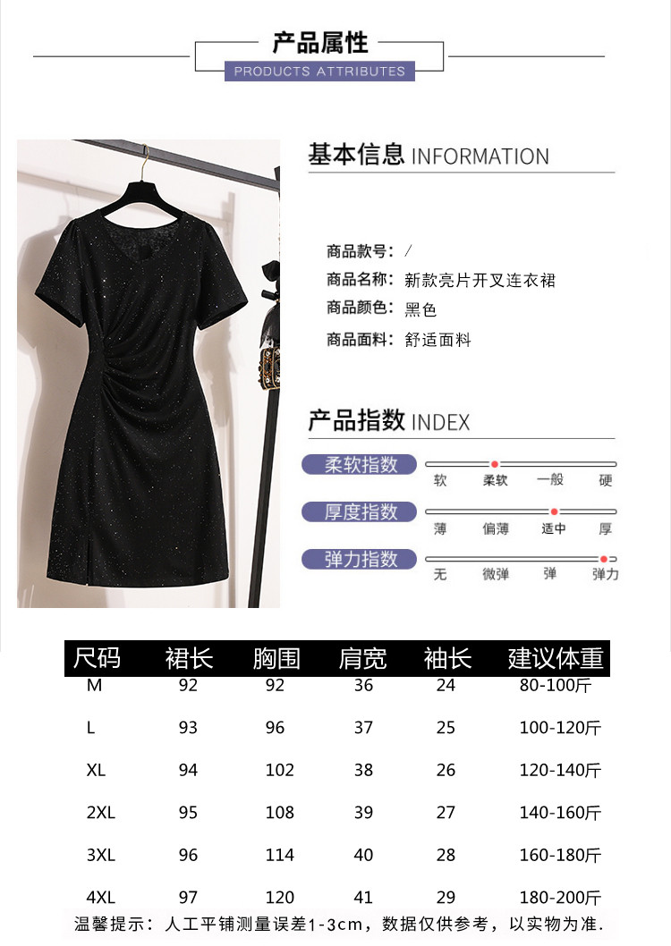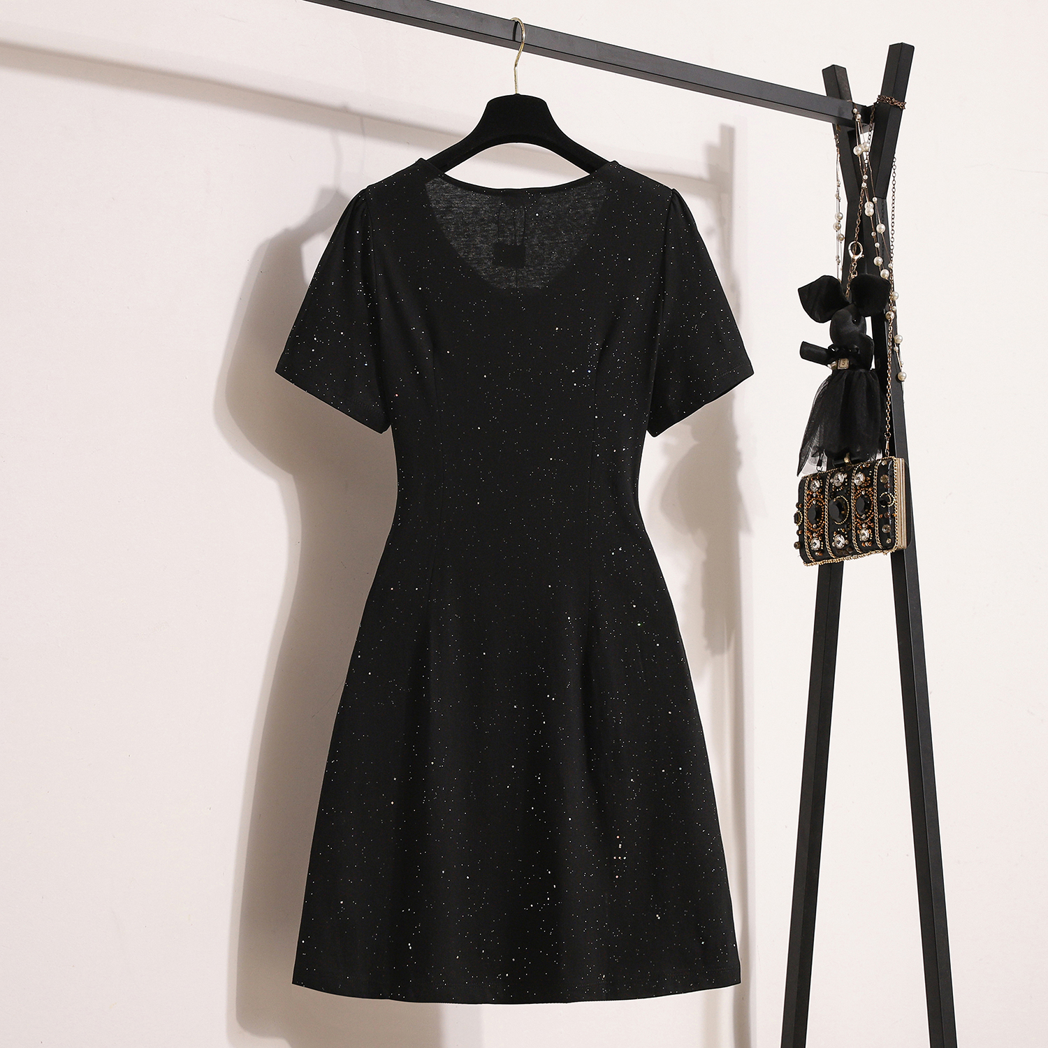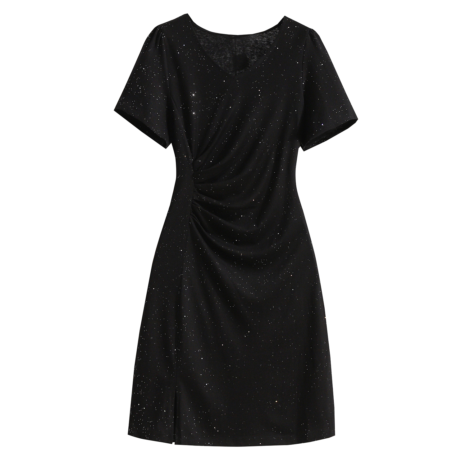 RY3003# 实拍大码女装2026夏季新款亮晶晶连衣裙微胖妹修身显瘦气质中长裙