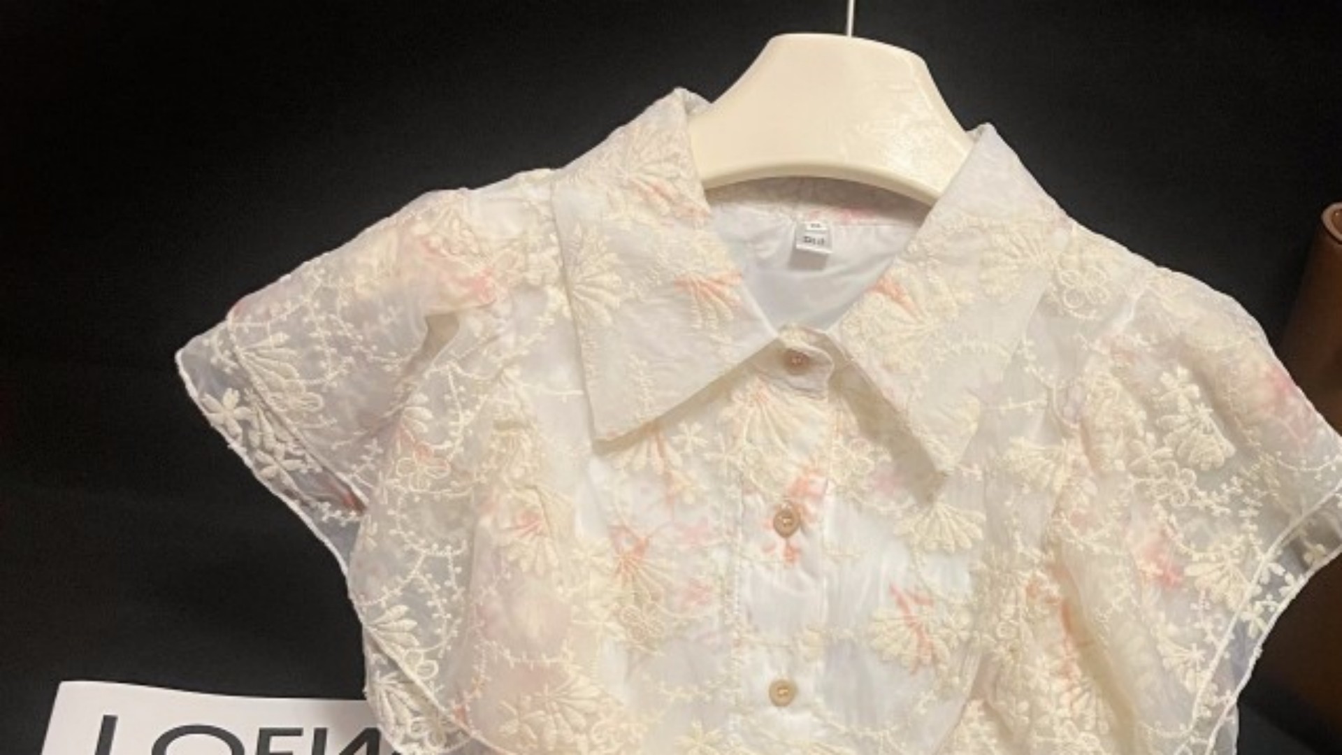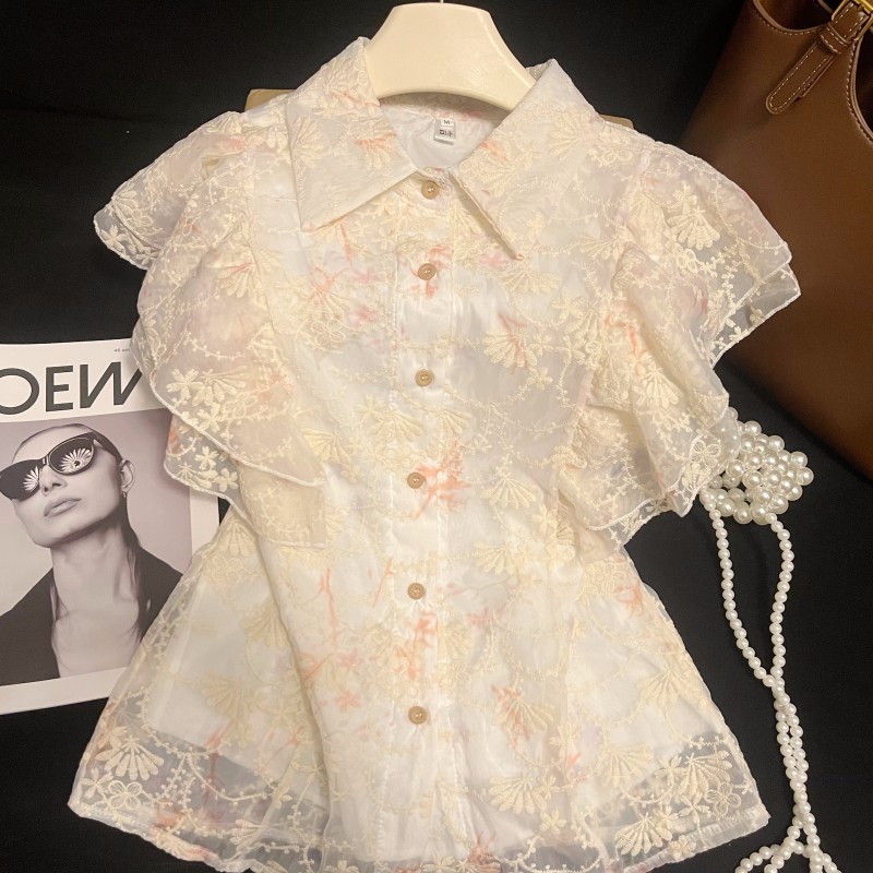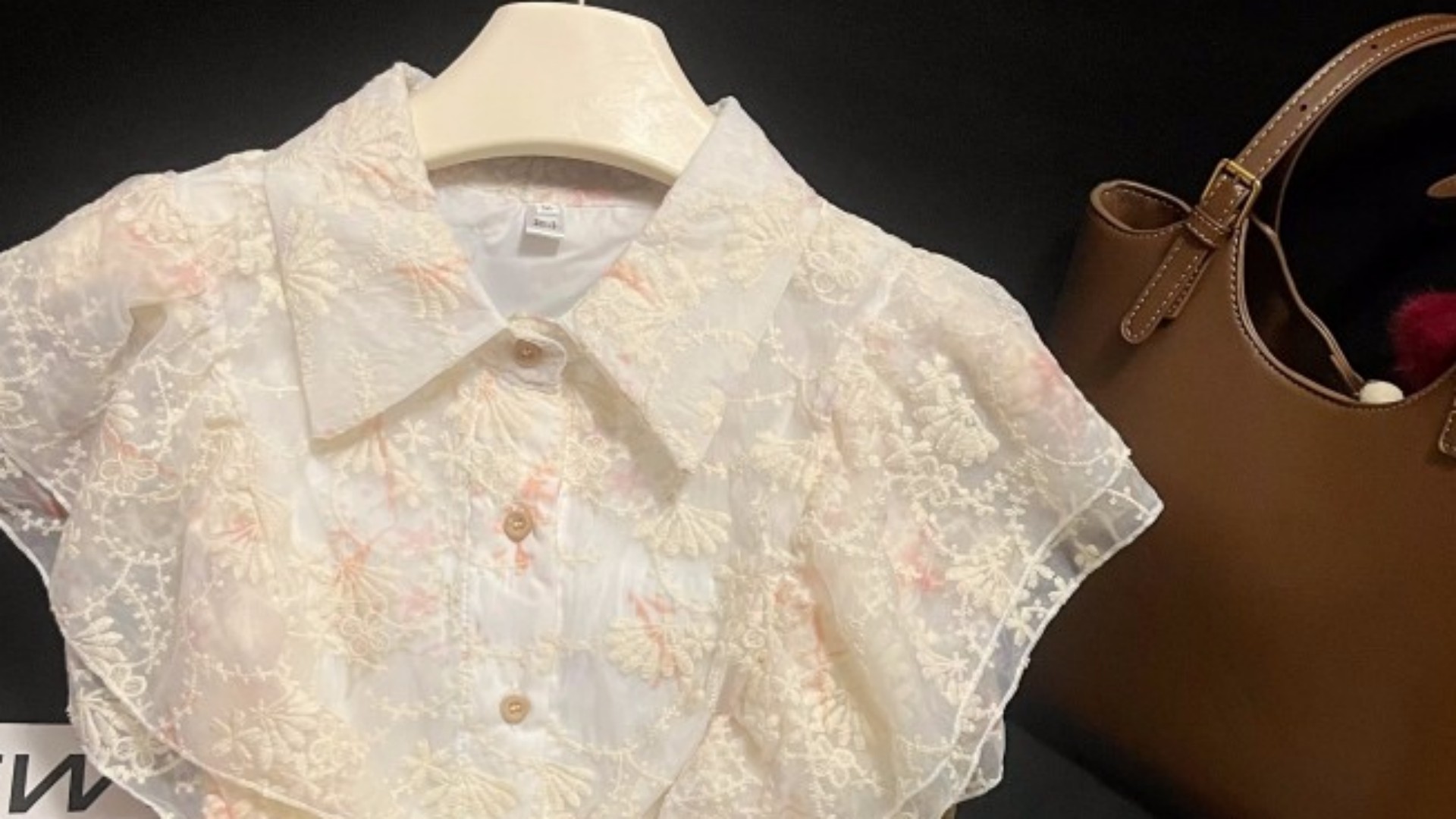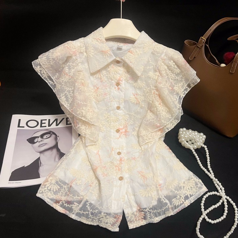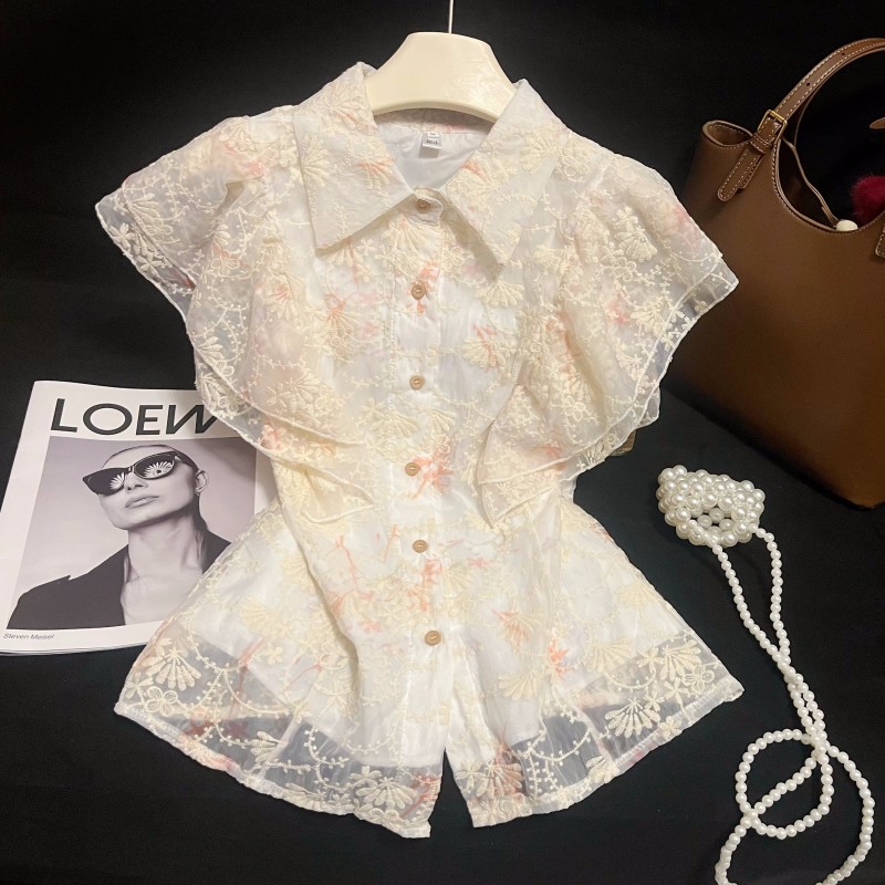 RY3190# 实拍2026夏季新款刺绣雪纺衫法式轻奢飞飞袖开衫Polo领洋气百搭