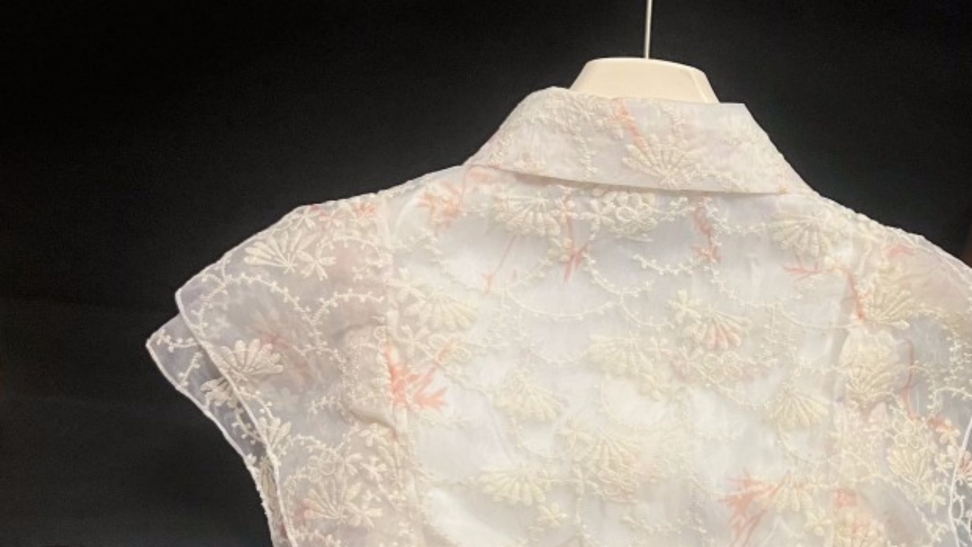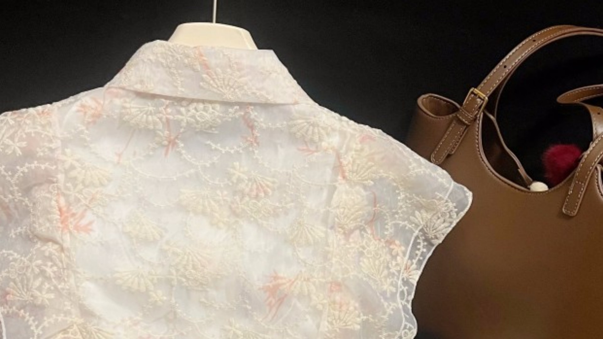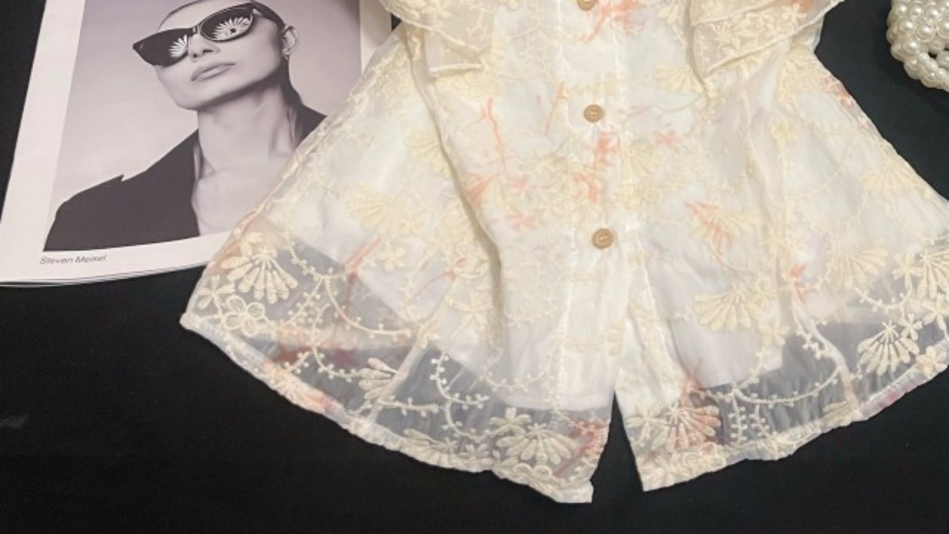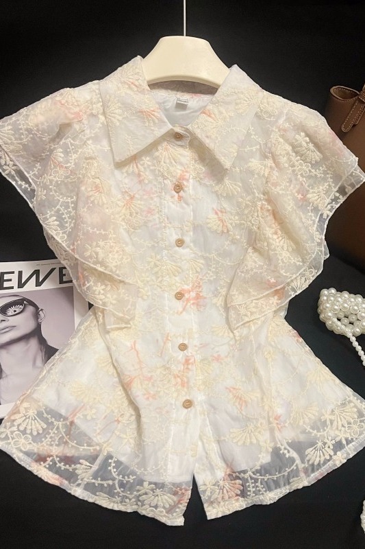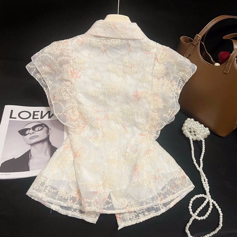 RY3190# 实拍2026夏季新款刺绣雪纺衫法式轻奢飞飞袖开衫Polo领洋气百搭
