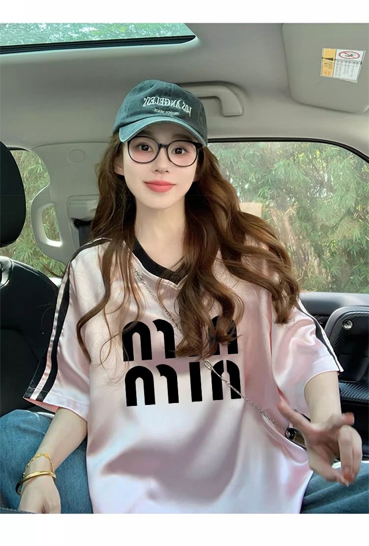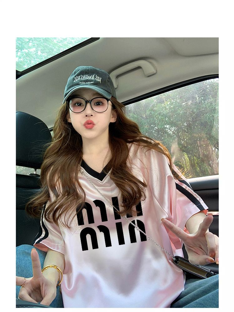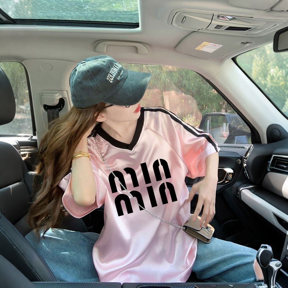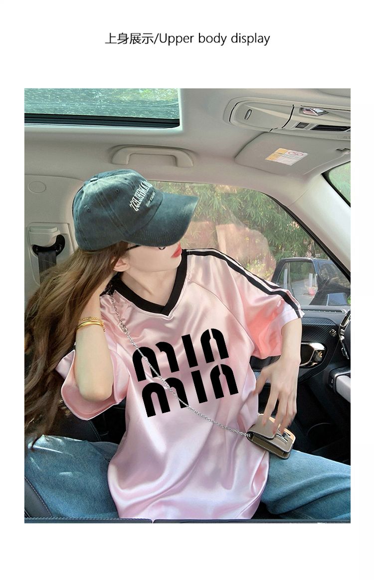 RY3224# 原版面料/后包领球衣运动风宽松T恤女中长款V领设计感上衣