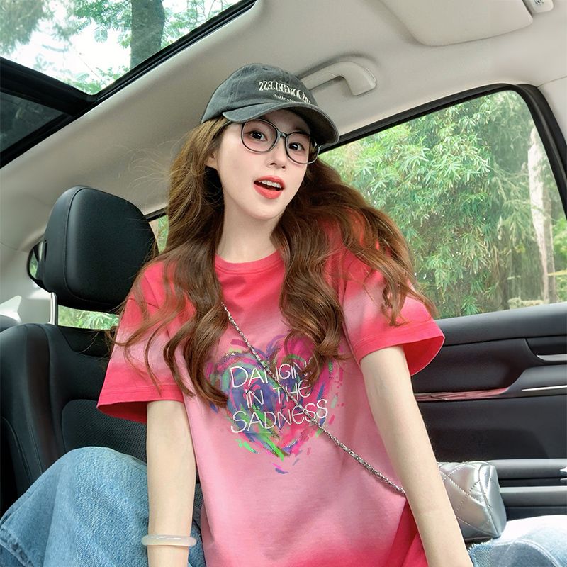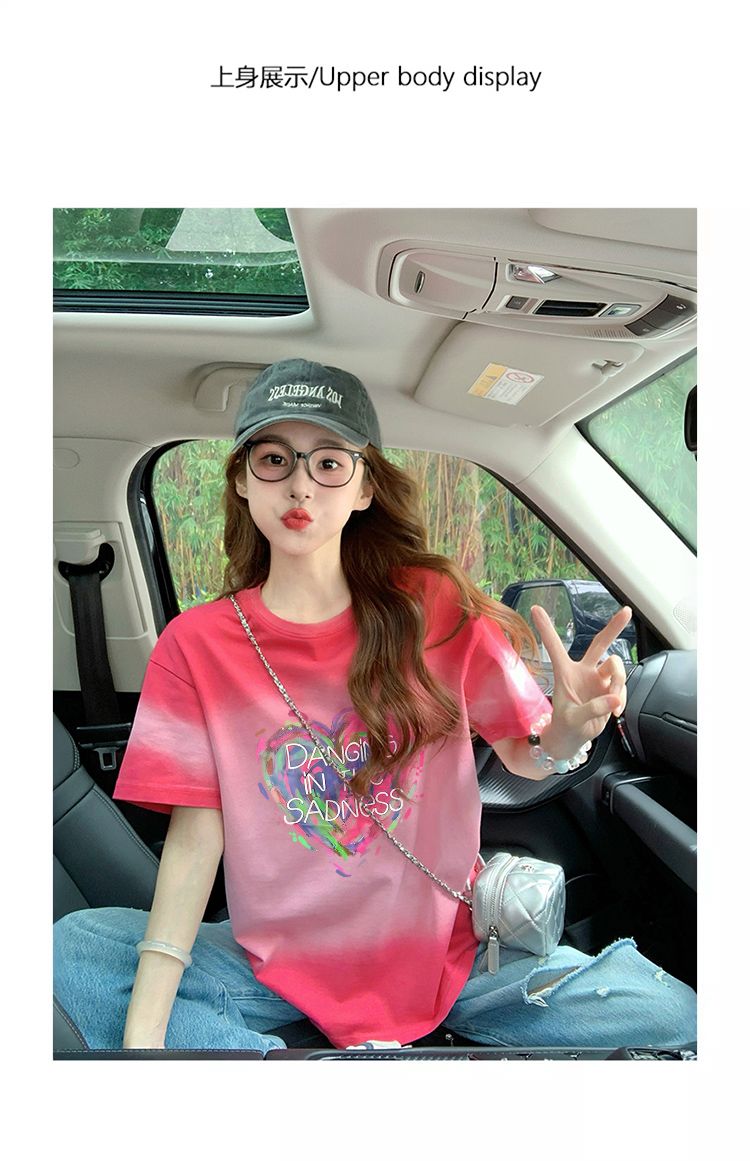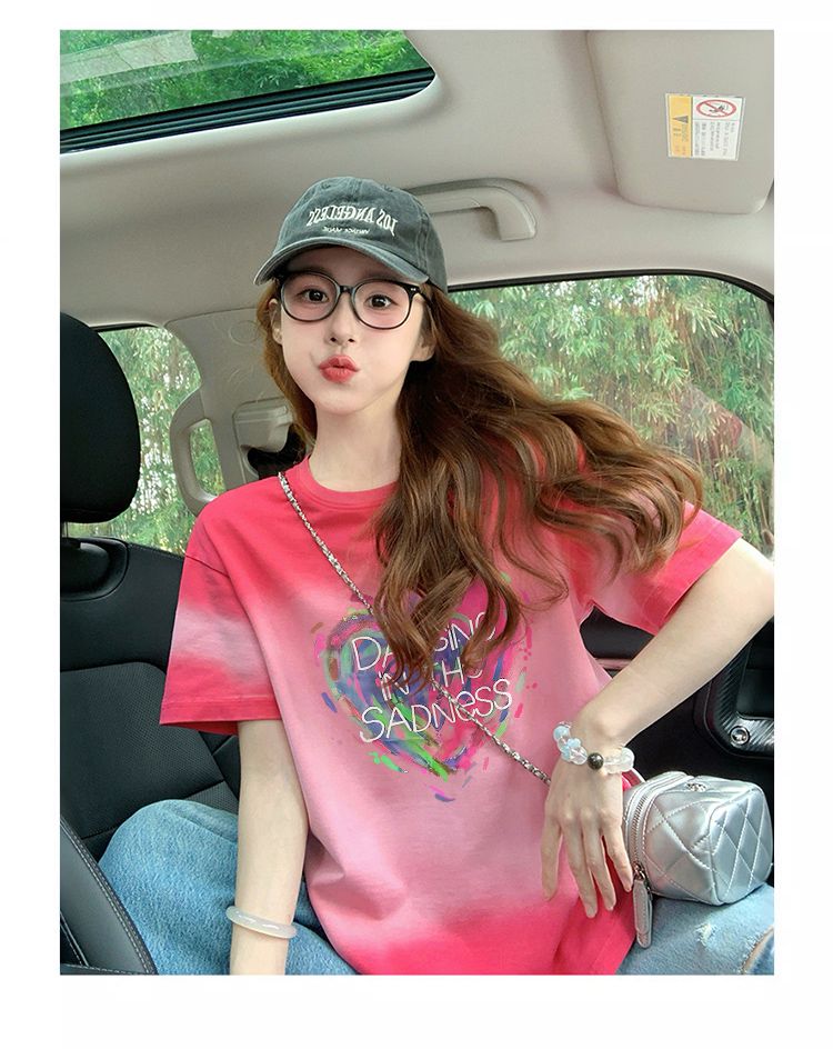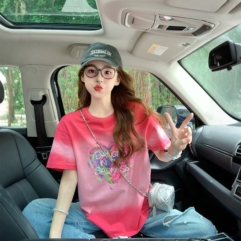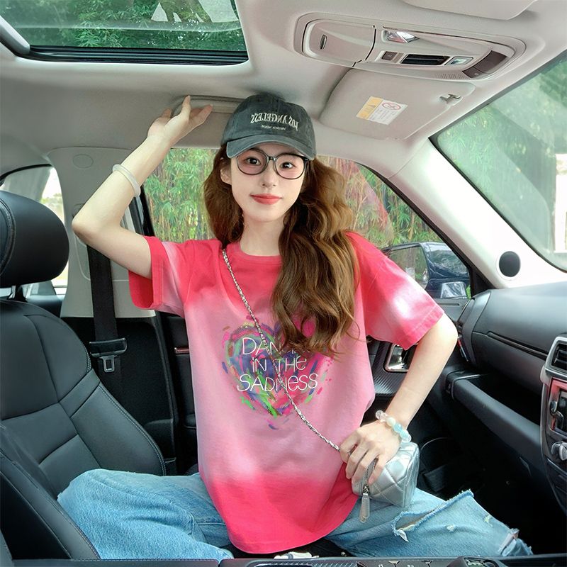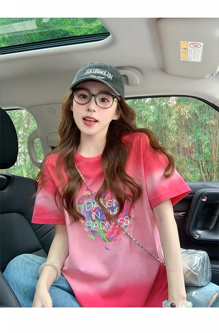 RY3226# 纯棉/后包领爆款渐变扎染短袖t恤女夏季宽松设计感上衣ins