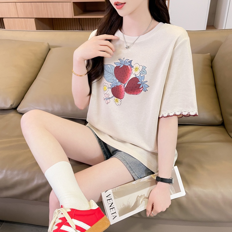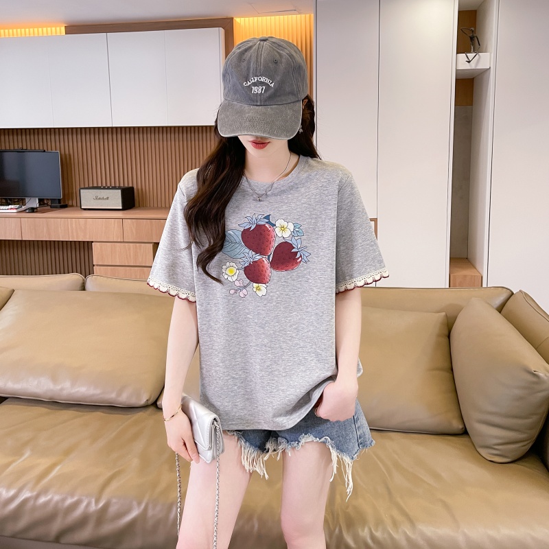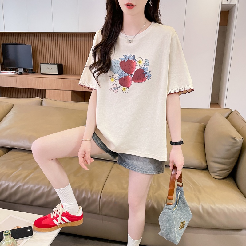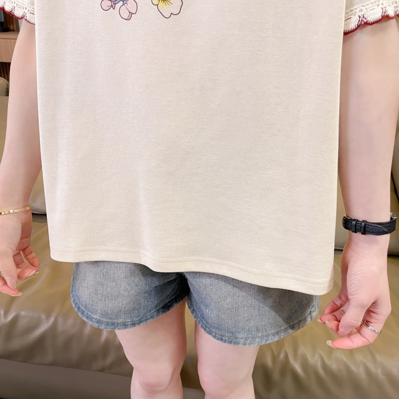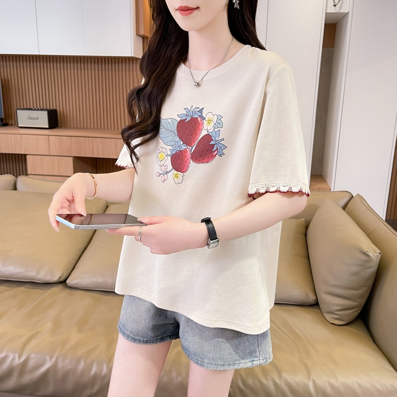 RY3234# 实拍棉质短袖t恤女夏季新款设计感小个子休闲显瘦上衣ins