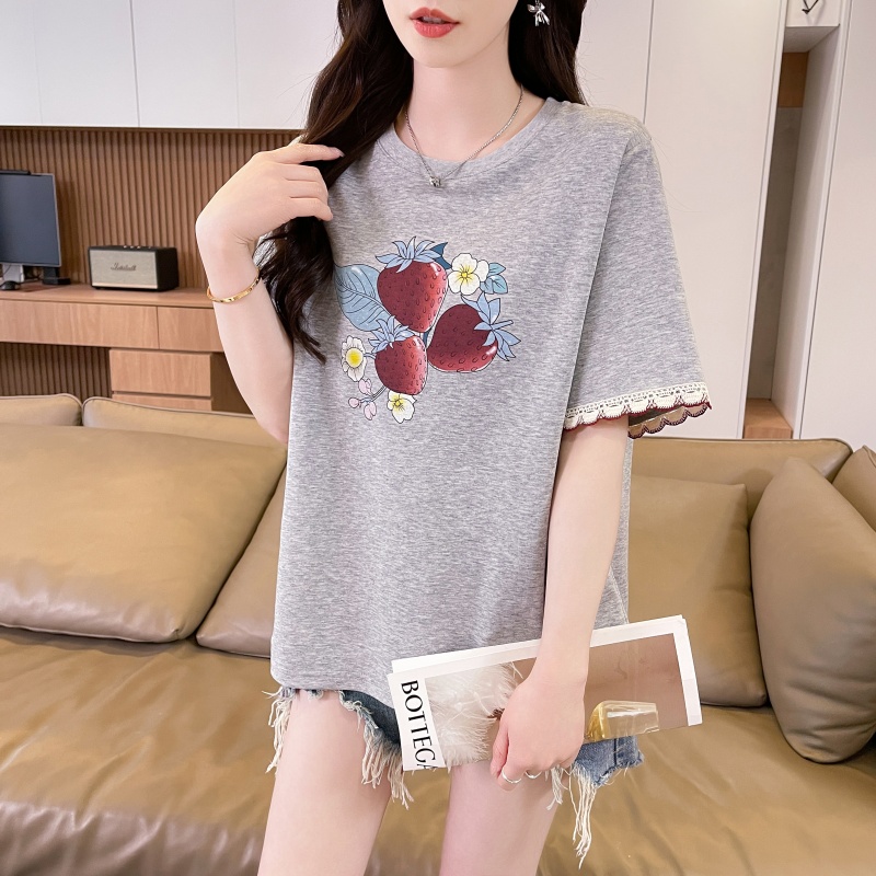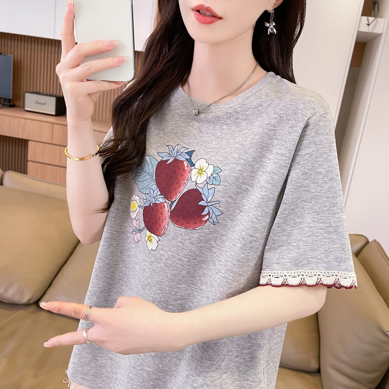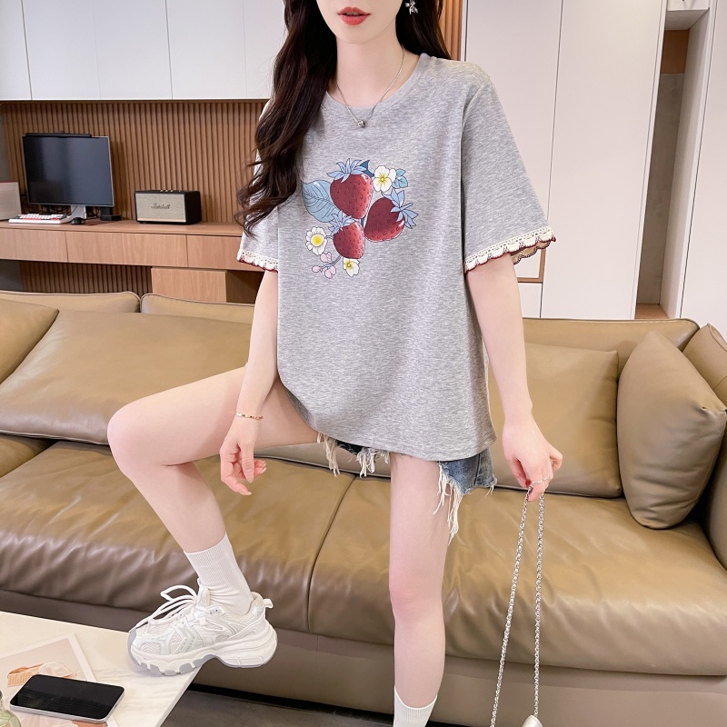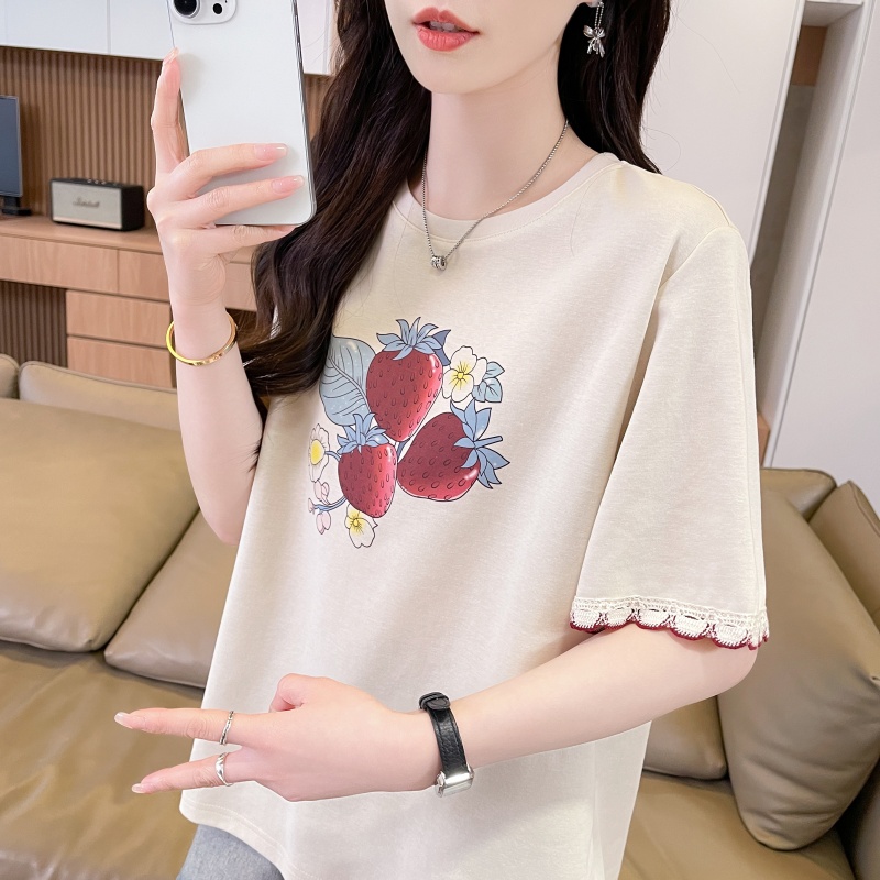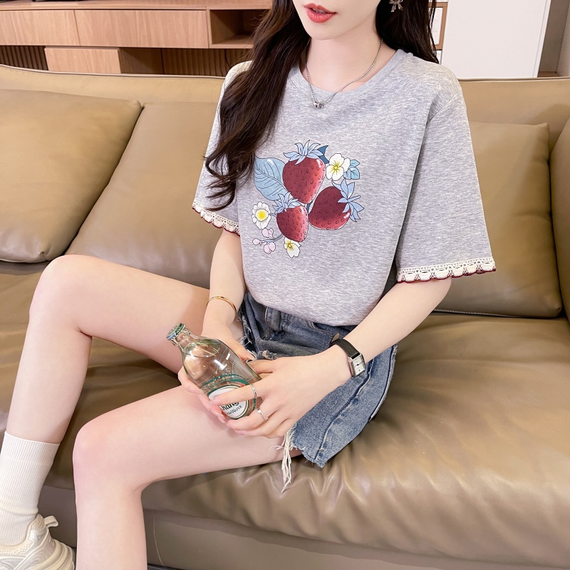 RY3234# 实拍棉质短袖t恤女夏季新款设计感小个子休闲显瘦上衣ins