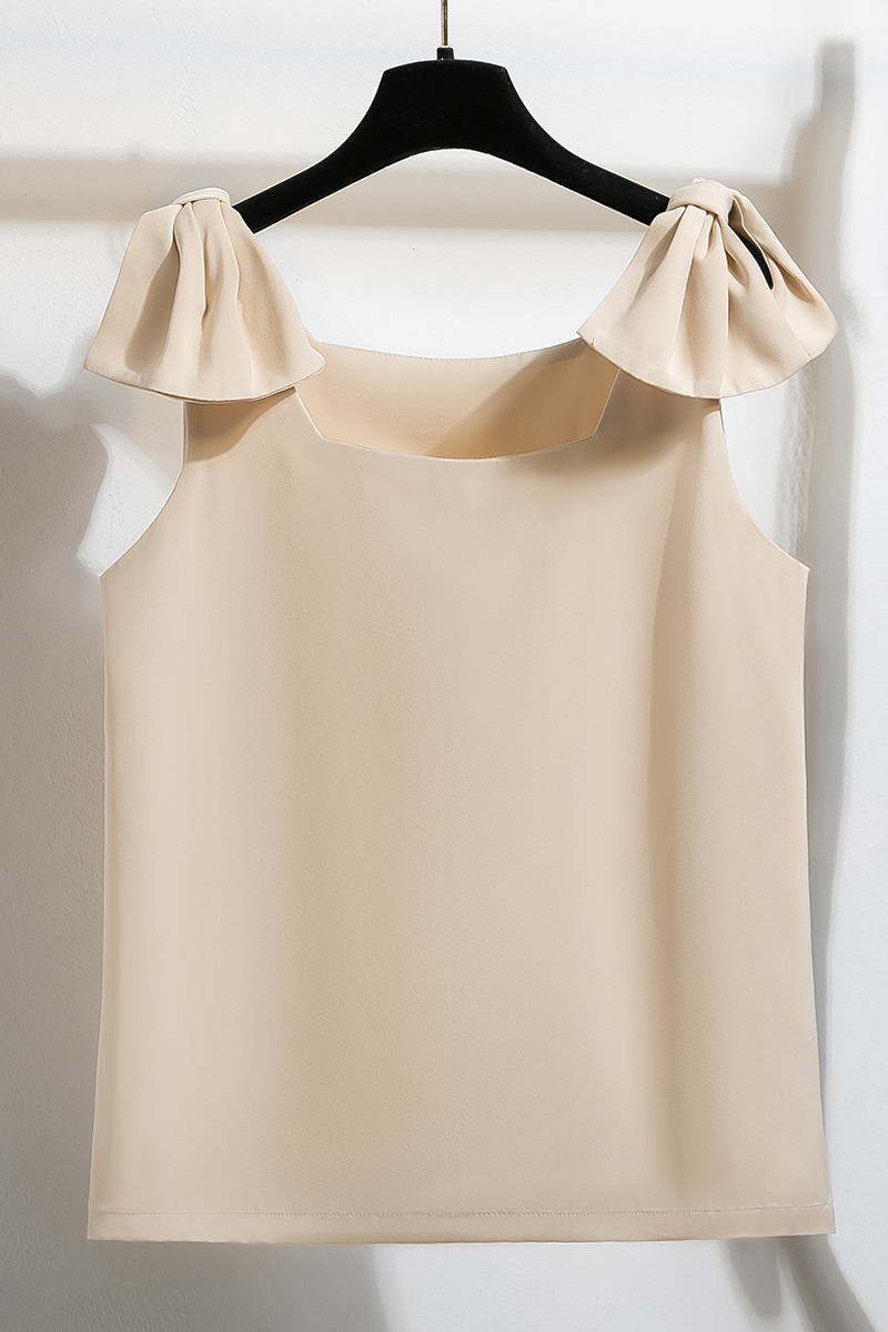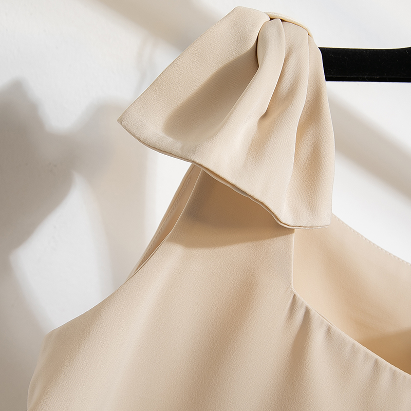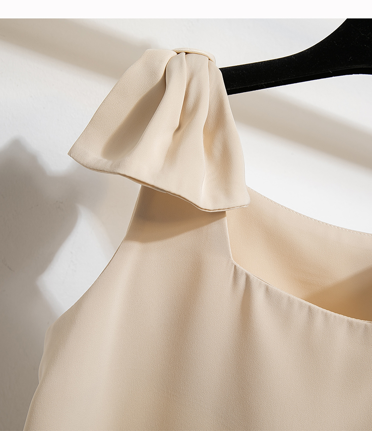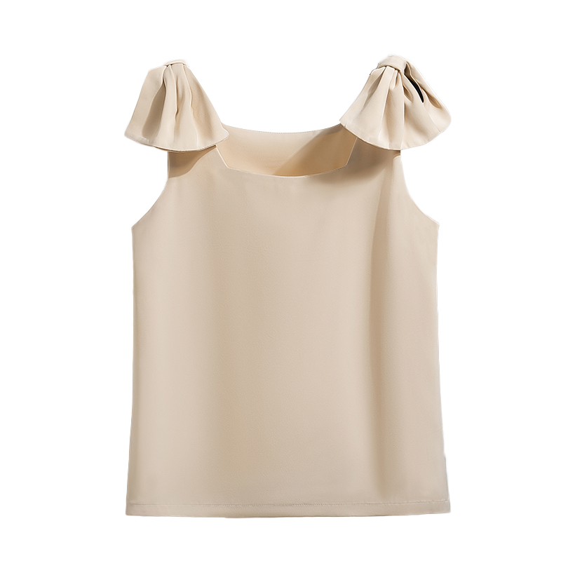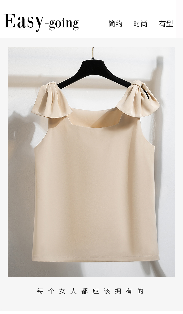 RY3260# 实拍法式高级感轻奢减龄洋气宽松设计感小众白色蝴蝶结无袖上衣夏