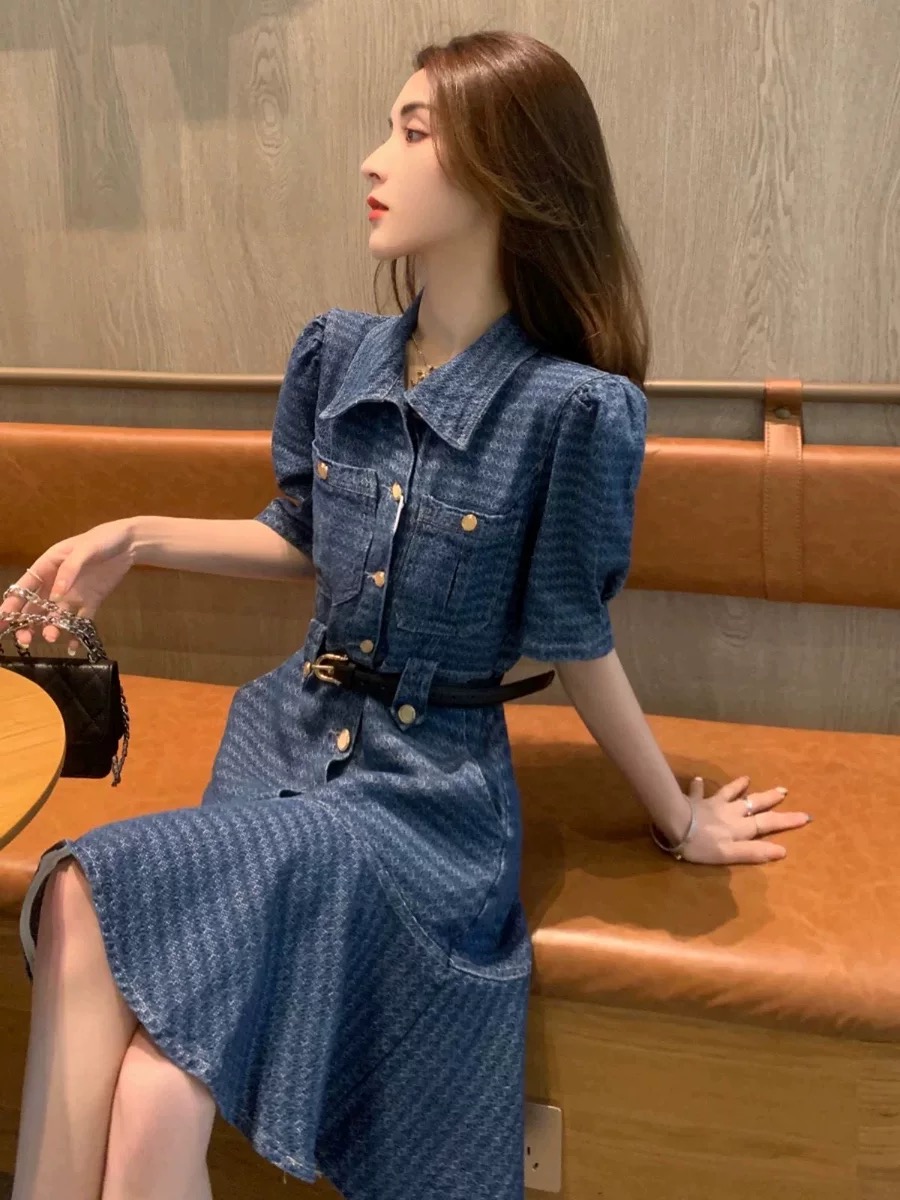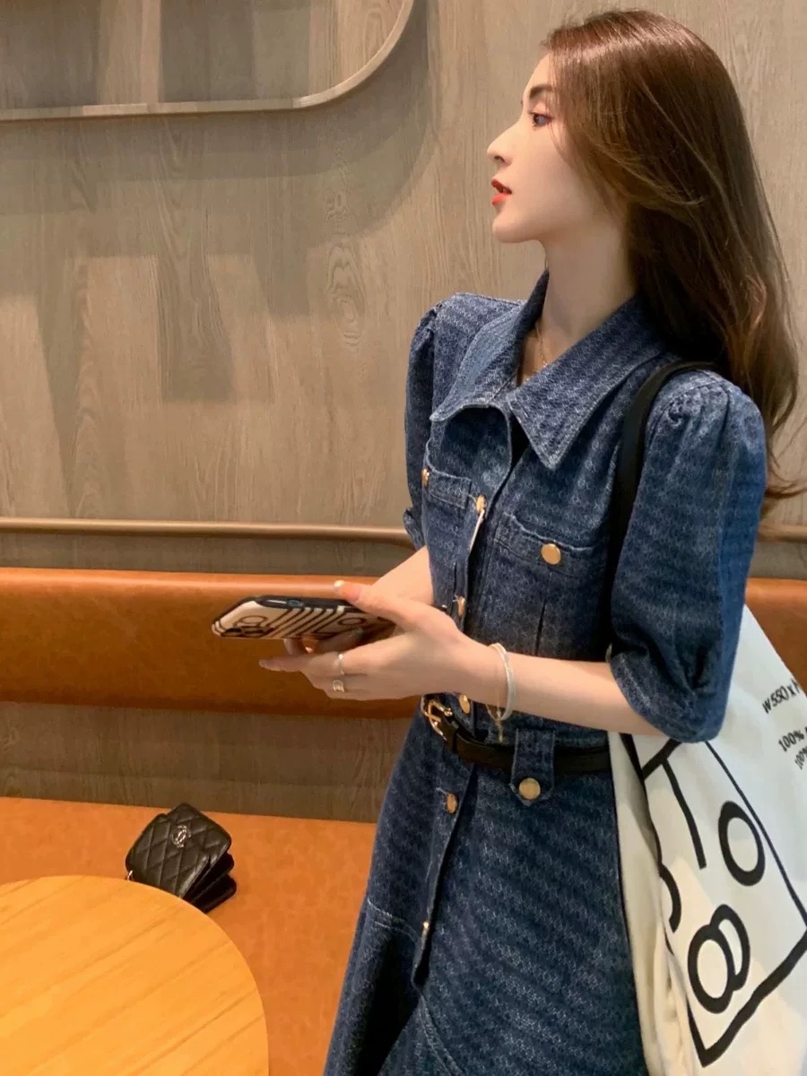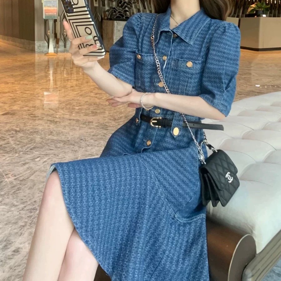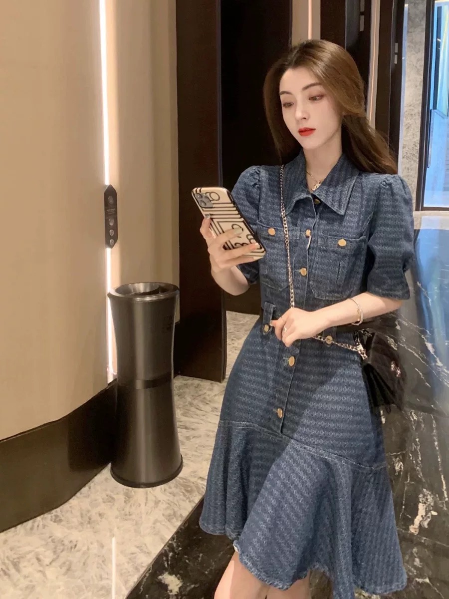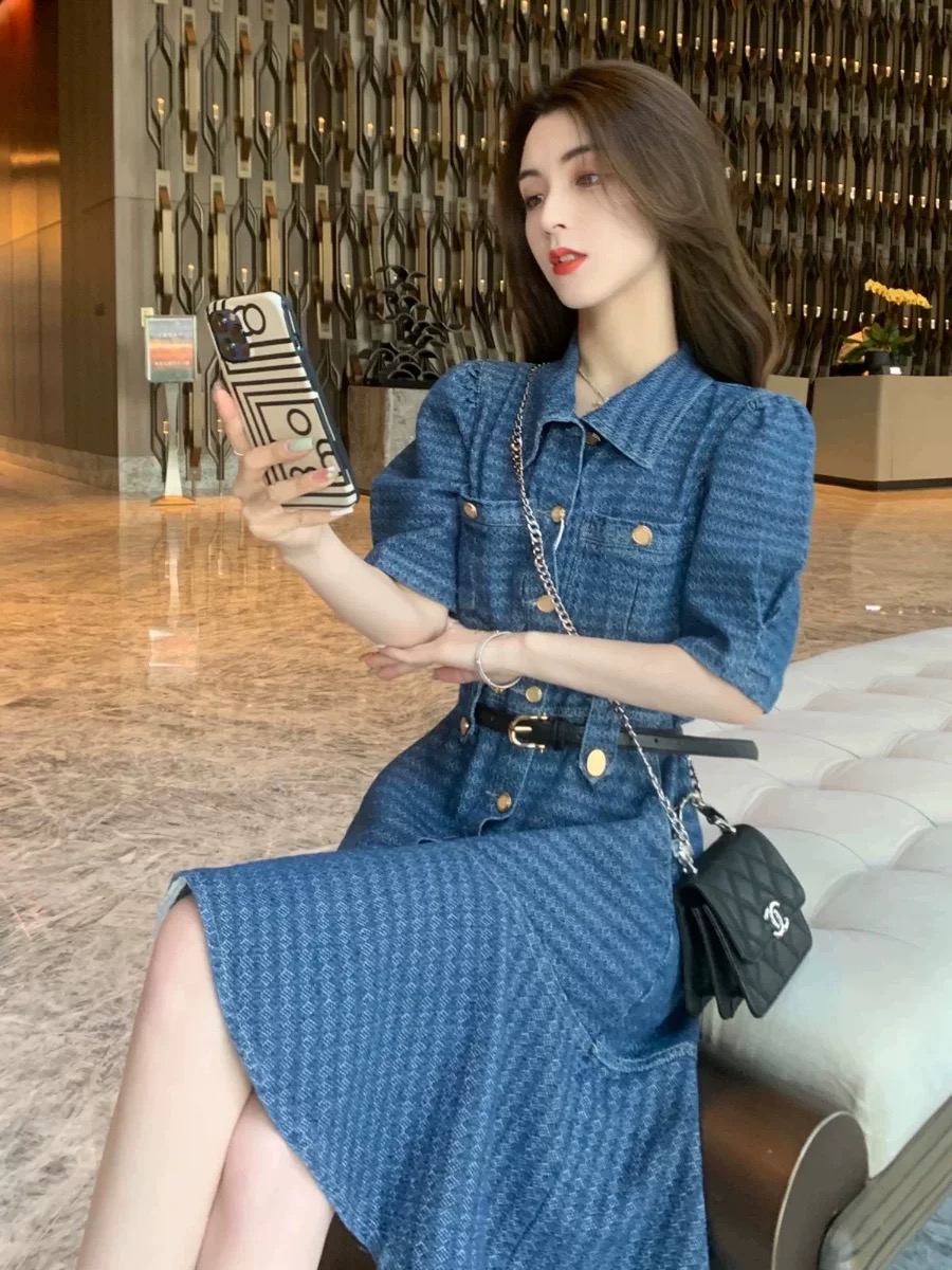 RY3270# 牛仔连衣裙气质女装时尚显瘦高级感法式小香风裙子夏