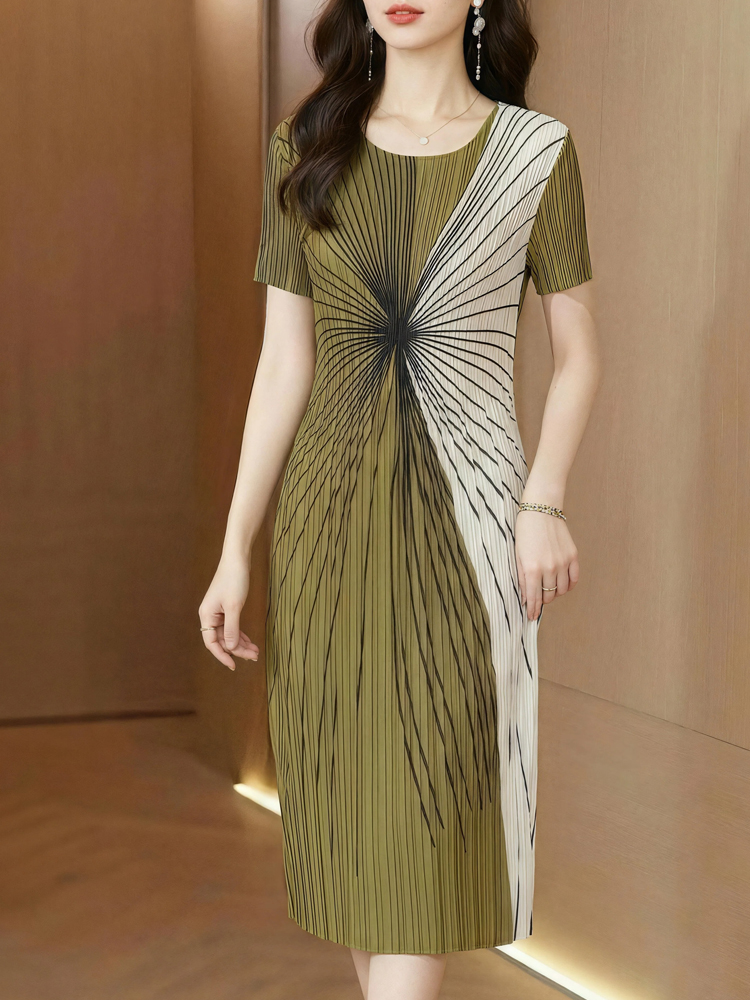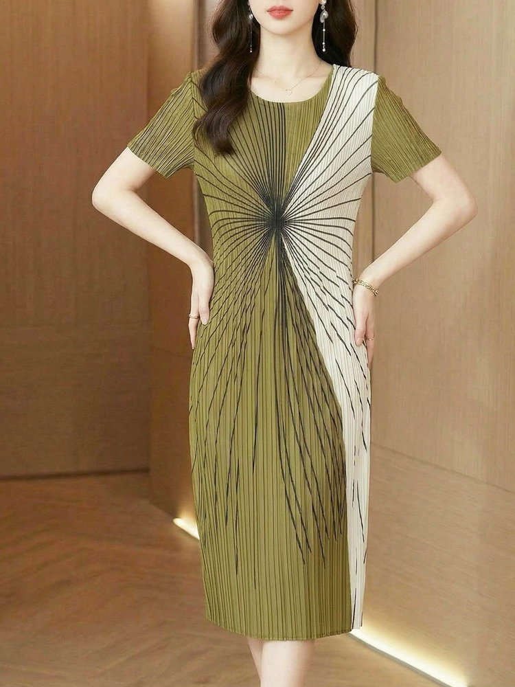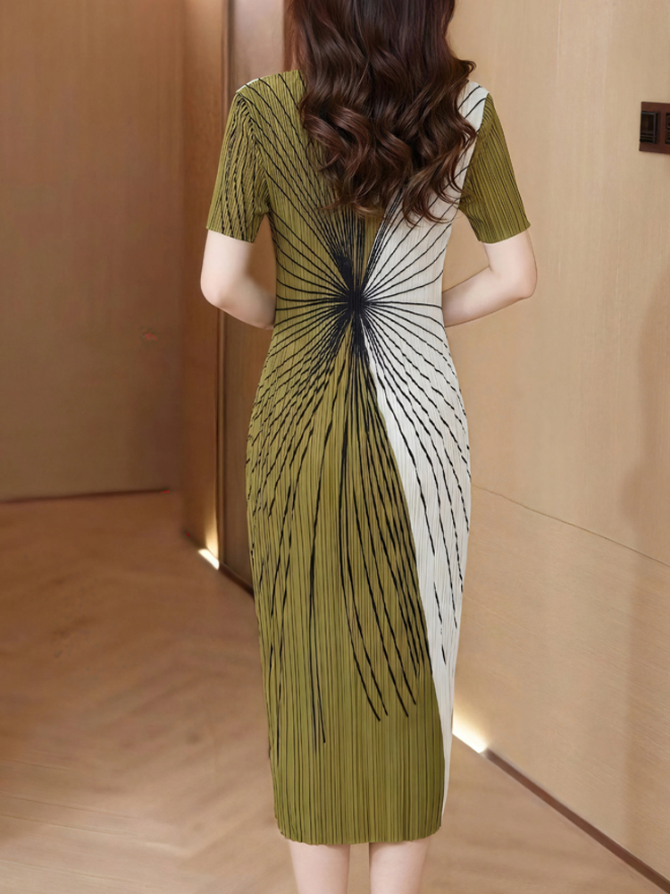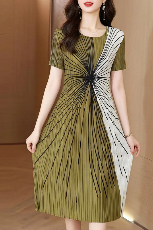 RY3292# 贵妇人褶皱连衣裙2026夏季新款高端气质名媛大码百褶裙妈妈装裙子