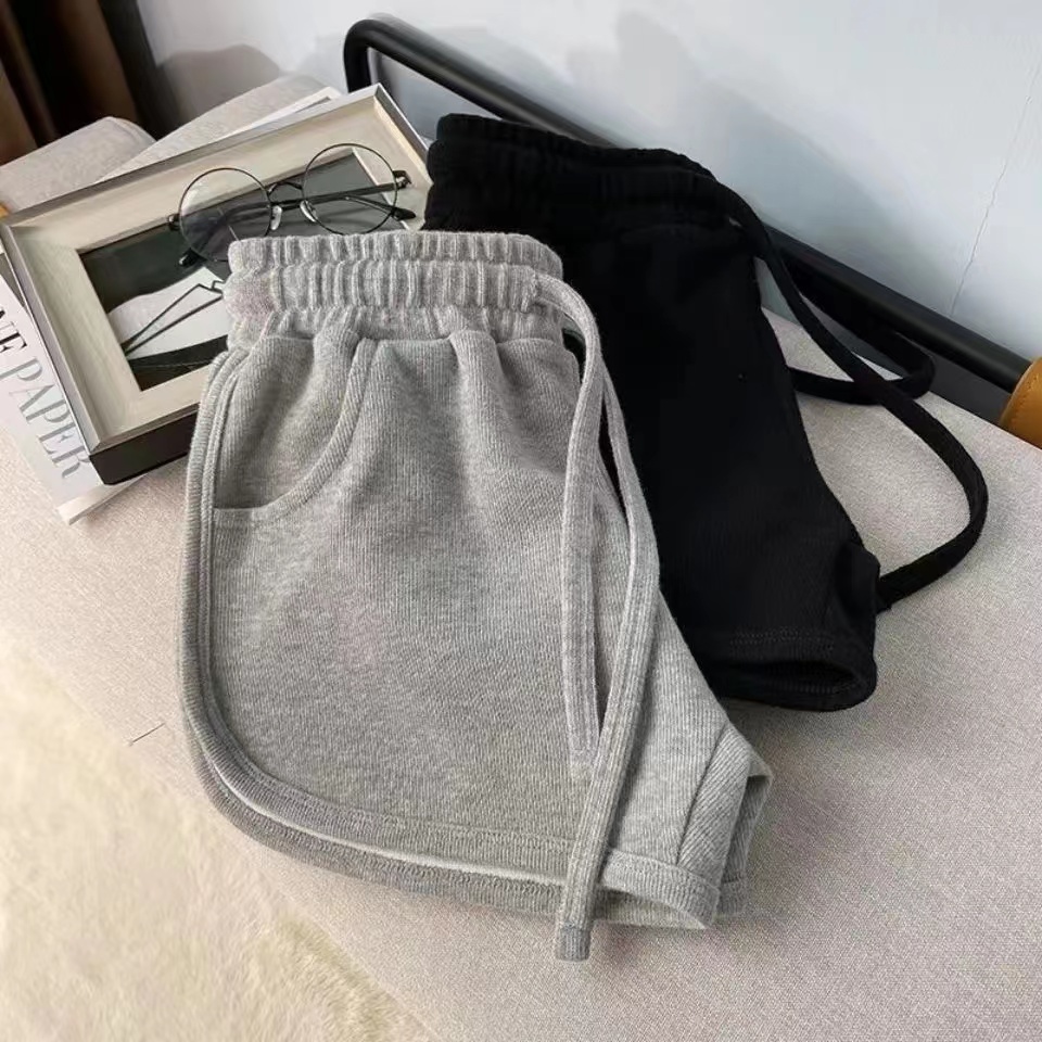 RY3295# 米尼棉好质量高腰休闲运动短裤女宽松阔腿A字热裤时髦外贸韩单爆