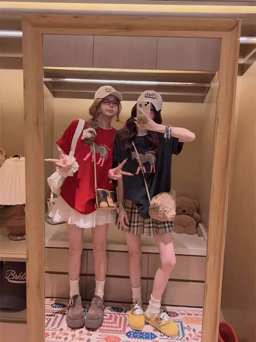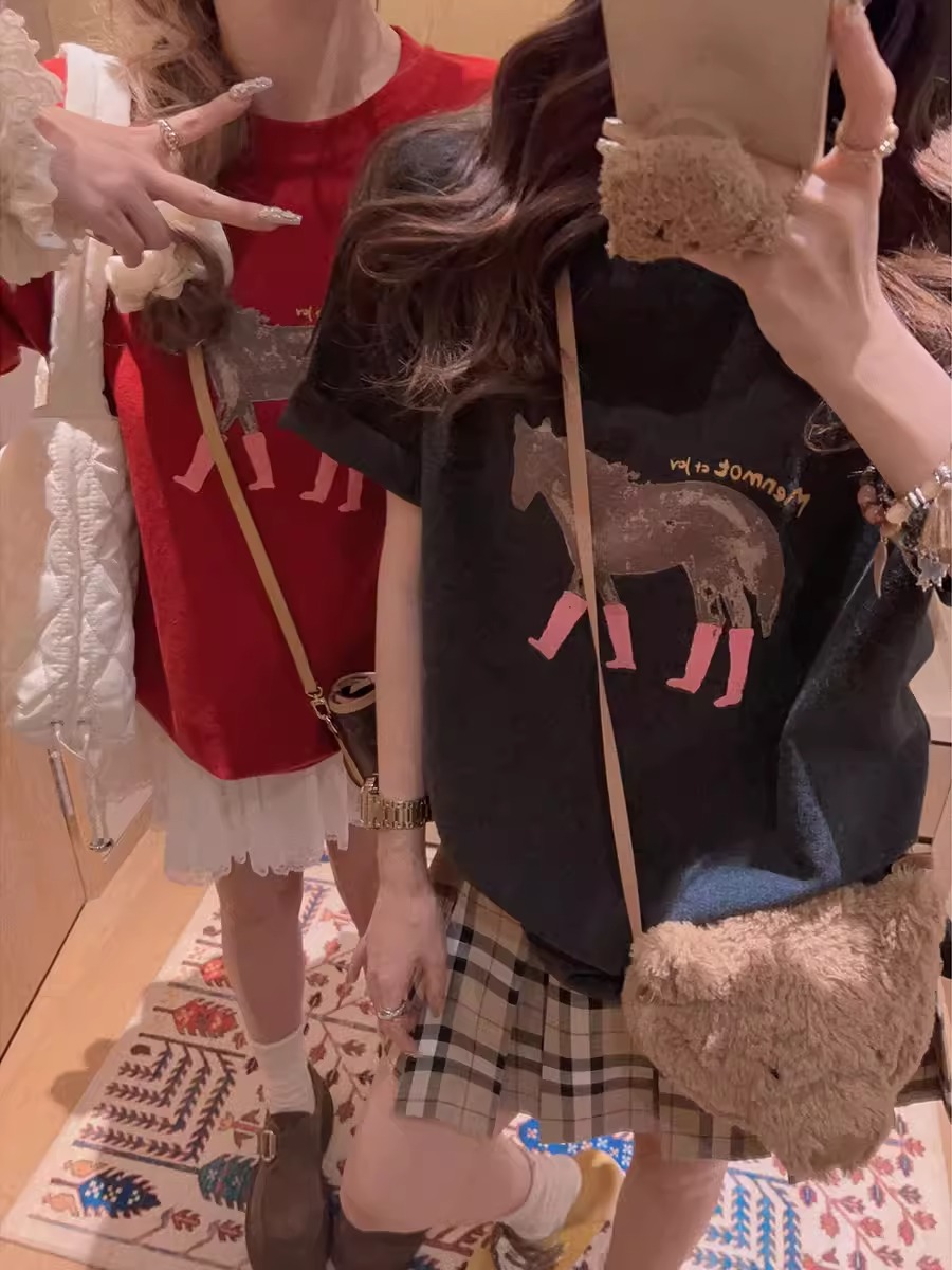 RY3296# 克100%棉 2026年春夏装短袖T恤女韩版印花