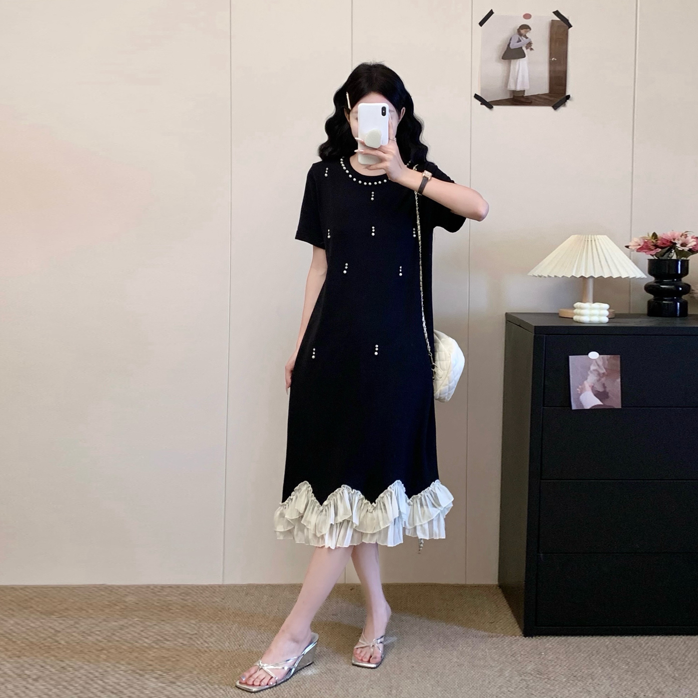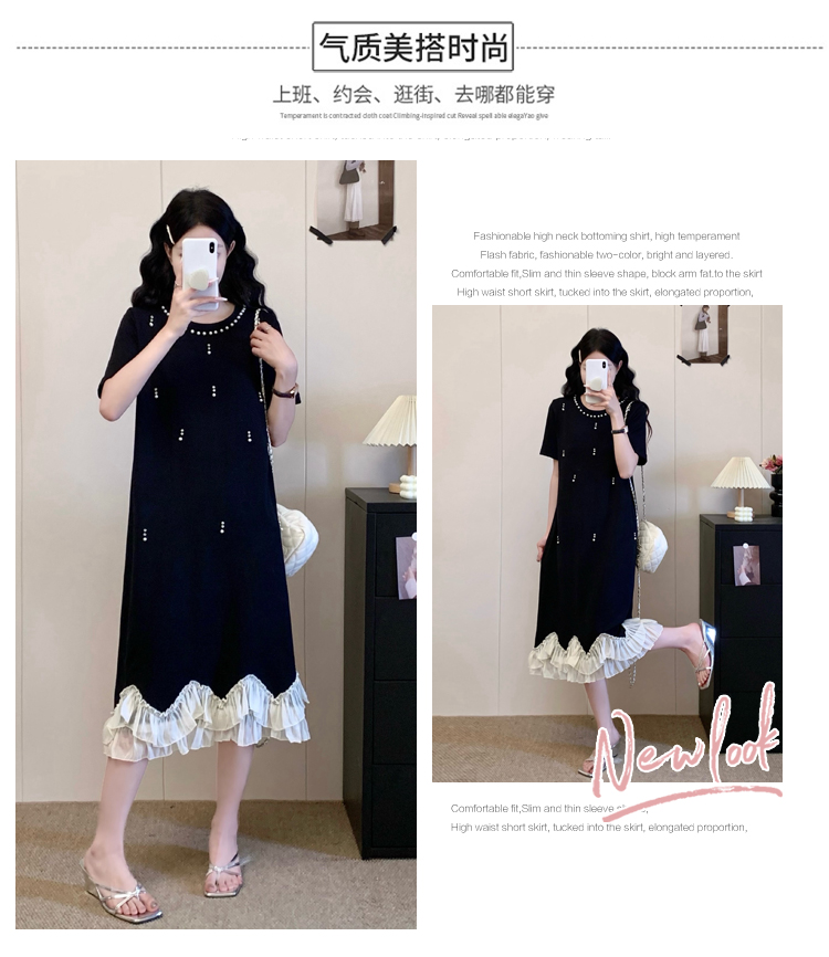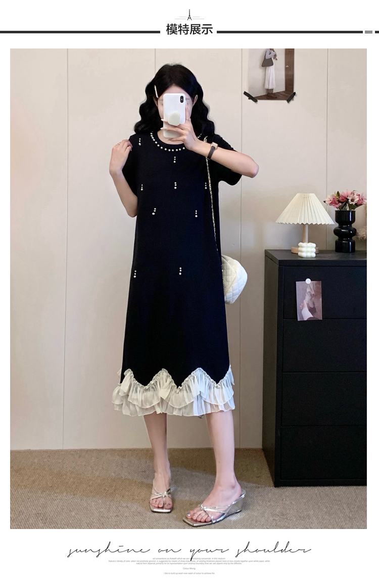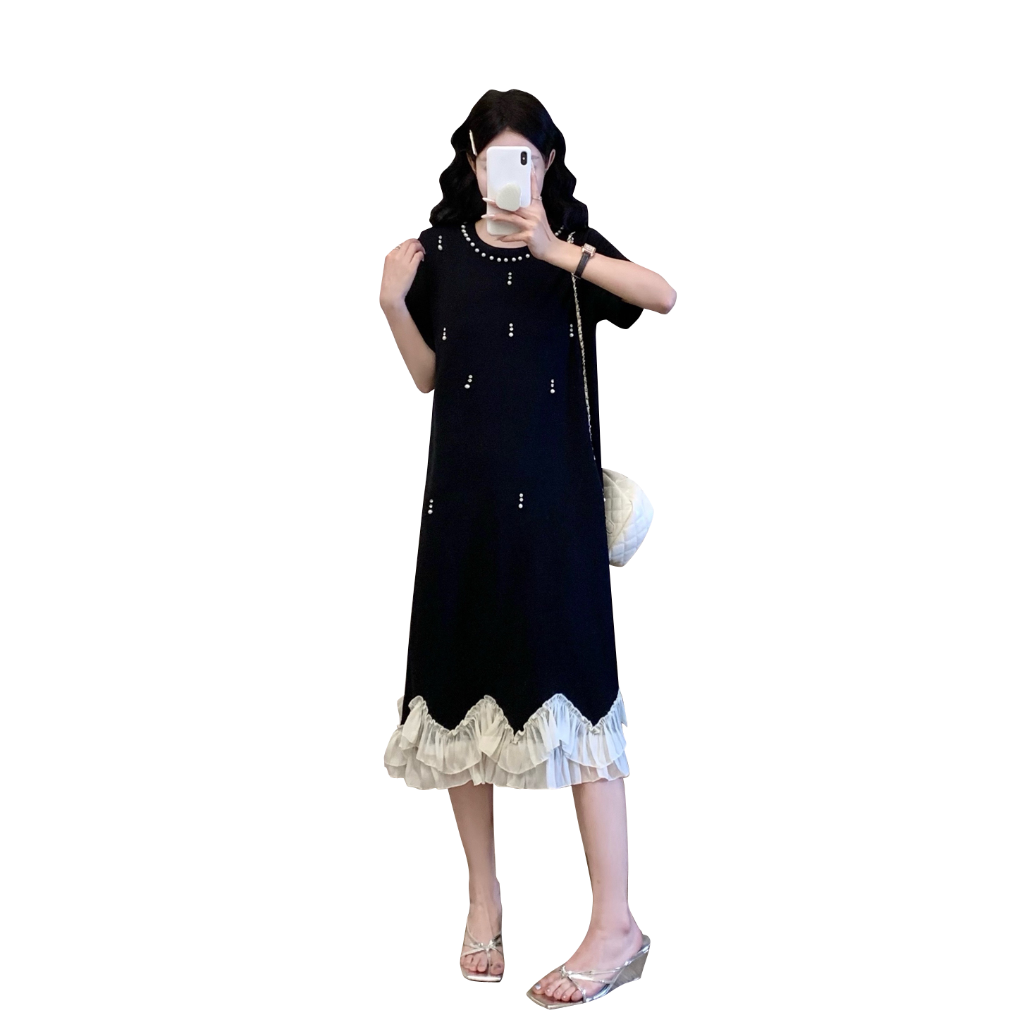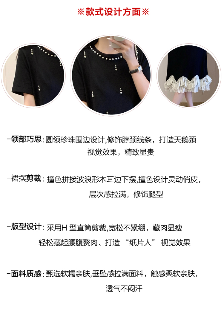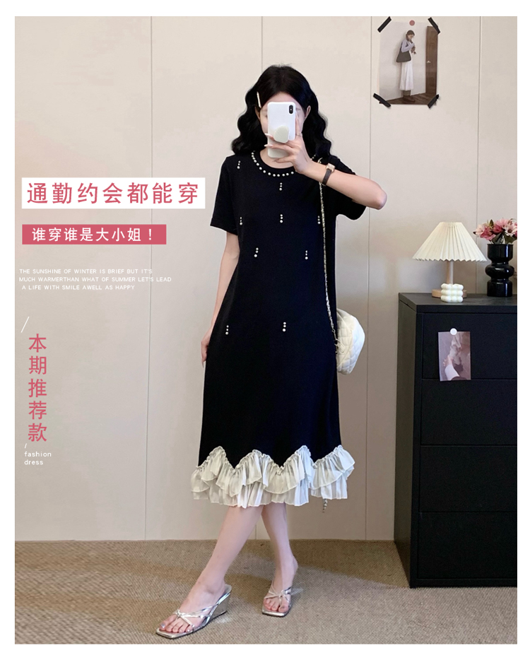 RY3303# 实拍设计感重工连衣裙大码胖MM女夏季圆领宽松显瘦花边裙