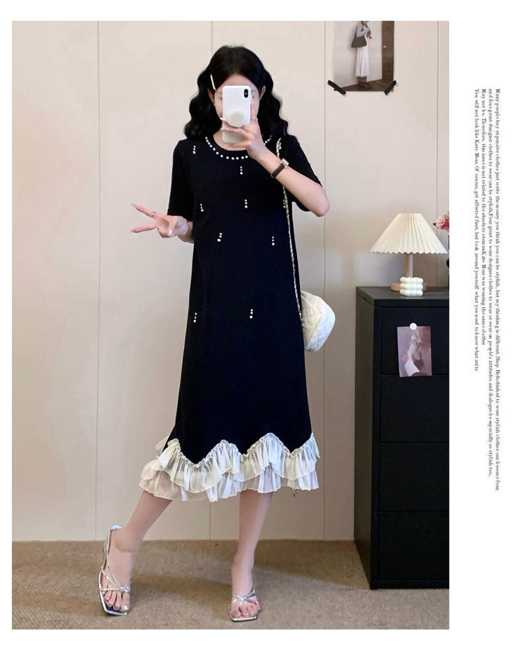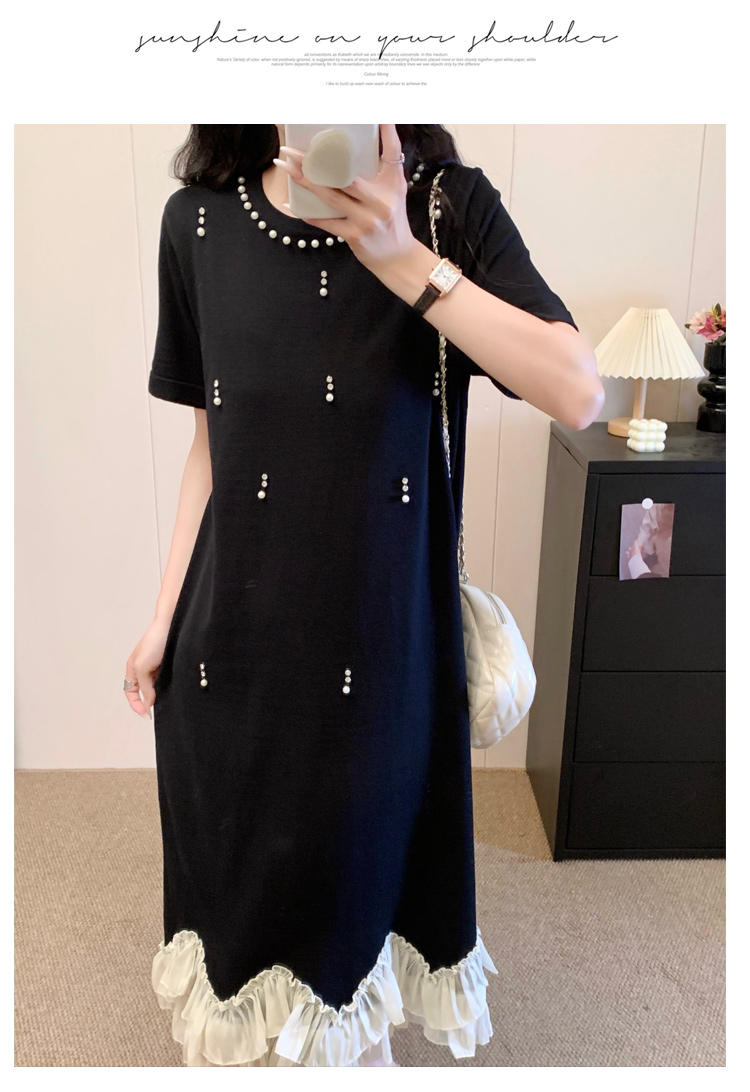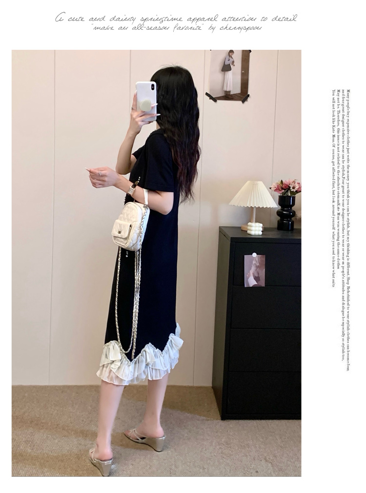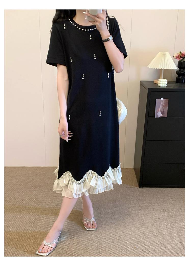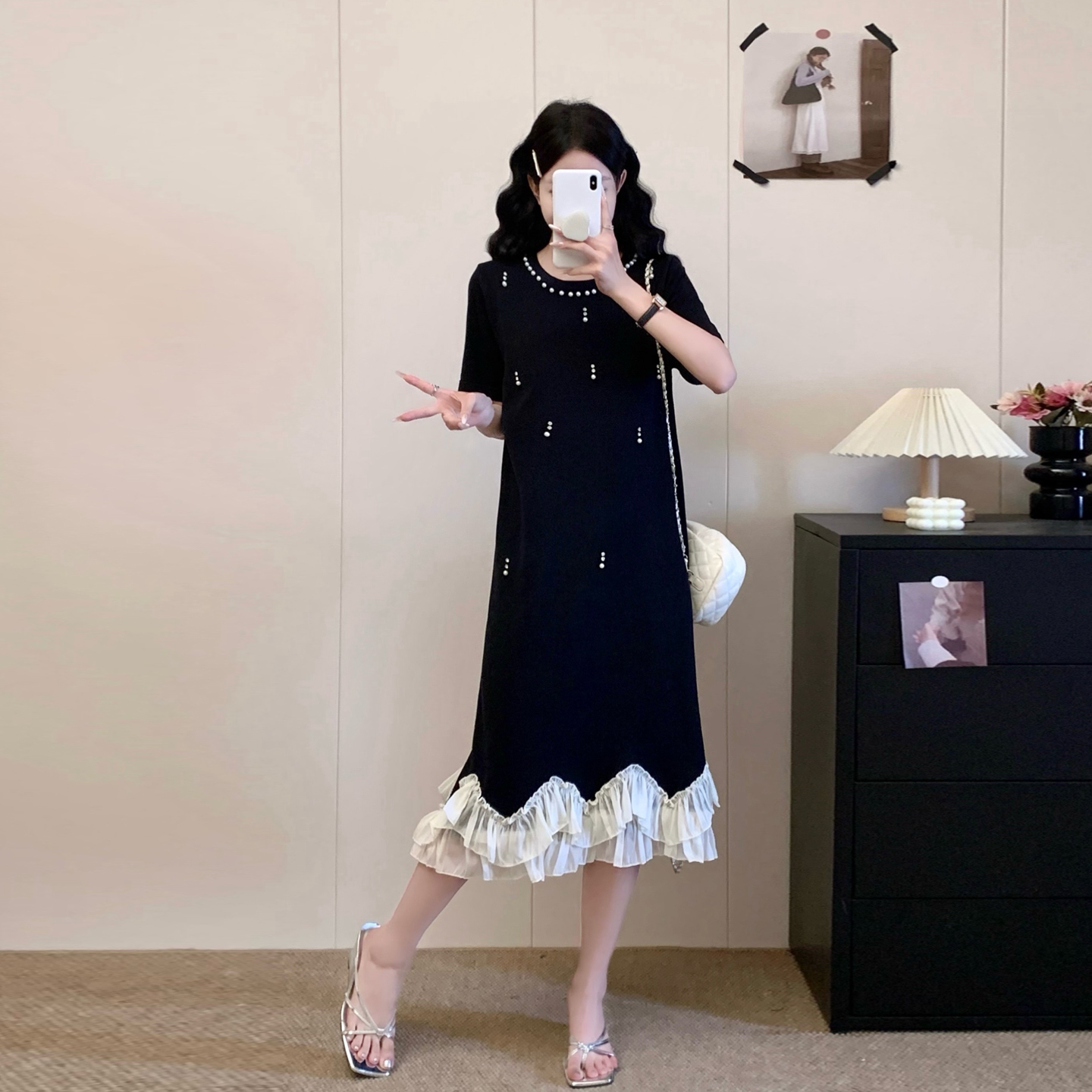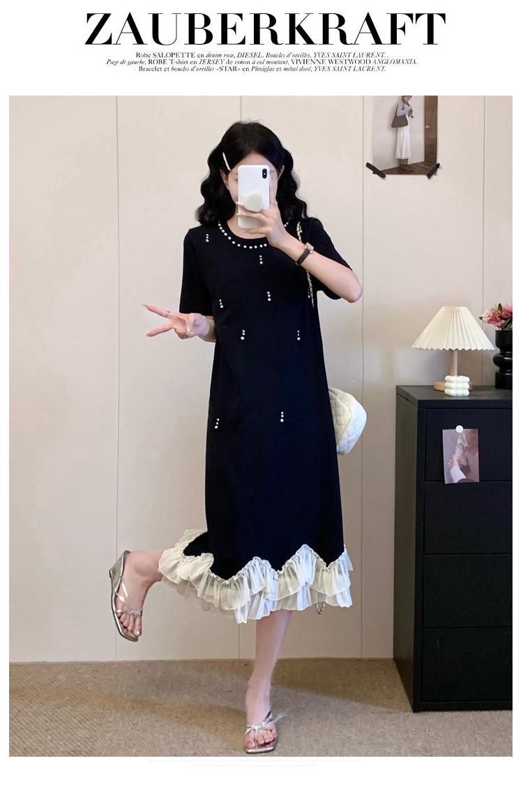 RY3303# 实拍设计感重工连衣裙大码胖MM女夏季圆领宽松显瘦花边裙