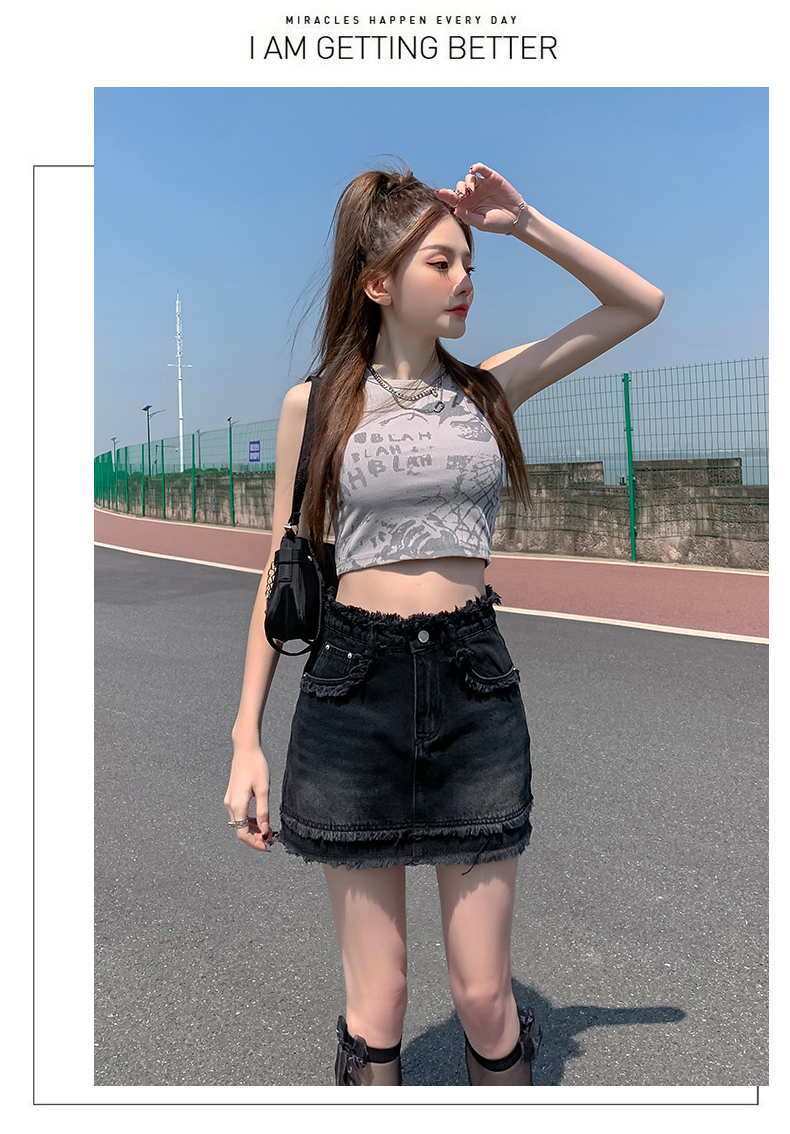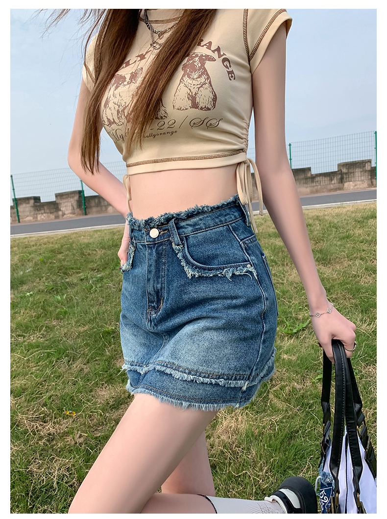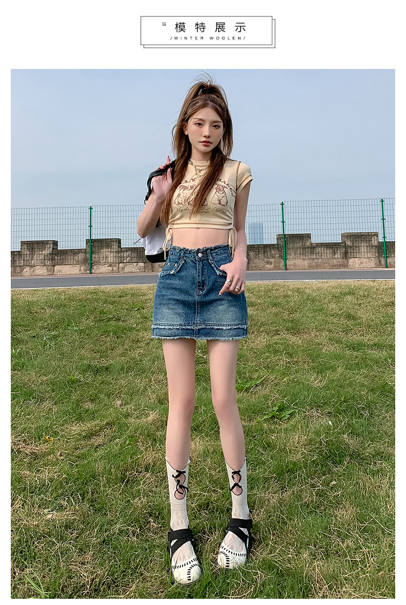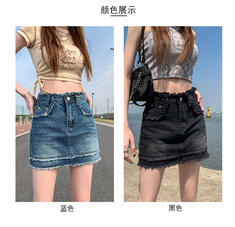 RM7782#辣妹美式复古毛边牛仔半身裙女夏款高腰显瘦防走光A字裙裤潮