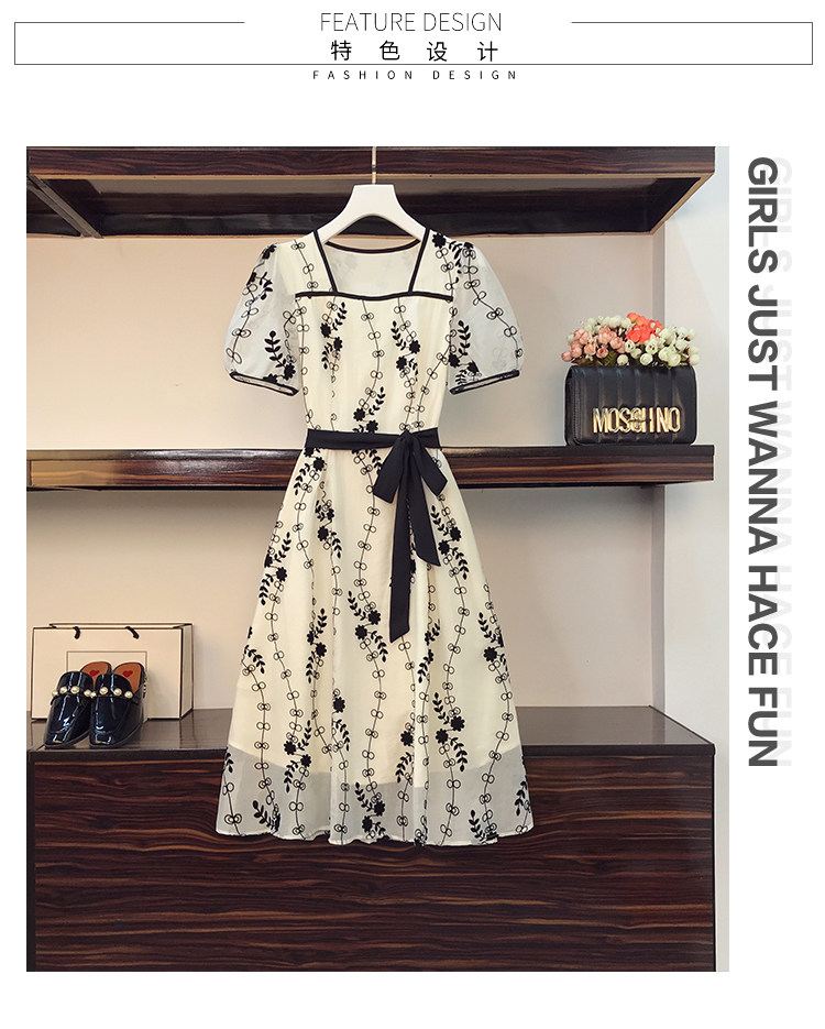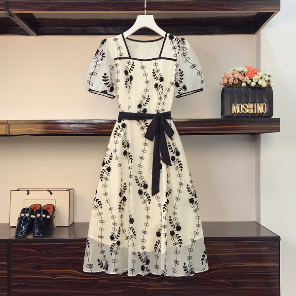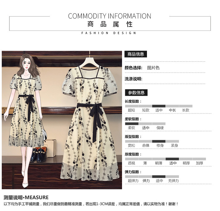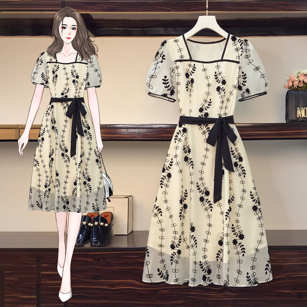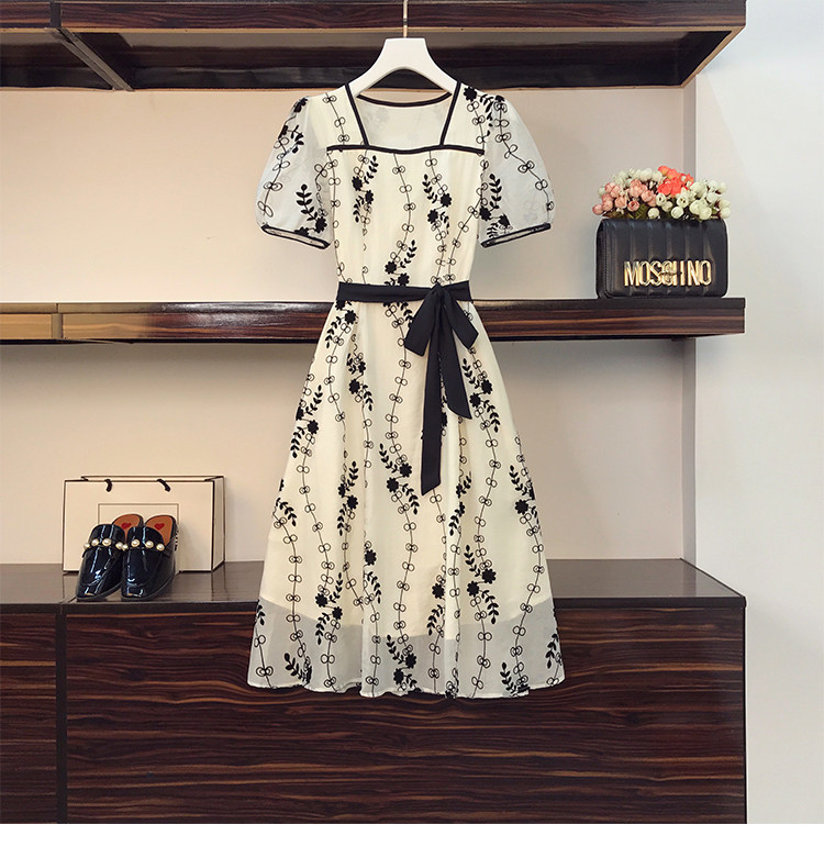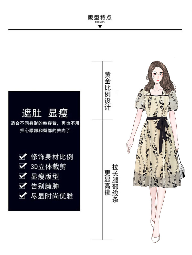 RM8420#大码女装夏季新款立体感法式提花胖妹妹短袖气质显瘦连衣裙