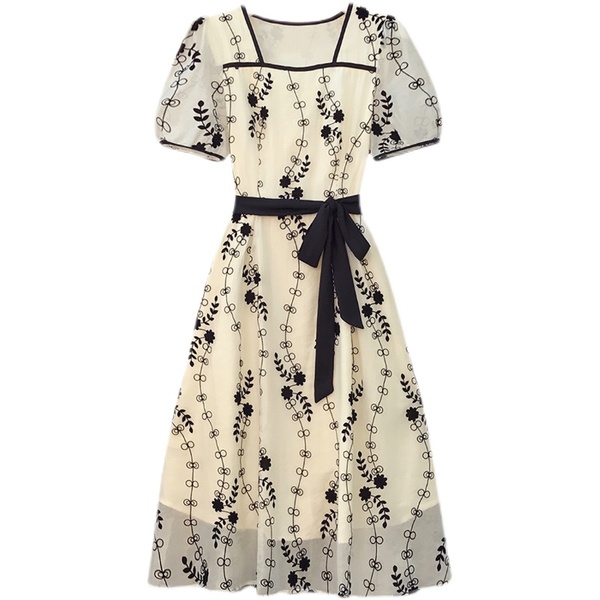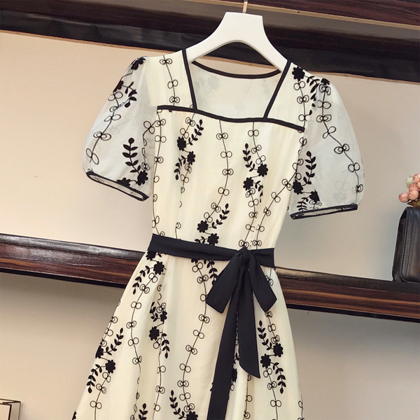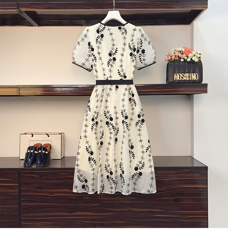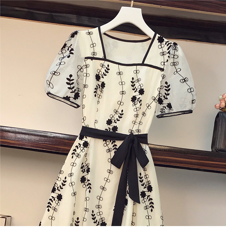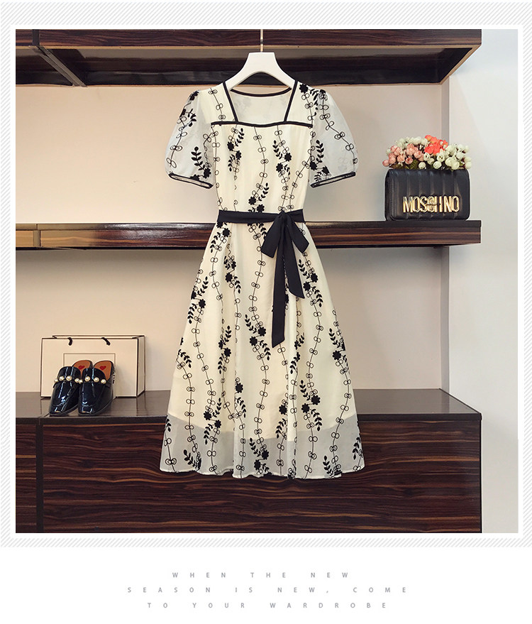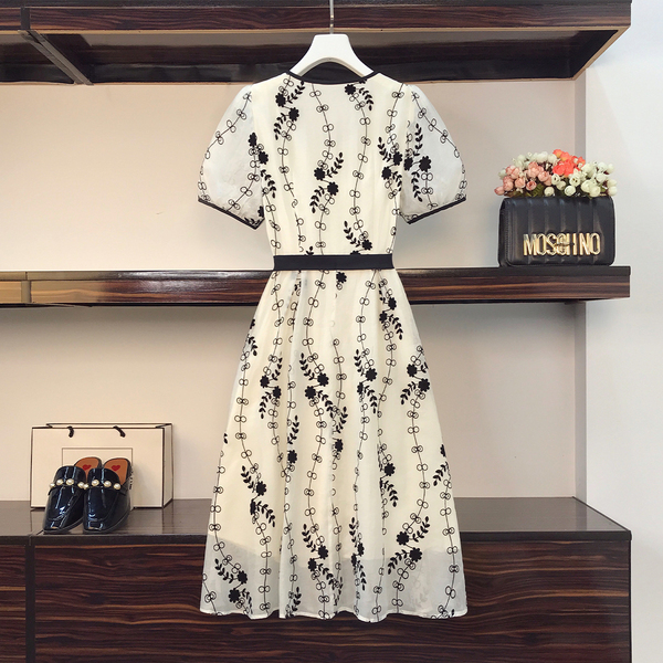 RM8420#大码女装夏季新款立体感法式提花胖妹妹短袖气质显瘦连衣裙