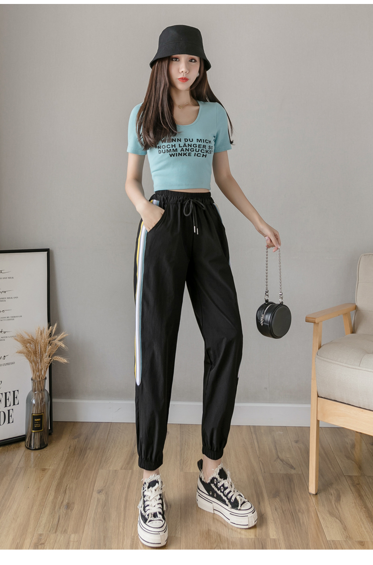 RM9694#哈伦运动裤女2023夏季薄款冰丝速干裤女休闲九分裤女宽松束脚