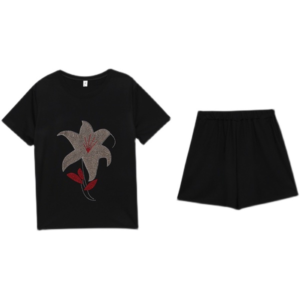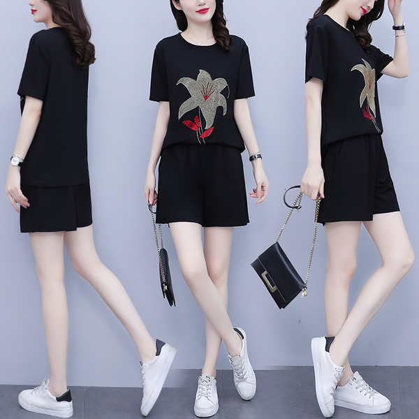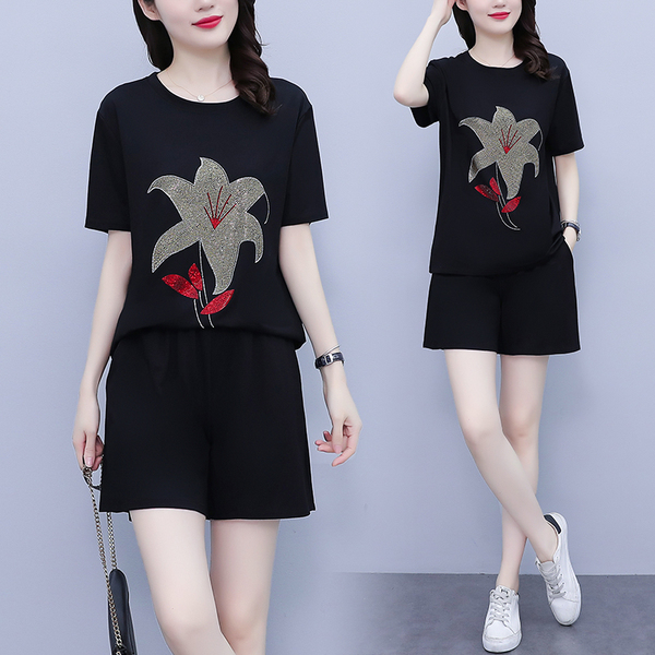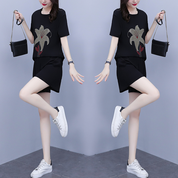 RM10477#夏新款大码女装胖MM烫钻两件套宽松显瘦休闲减龄时尚遮肉套装