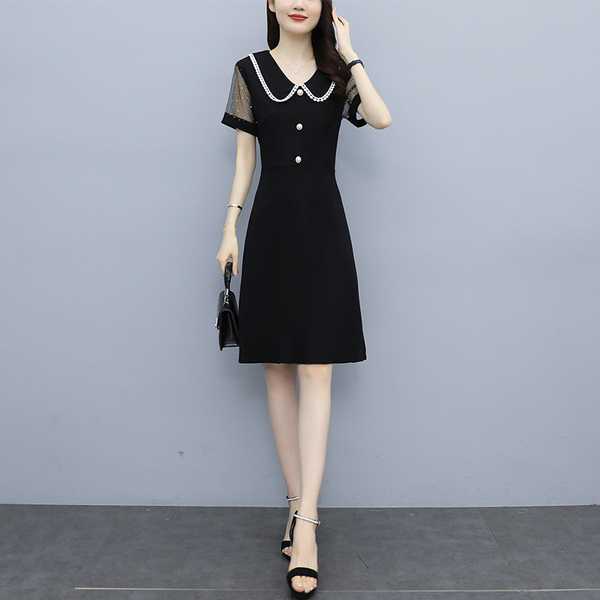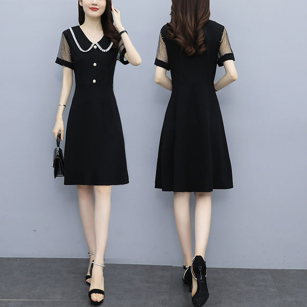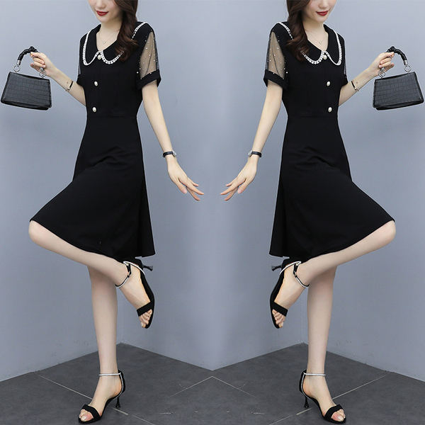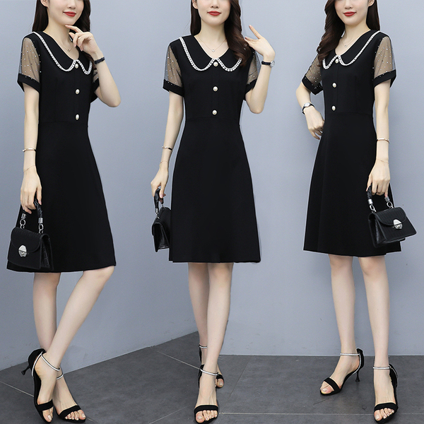 RM10478#大码女装2023年夏季新款连衣裙娃娃领遮肚显瘦洋气减龄裙子a字裙