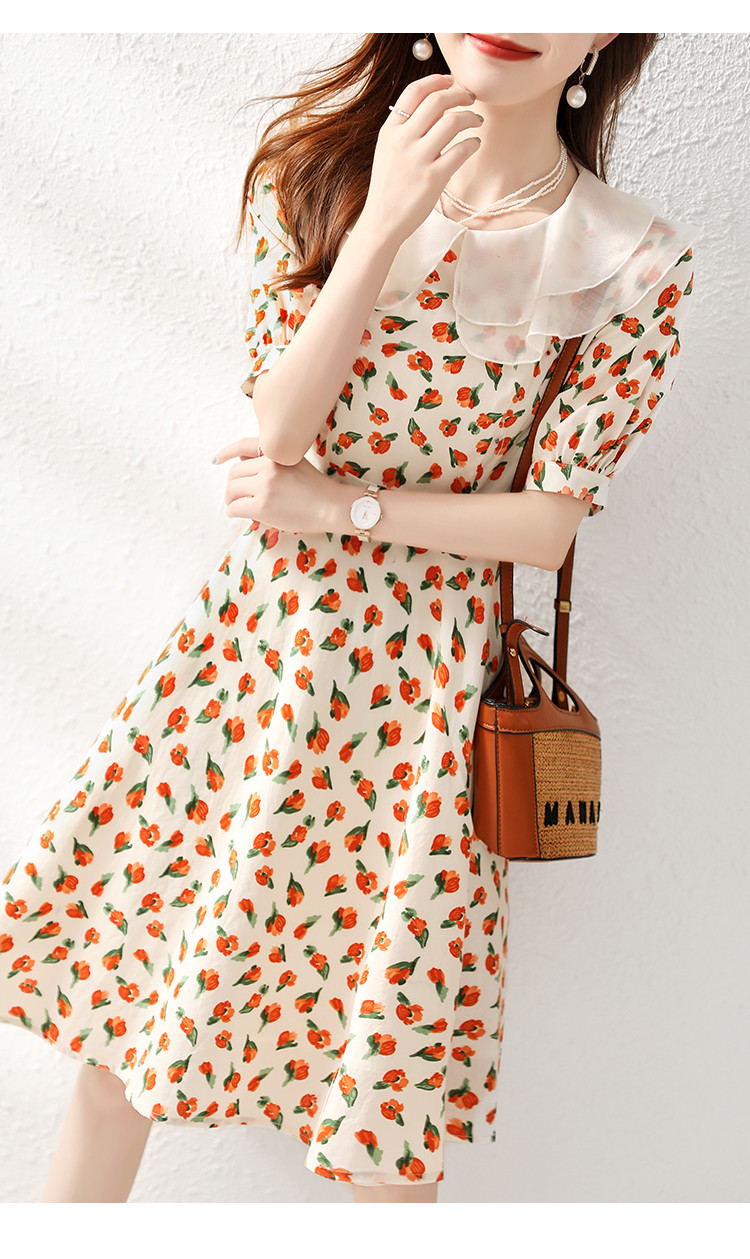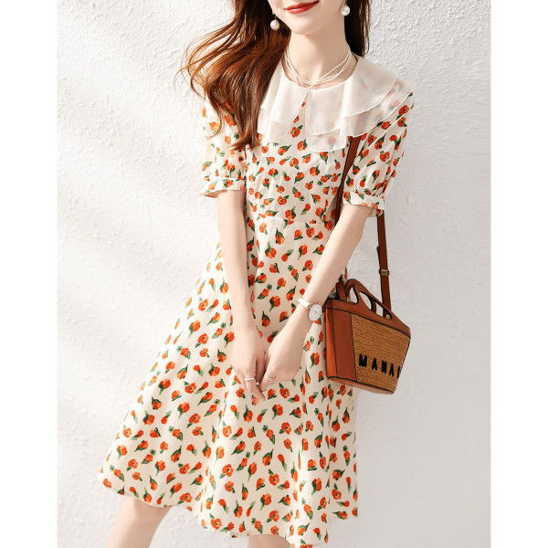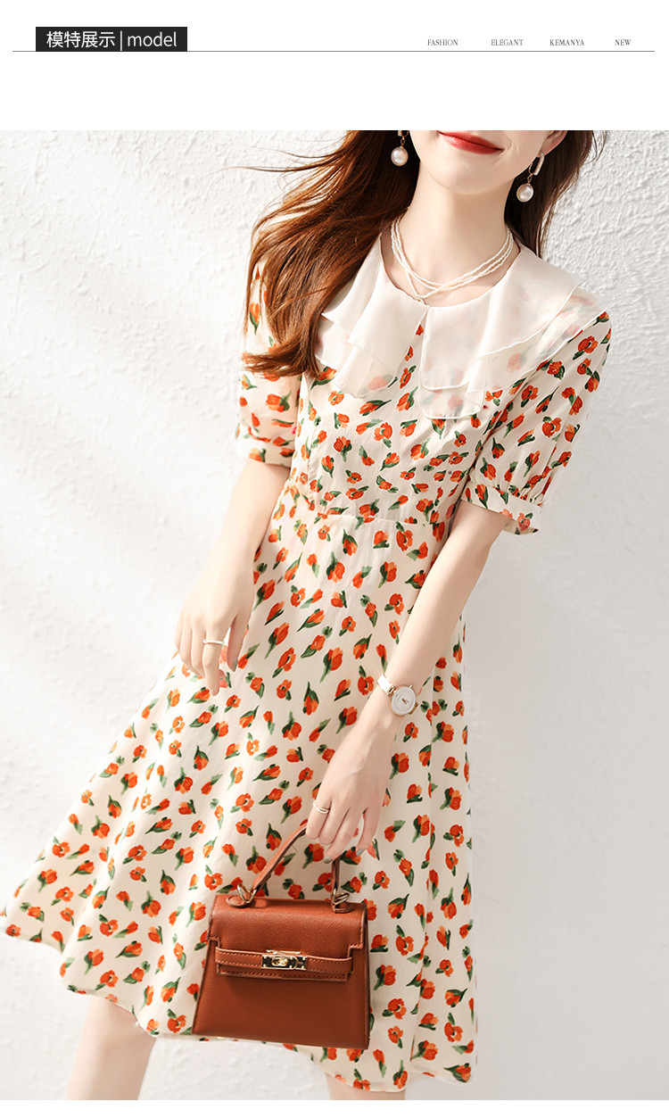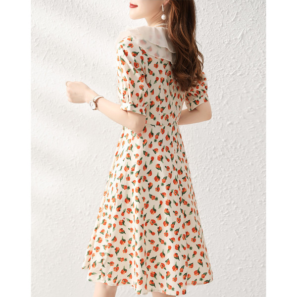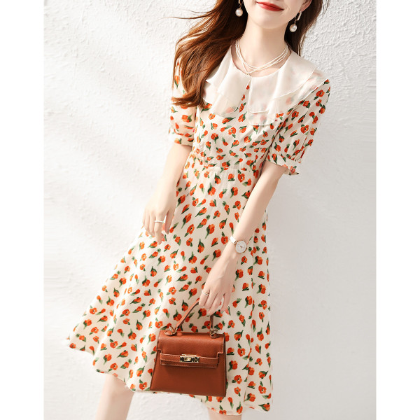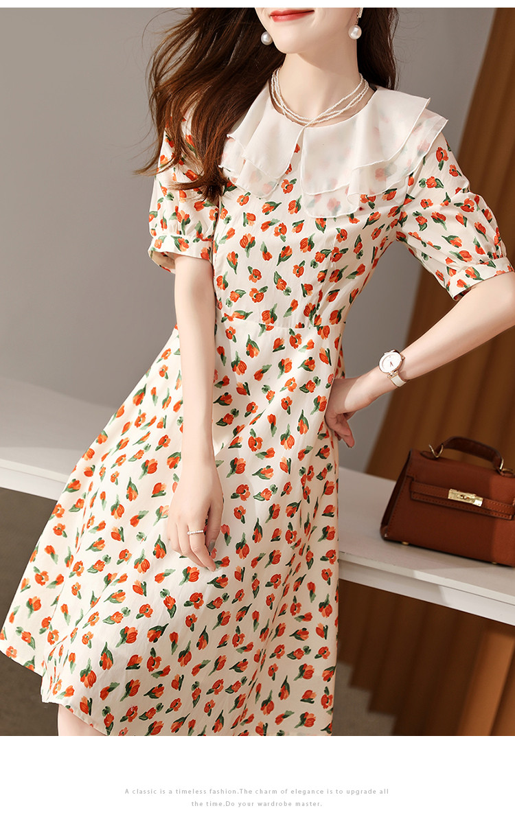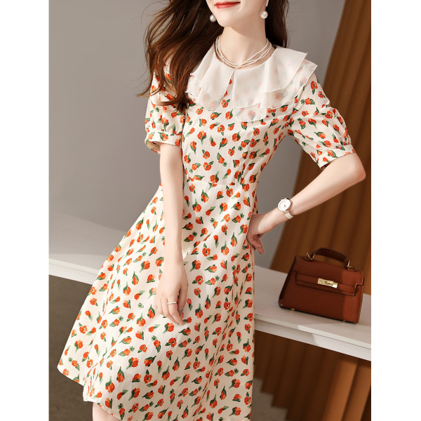 RM13332#郁金香夏季气质拼接领子印花新款精致裙子通勤气质连衣裙女夏