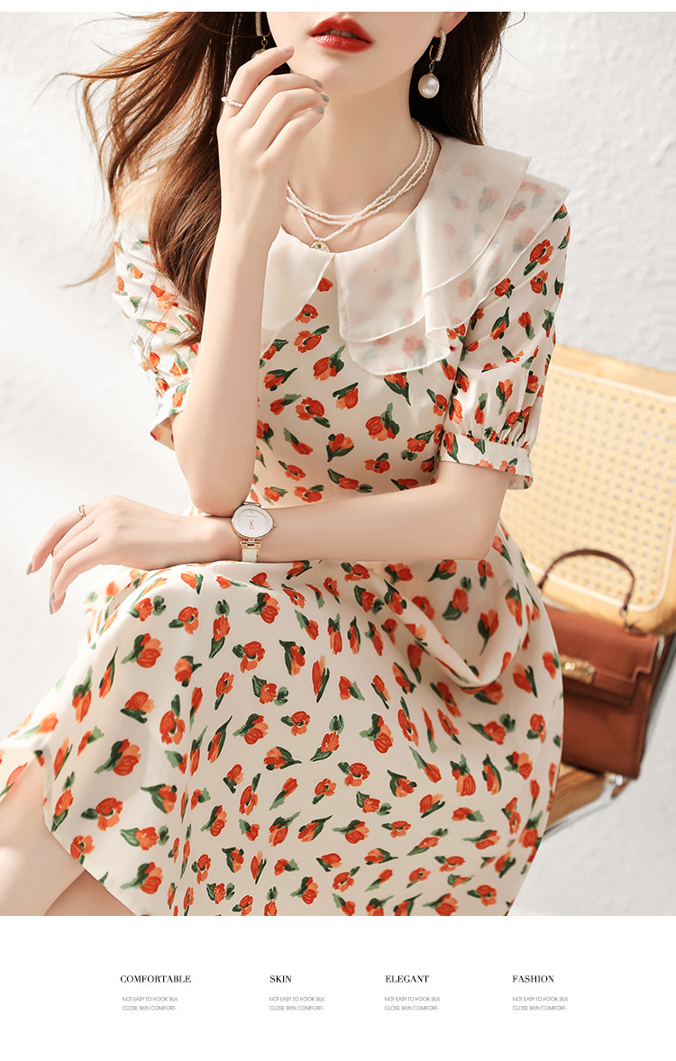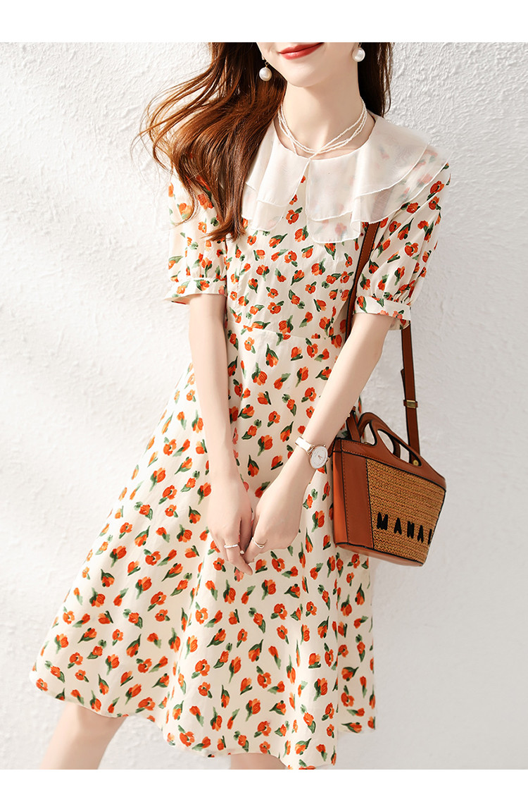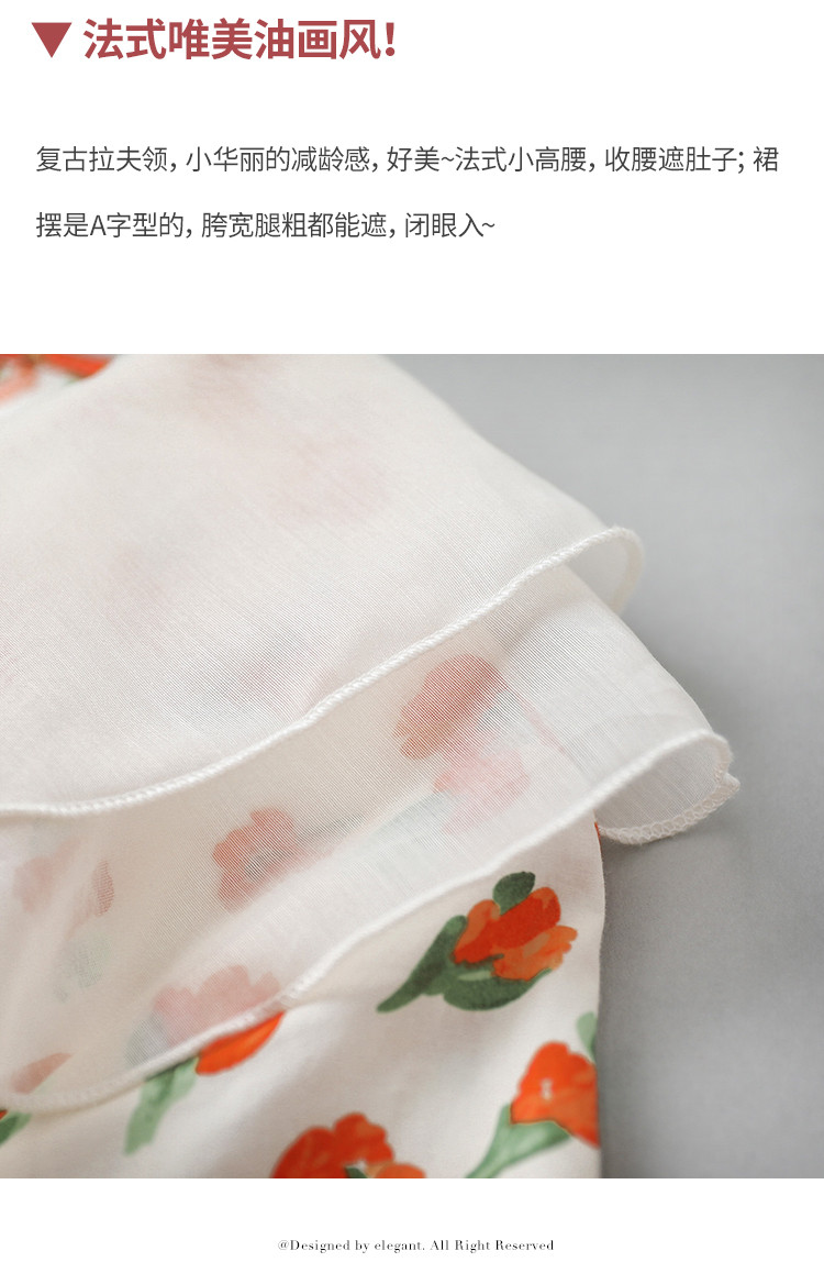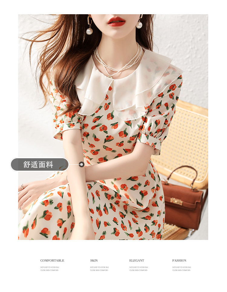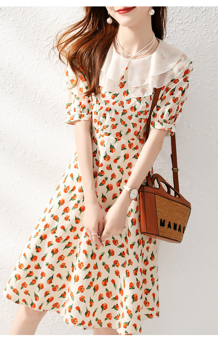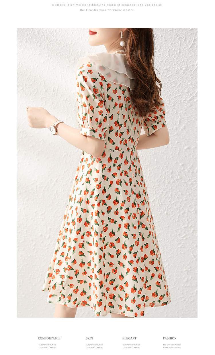 RM13332#郁金香夏季气质拼接领子印花新款精致裙子通勤气质连衣裙女夏