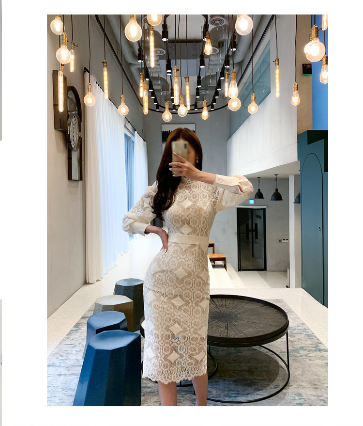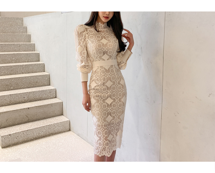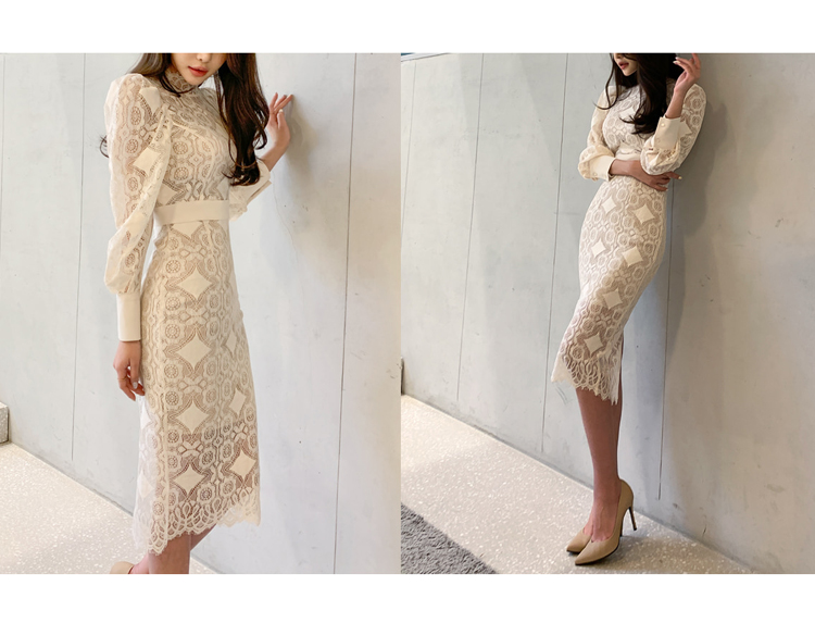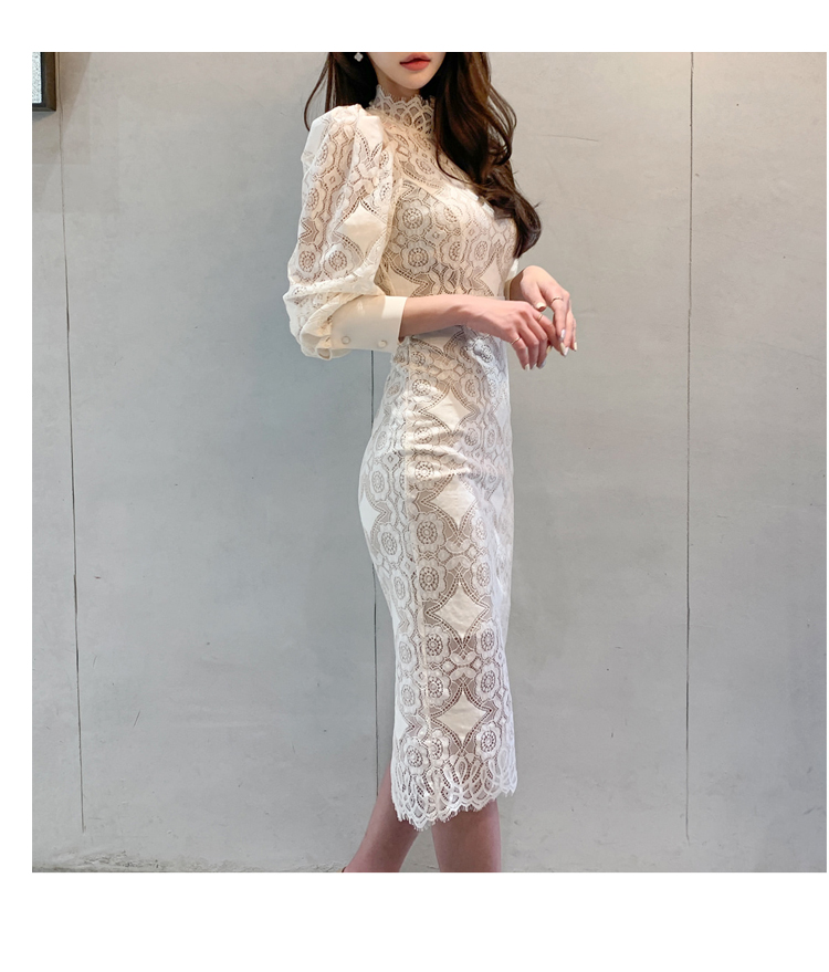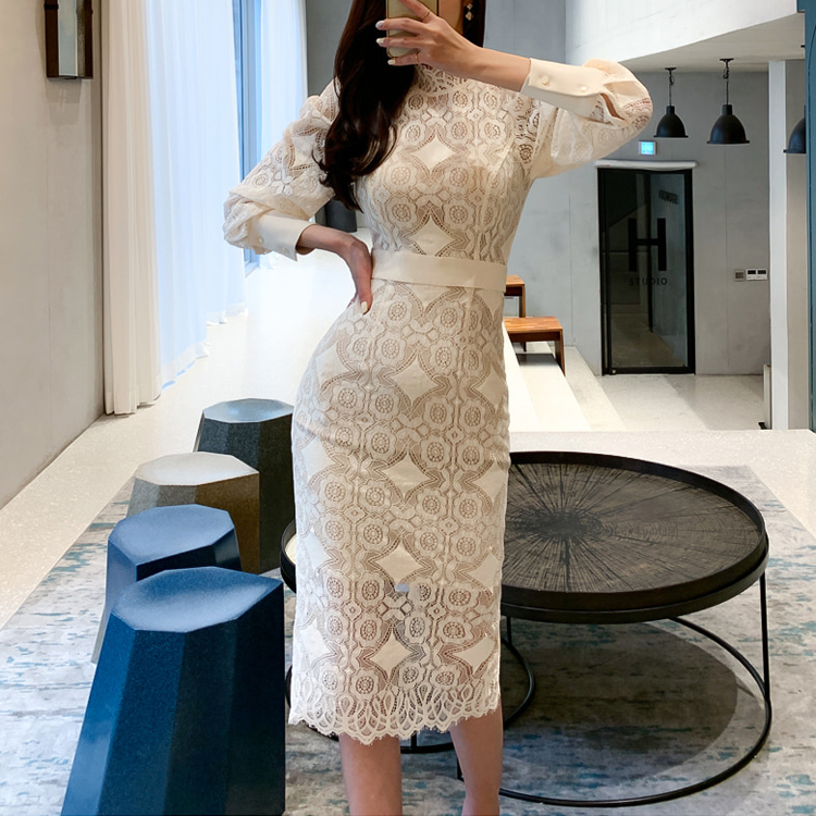 RM21604#新款立体蕾丝刺绣气质优雅礼服连衣裙