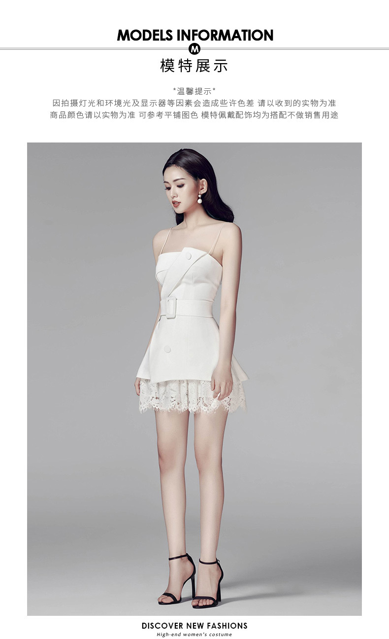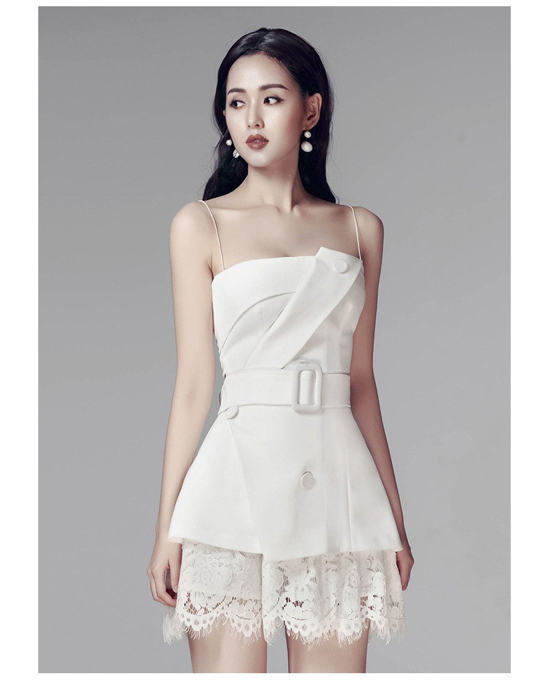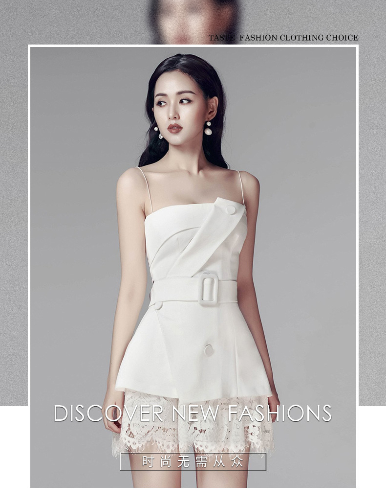 RM21784#夏新款大牌气质名媛风吊带上衣搭蕾丝短裤两件套时尚套装