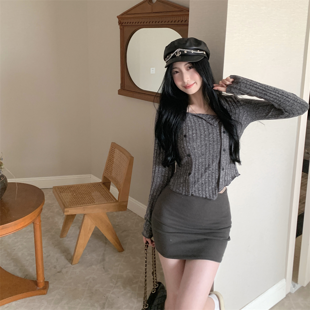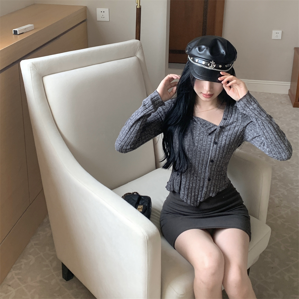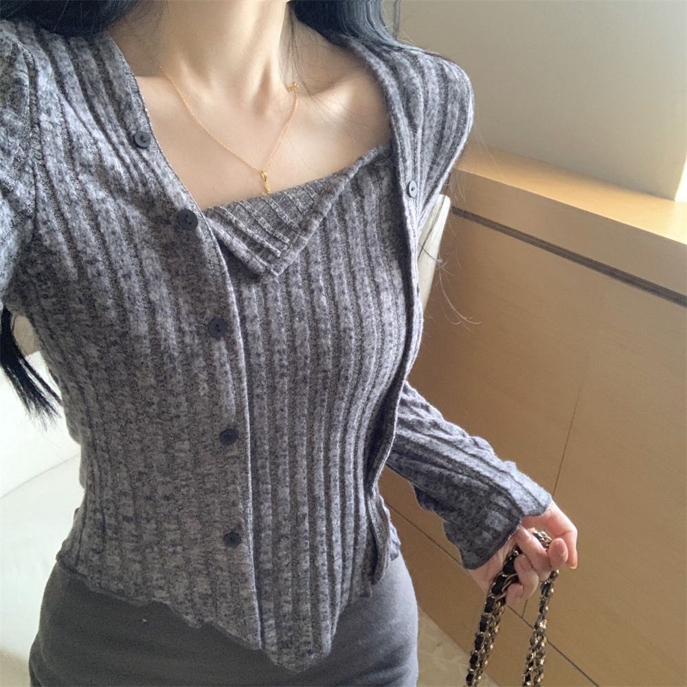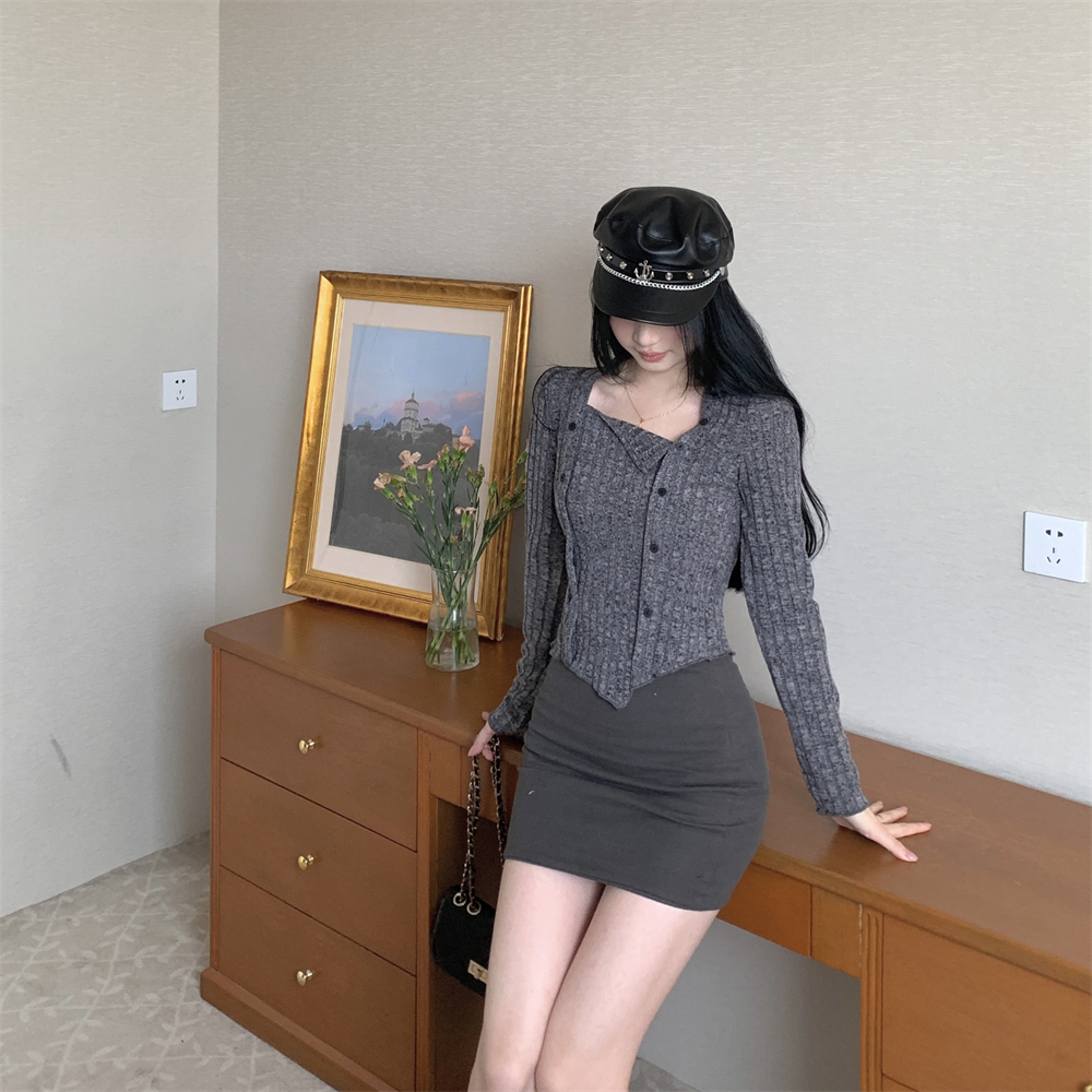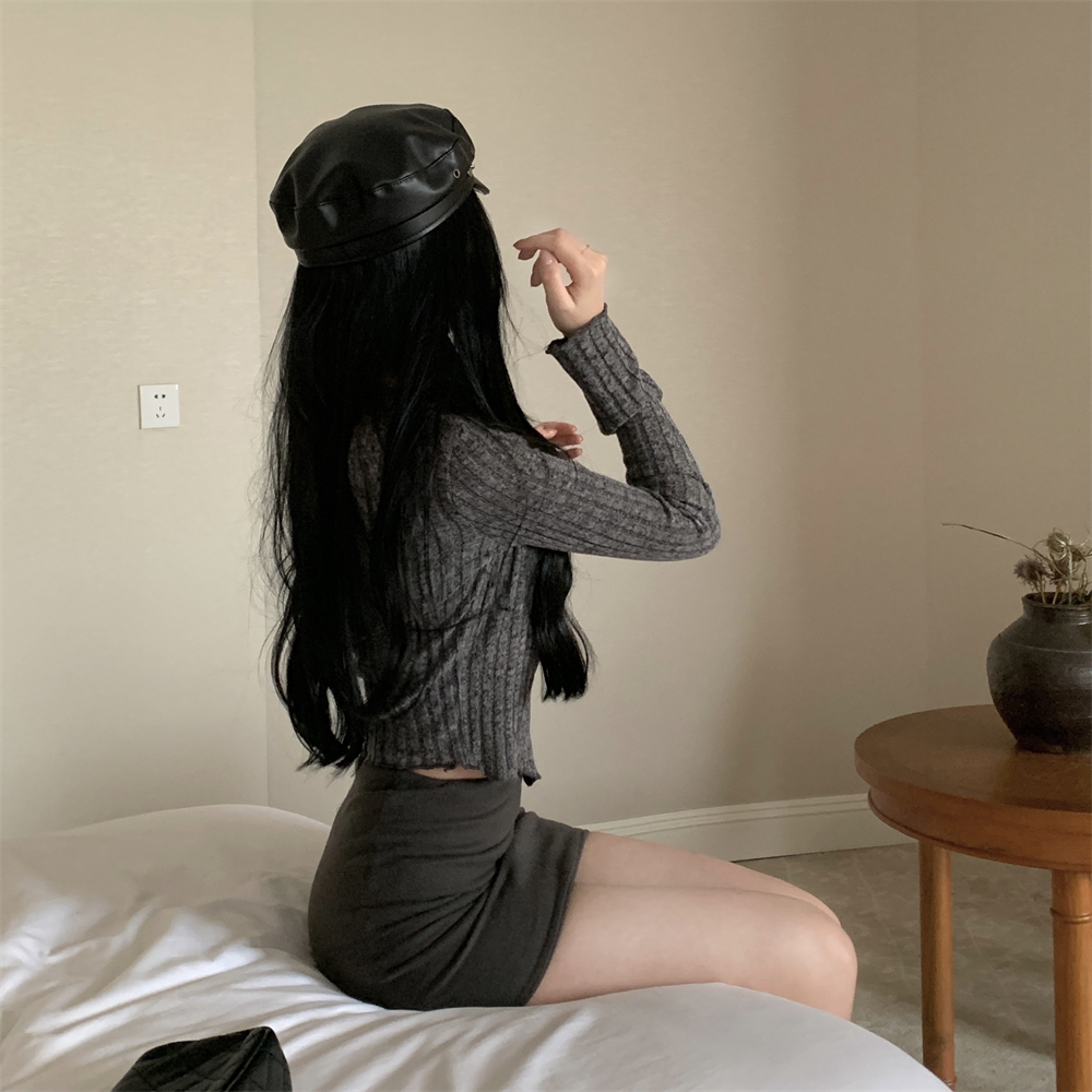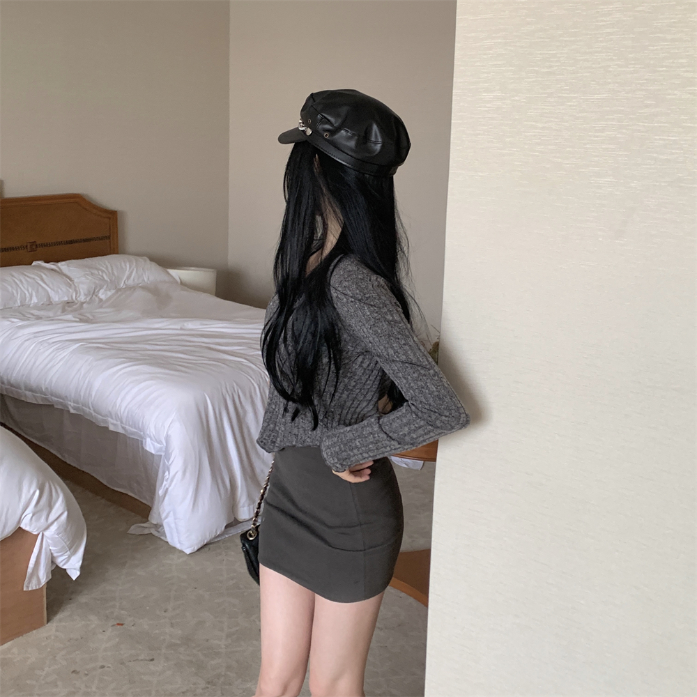 RM23596#大码胖MM2023秋季新款短款修身显瘦打底衫方领长袖上衣女