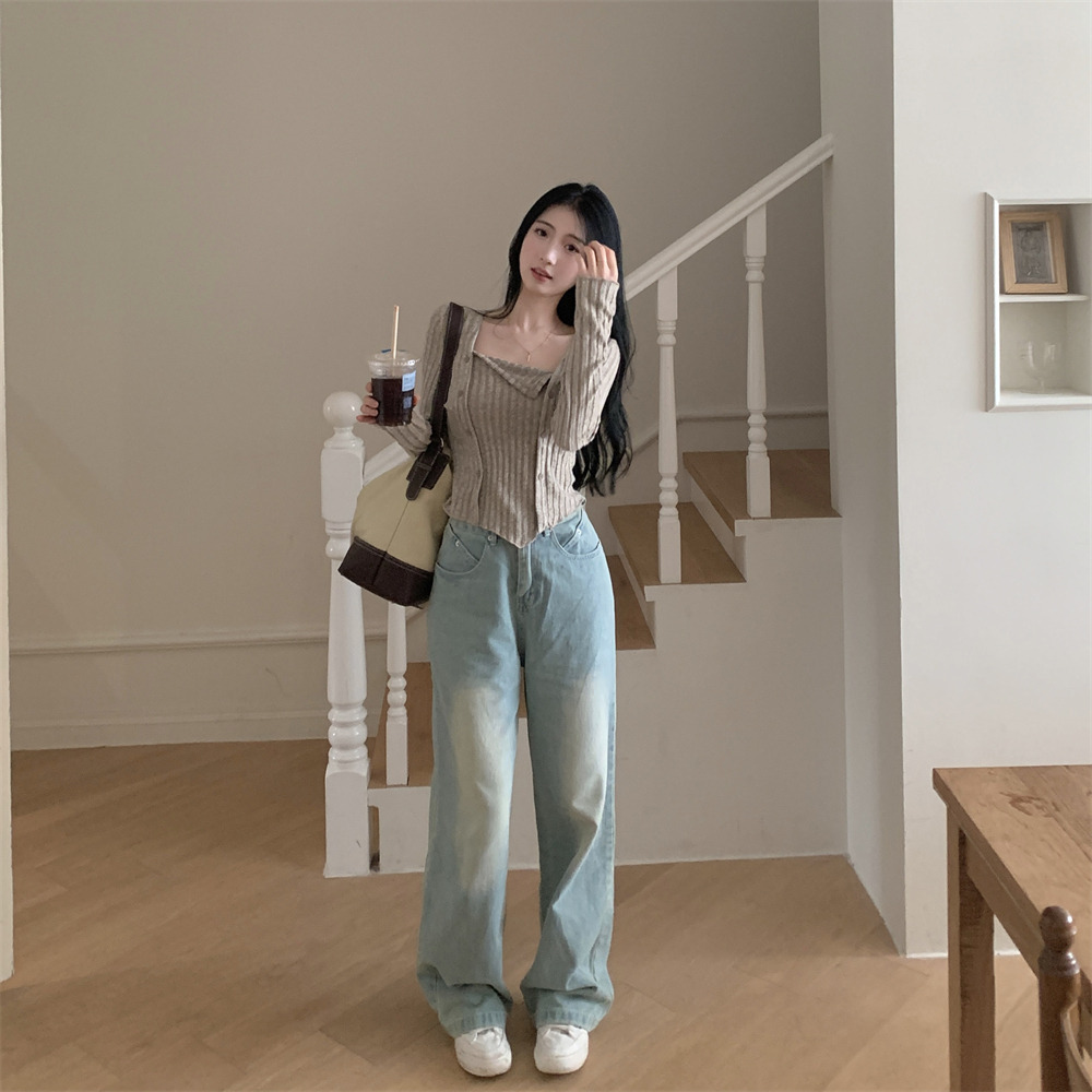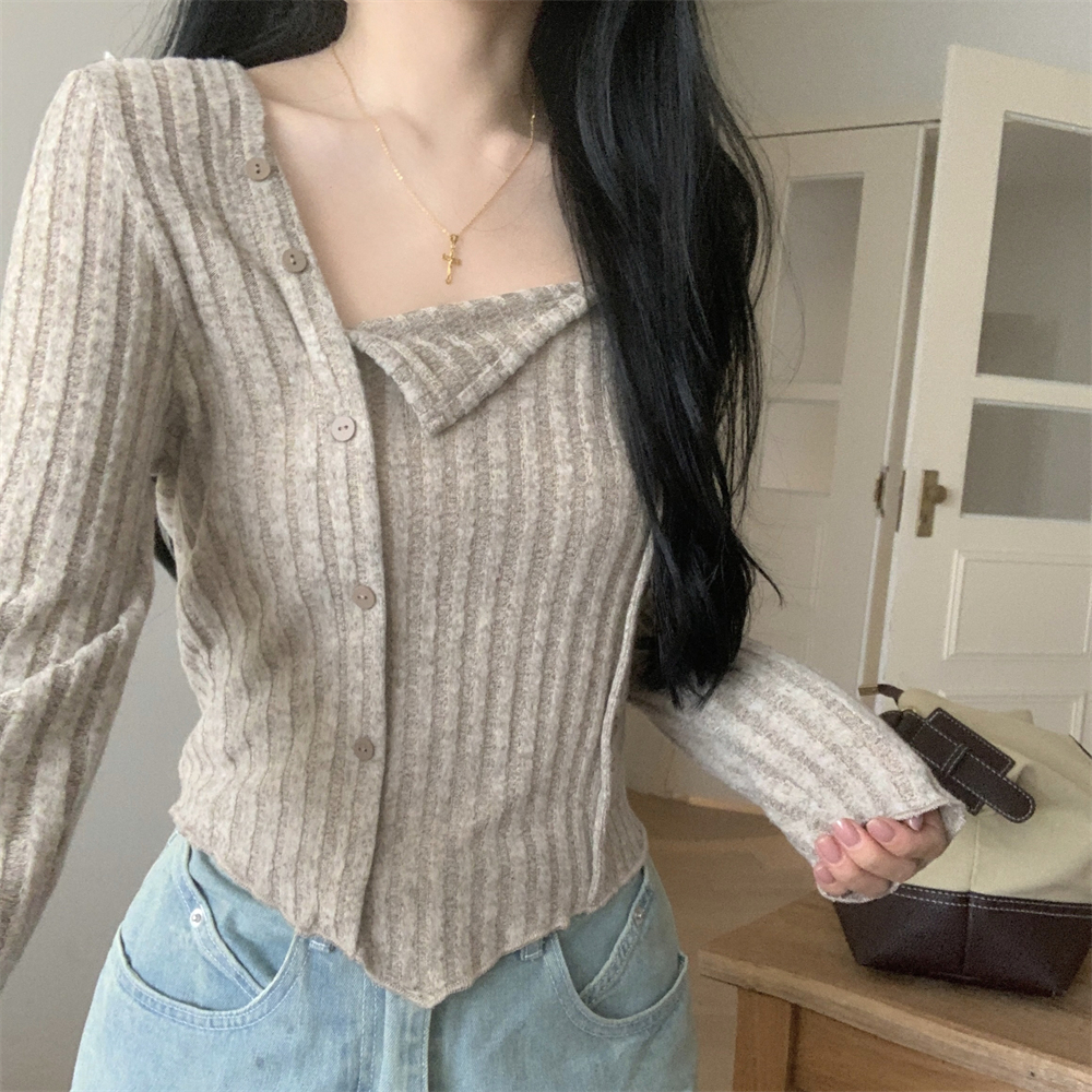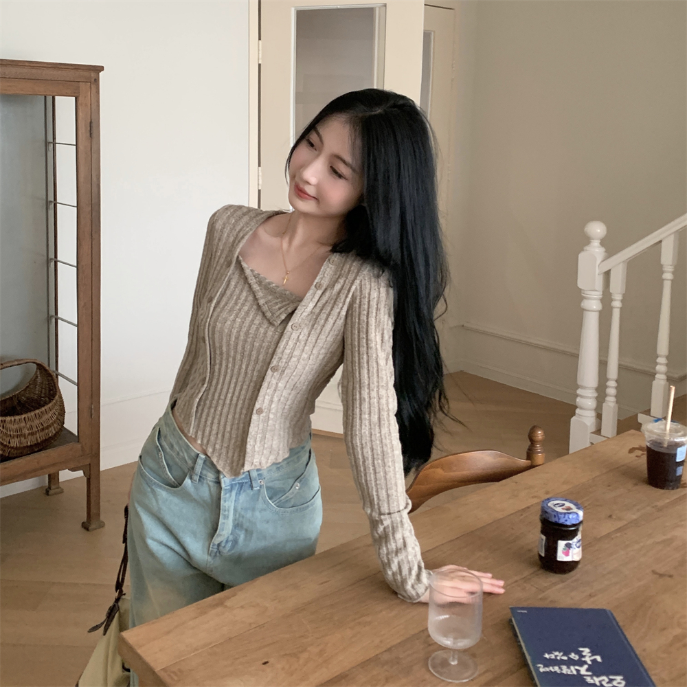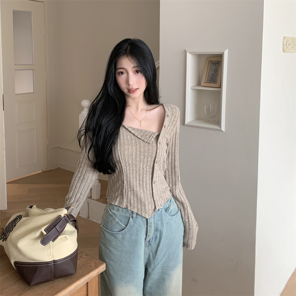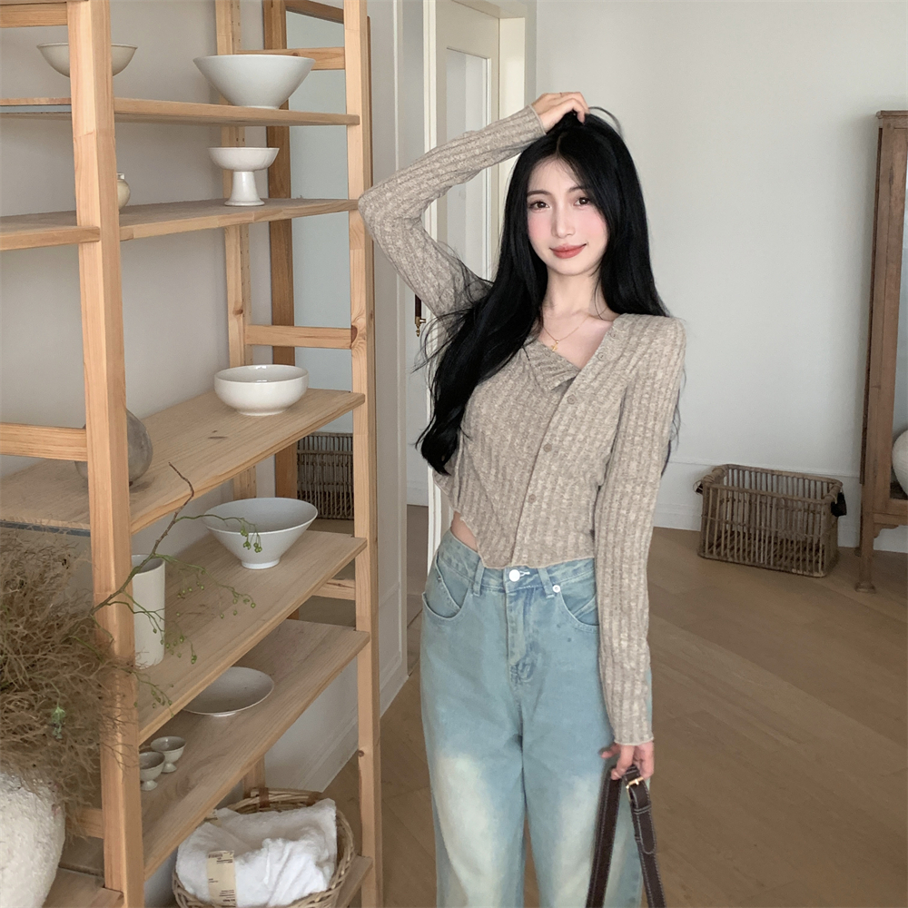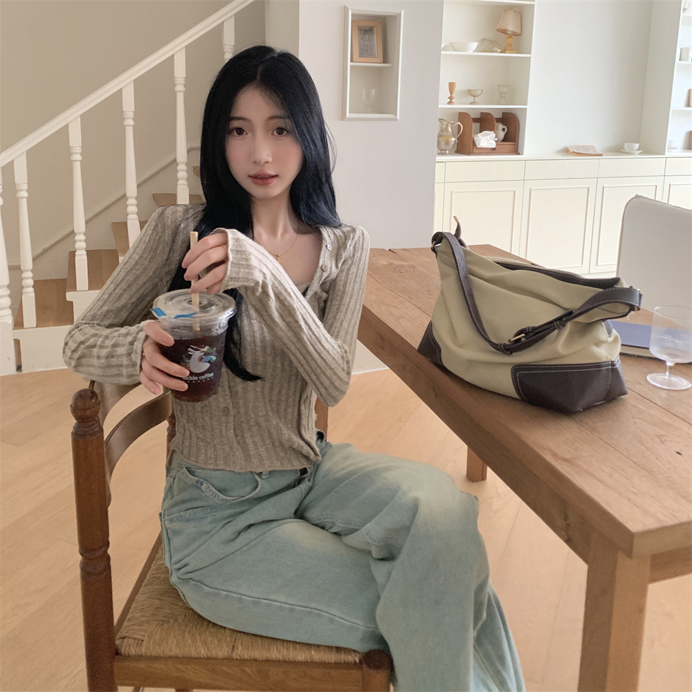 RM23596#大码胖MM2023秋季新款短款修身显瘦打底衫方领长袖上衣女