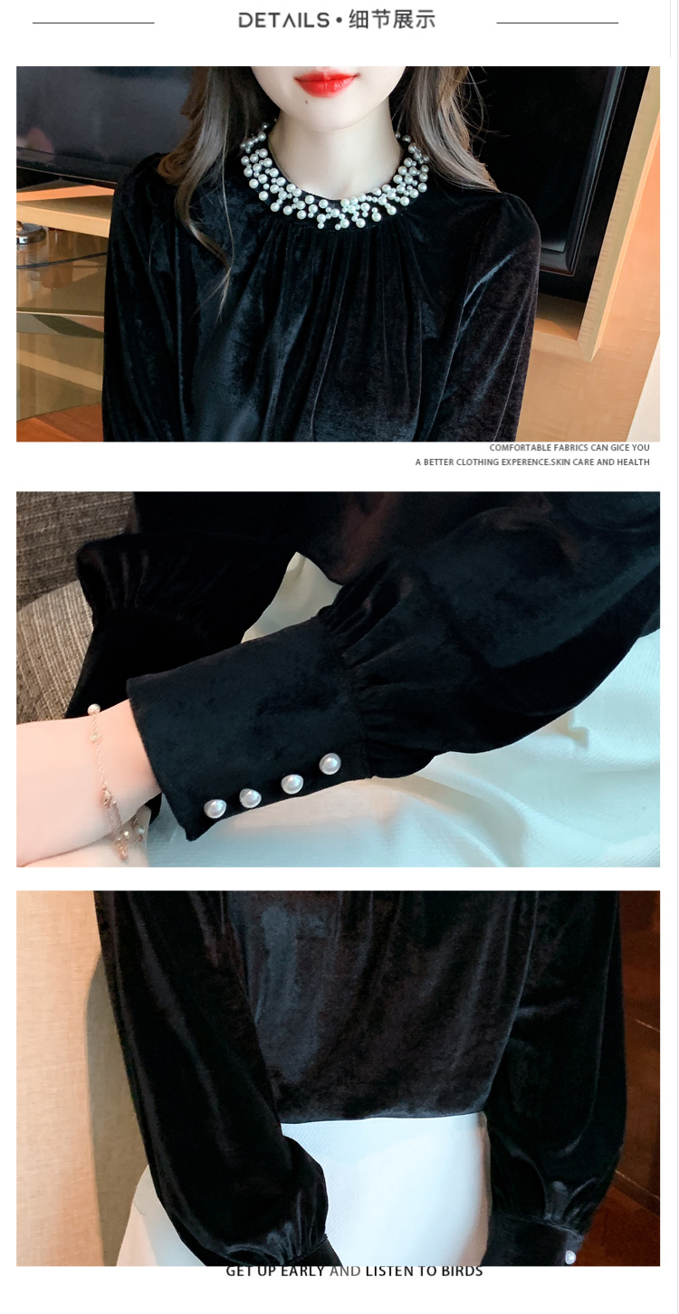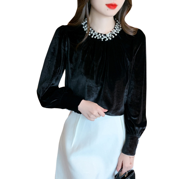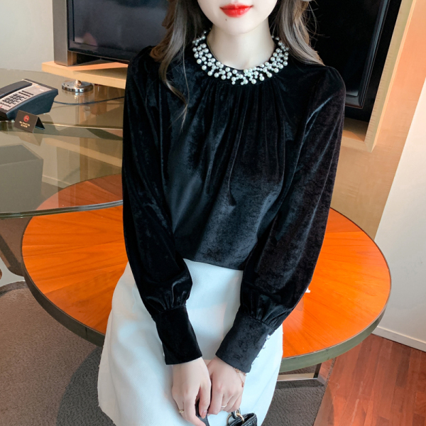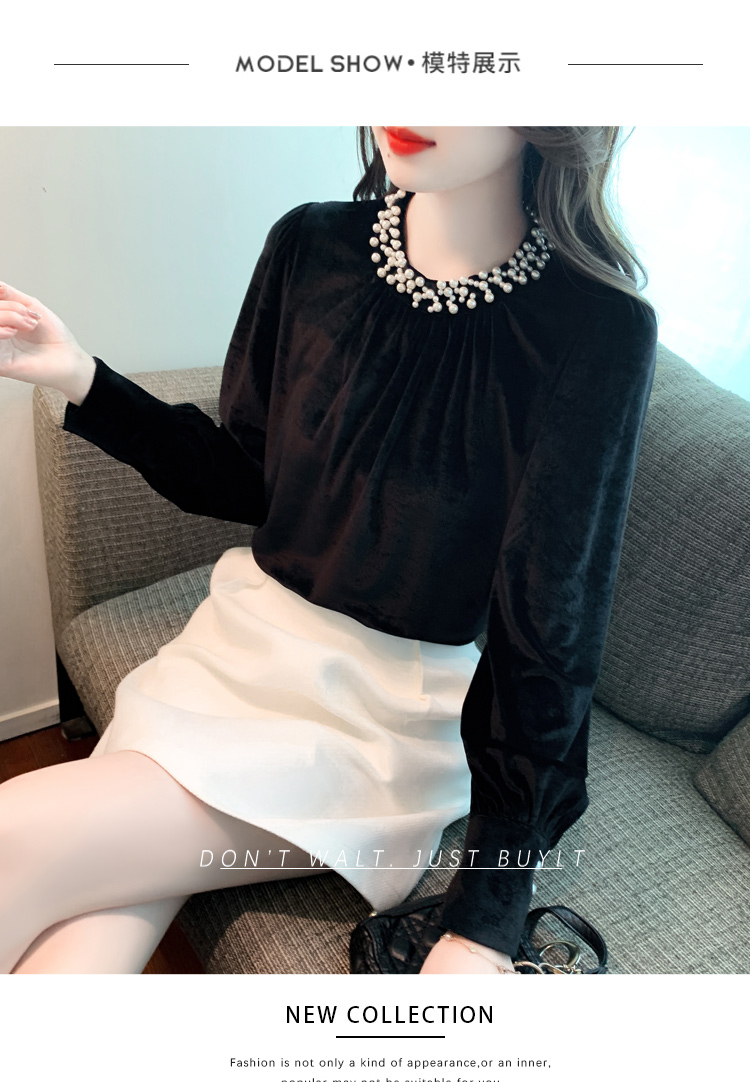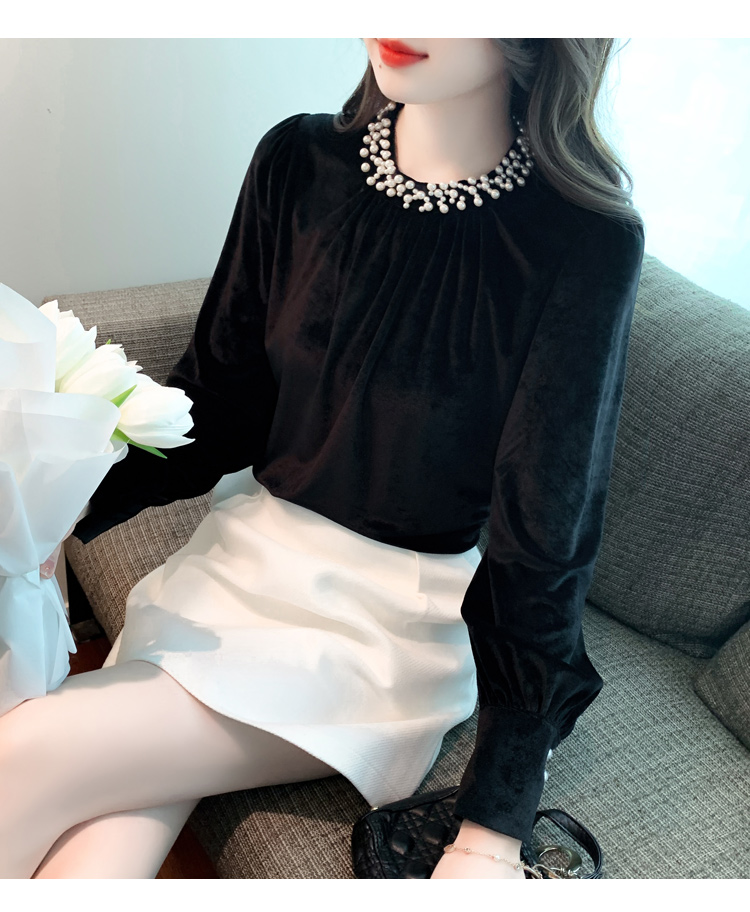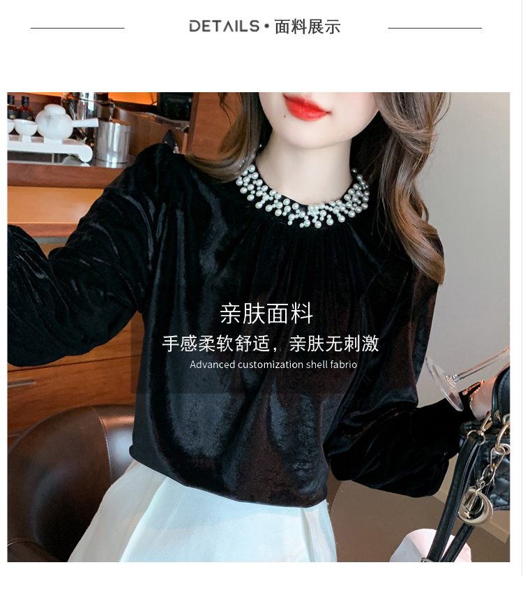 RM23603#新款金丝绒打底衫女洋气内搭长袖小衫珍珠长袖上衣