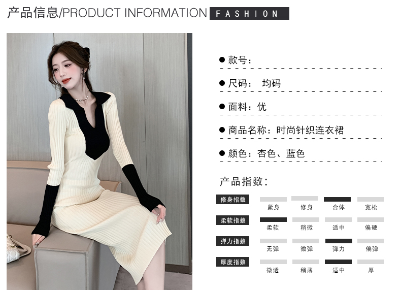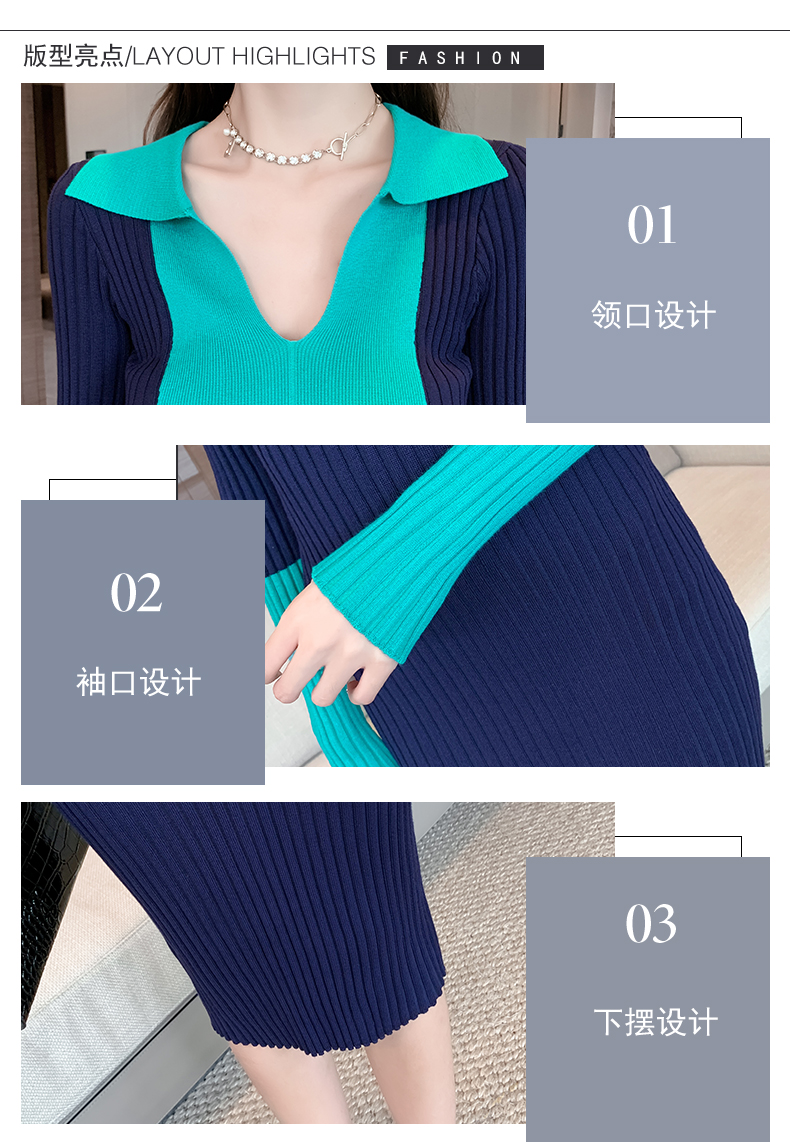 RM24841#简约韩版V领新款秋冬气质高级名媛长款针织包臀修身连衣裙