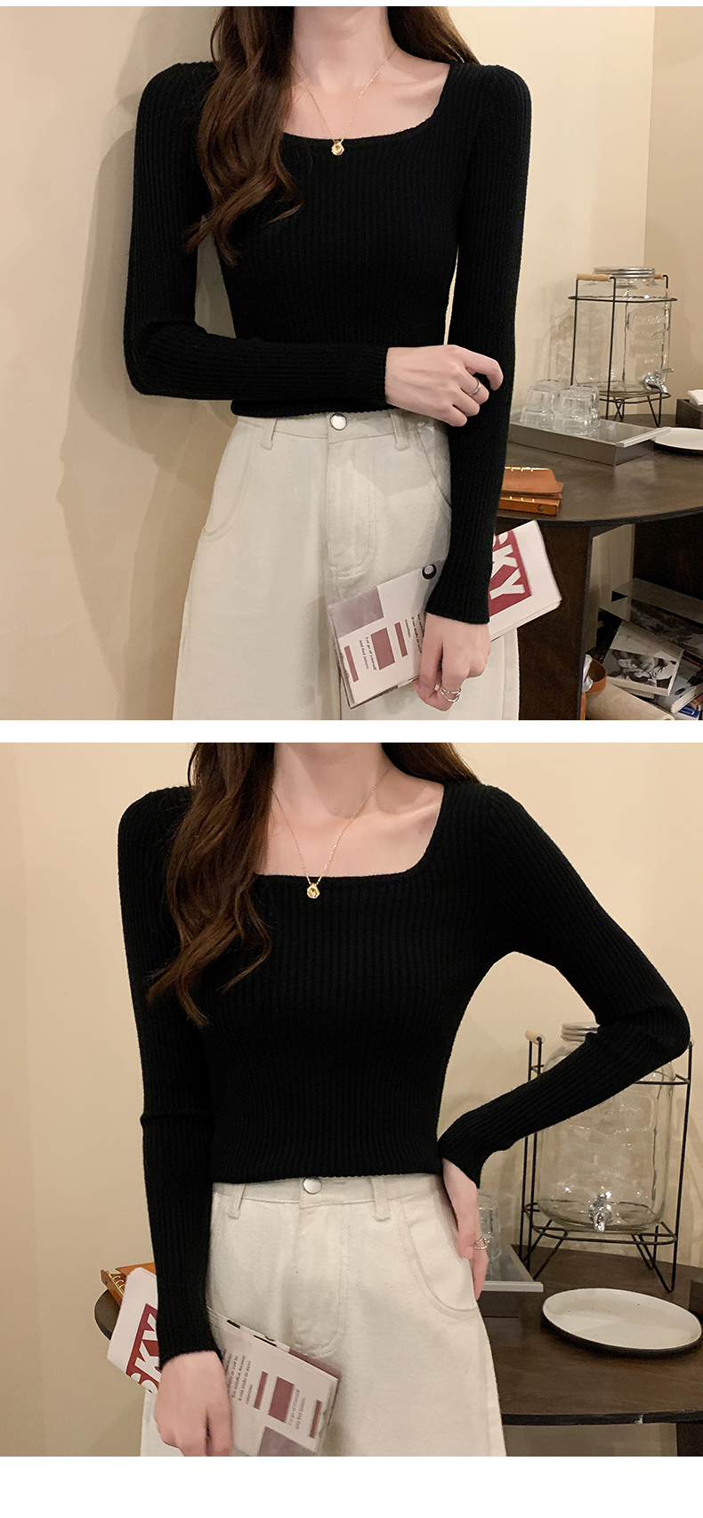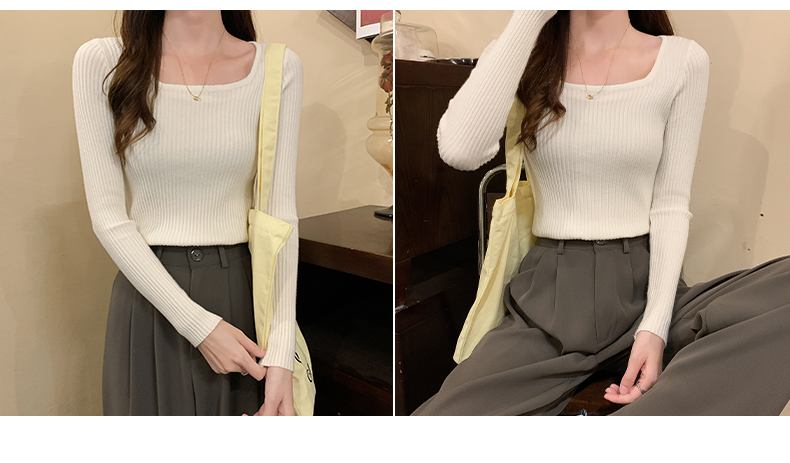RM28541#新款方领修身长袖打底衫高品质低领内搭毛衣女秋冬针织衫