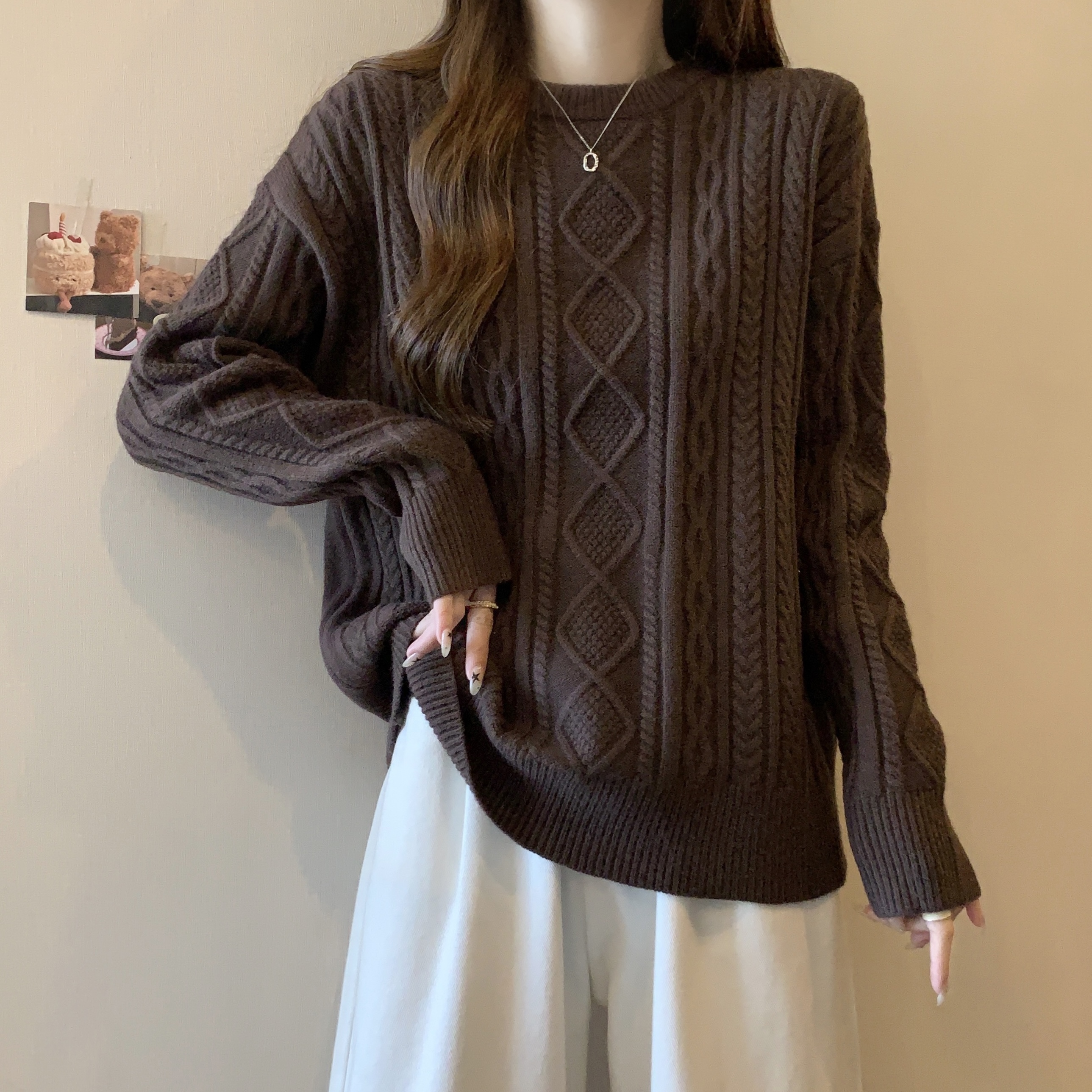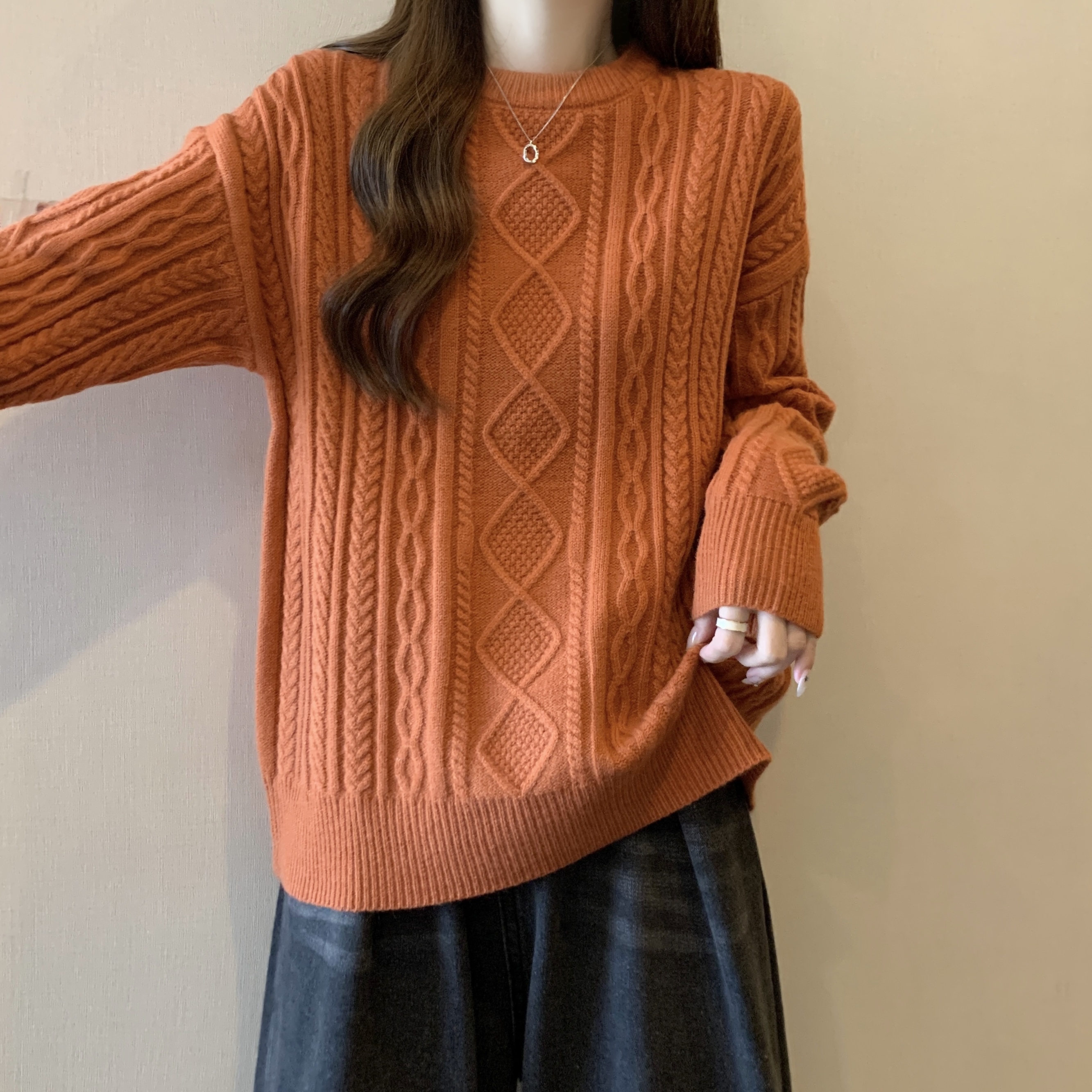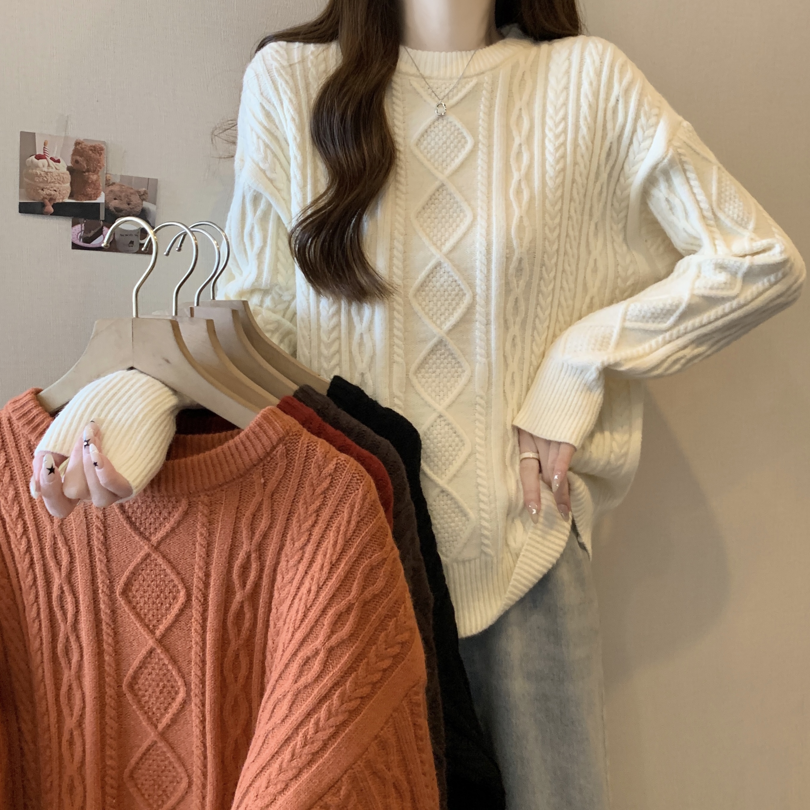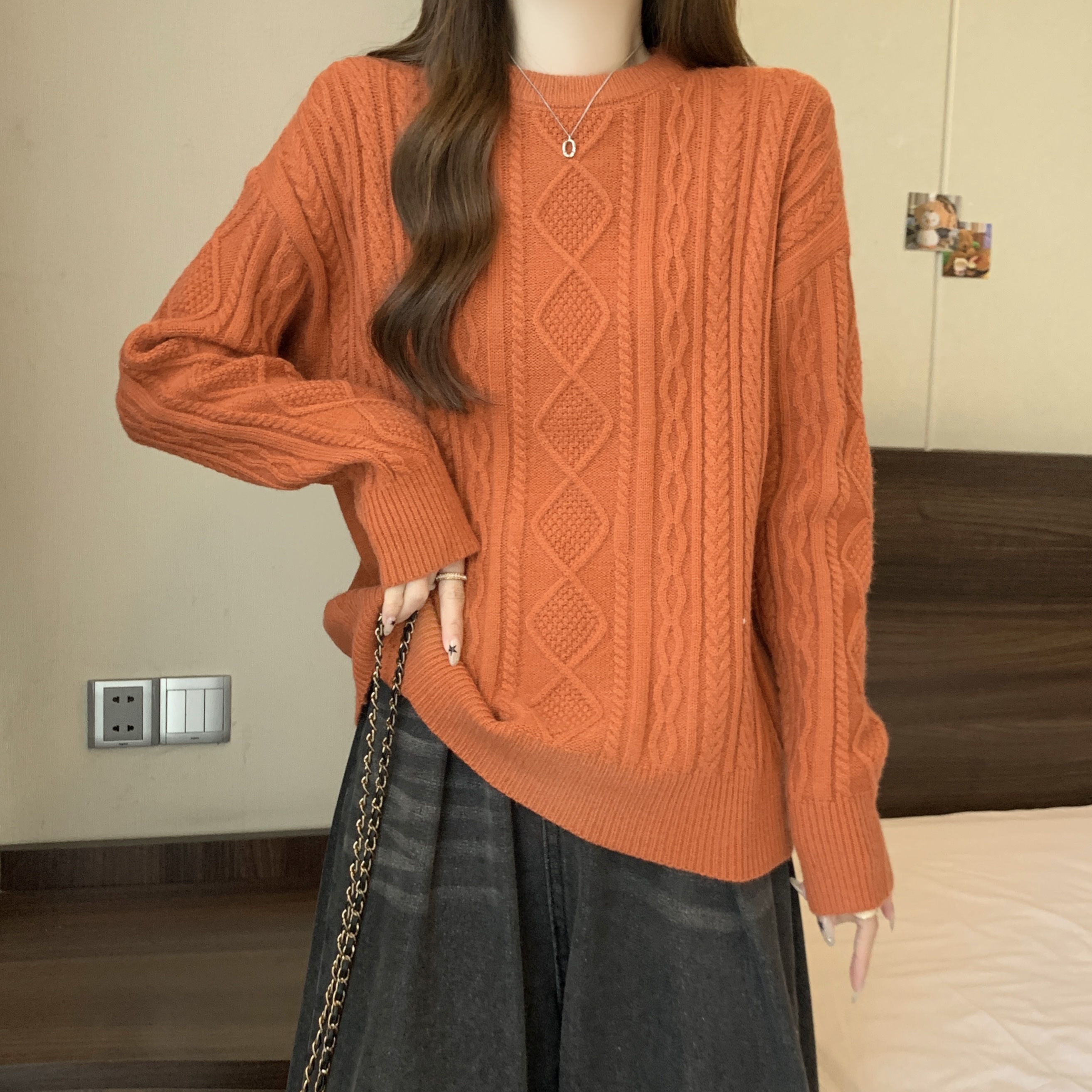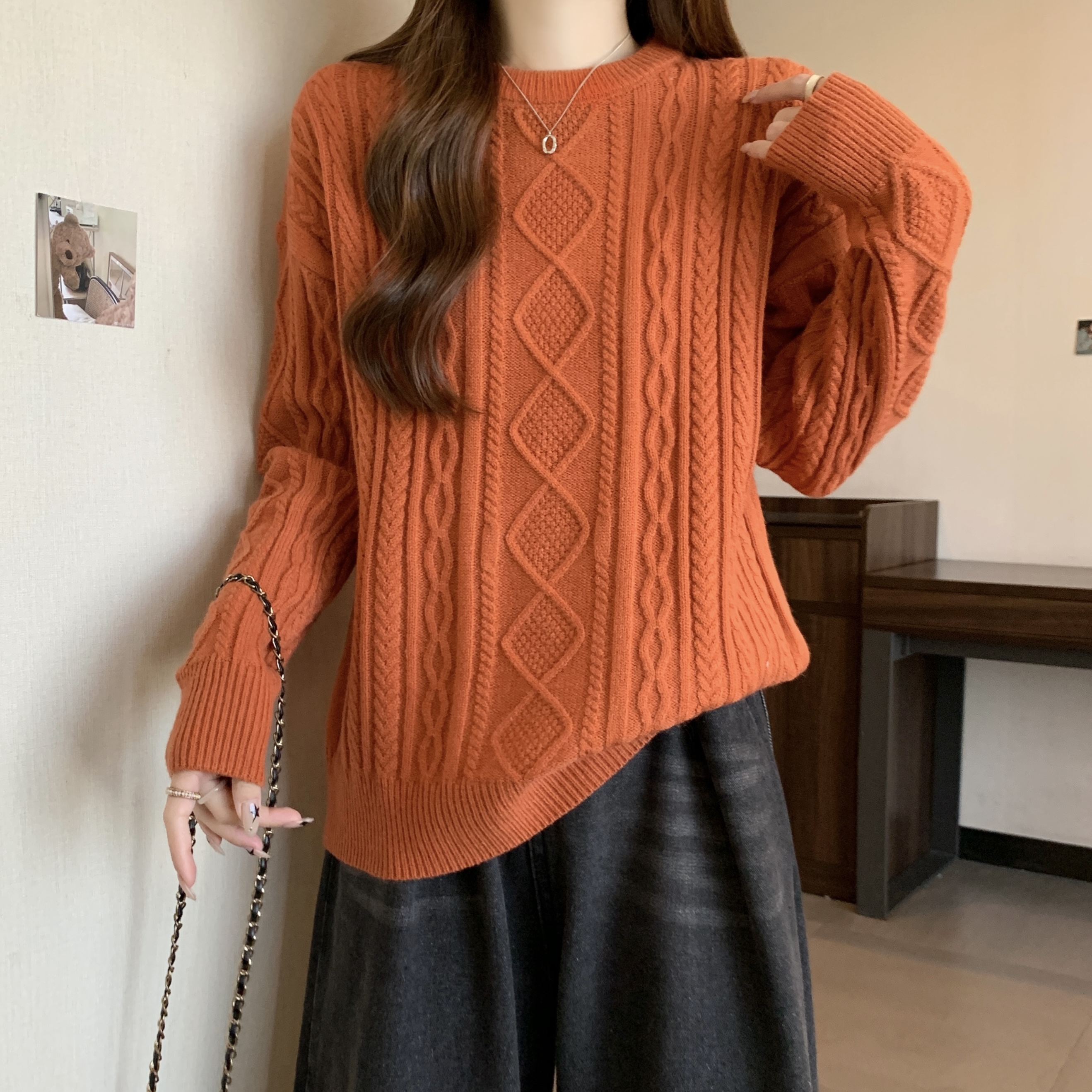 RM28639#大码2023秋冬新款韩系风复古麻花简约高级感针织保暖舒适毛衣
