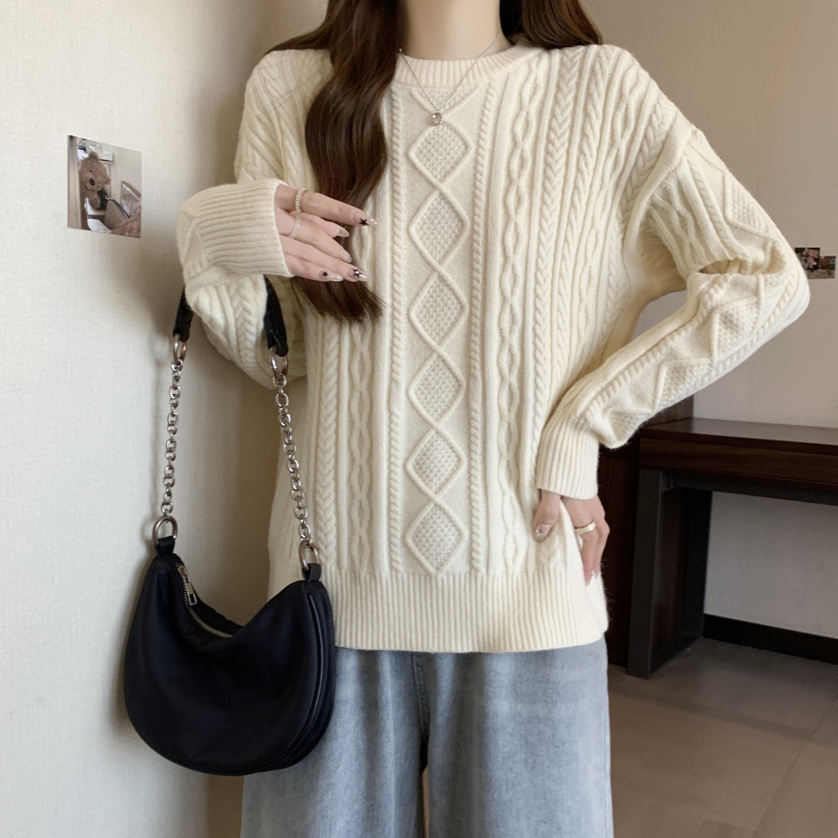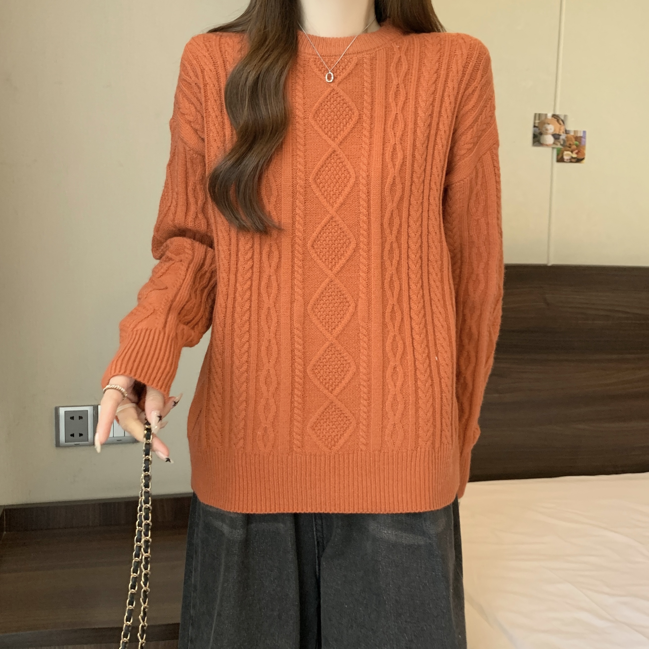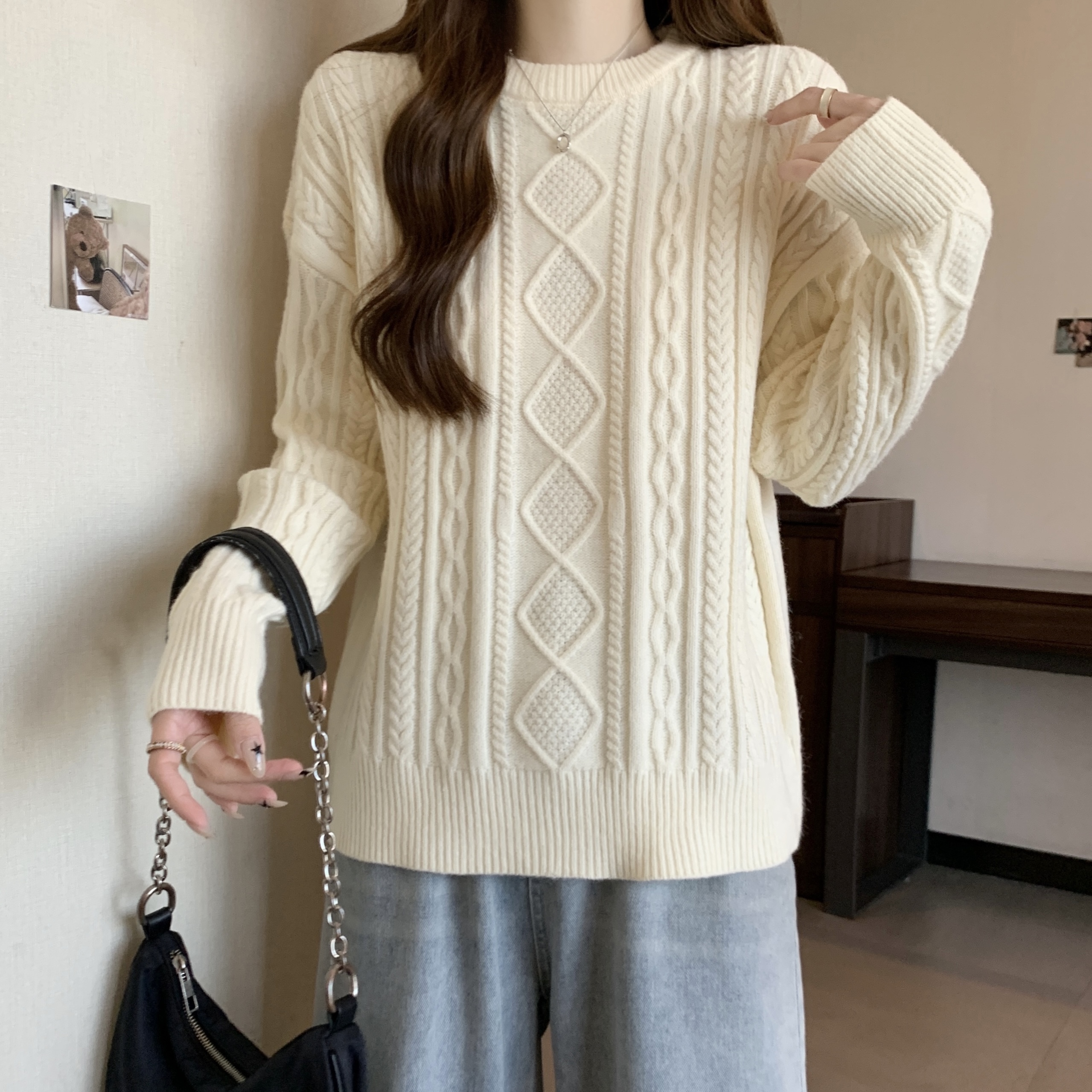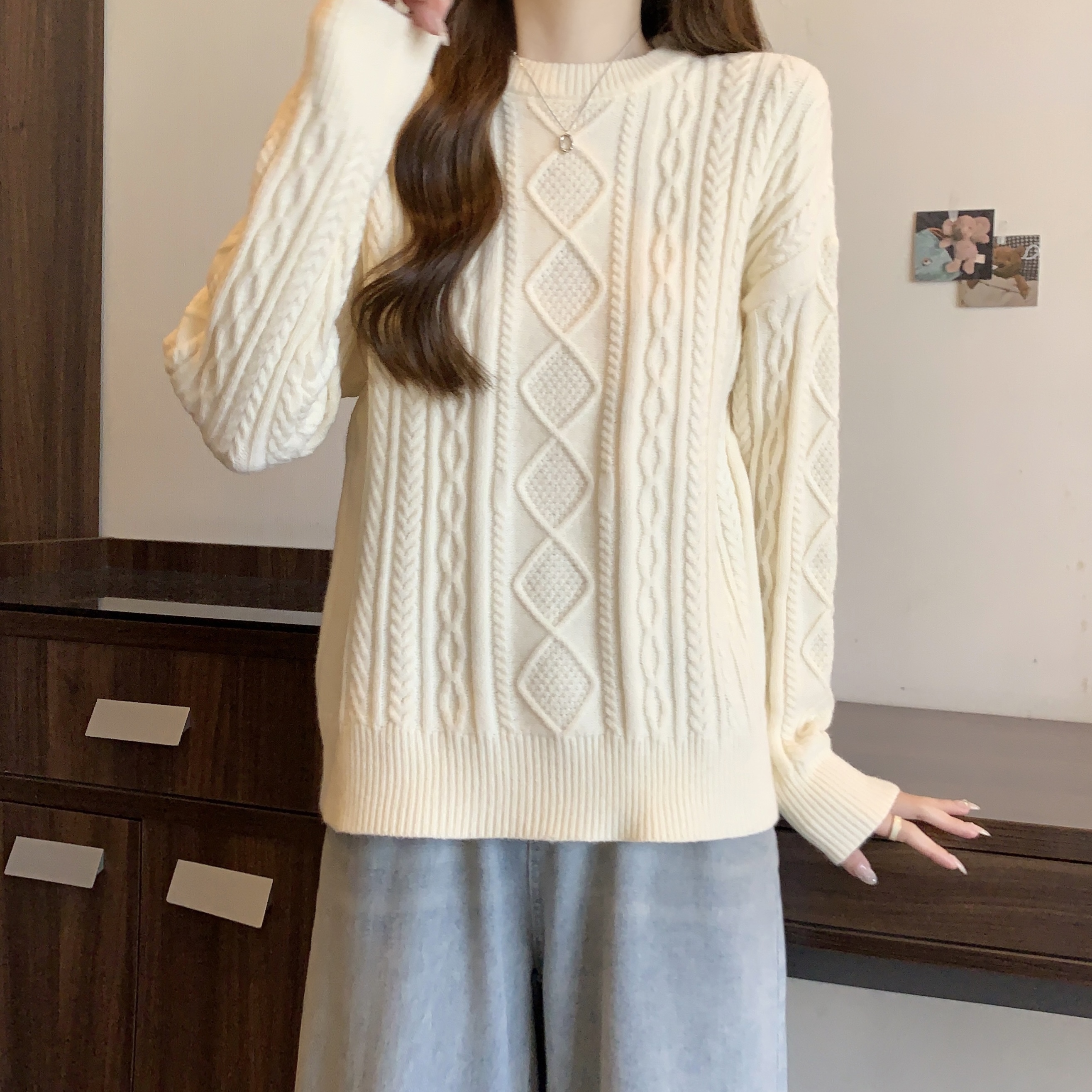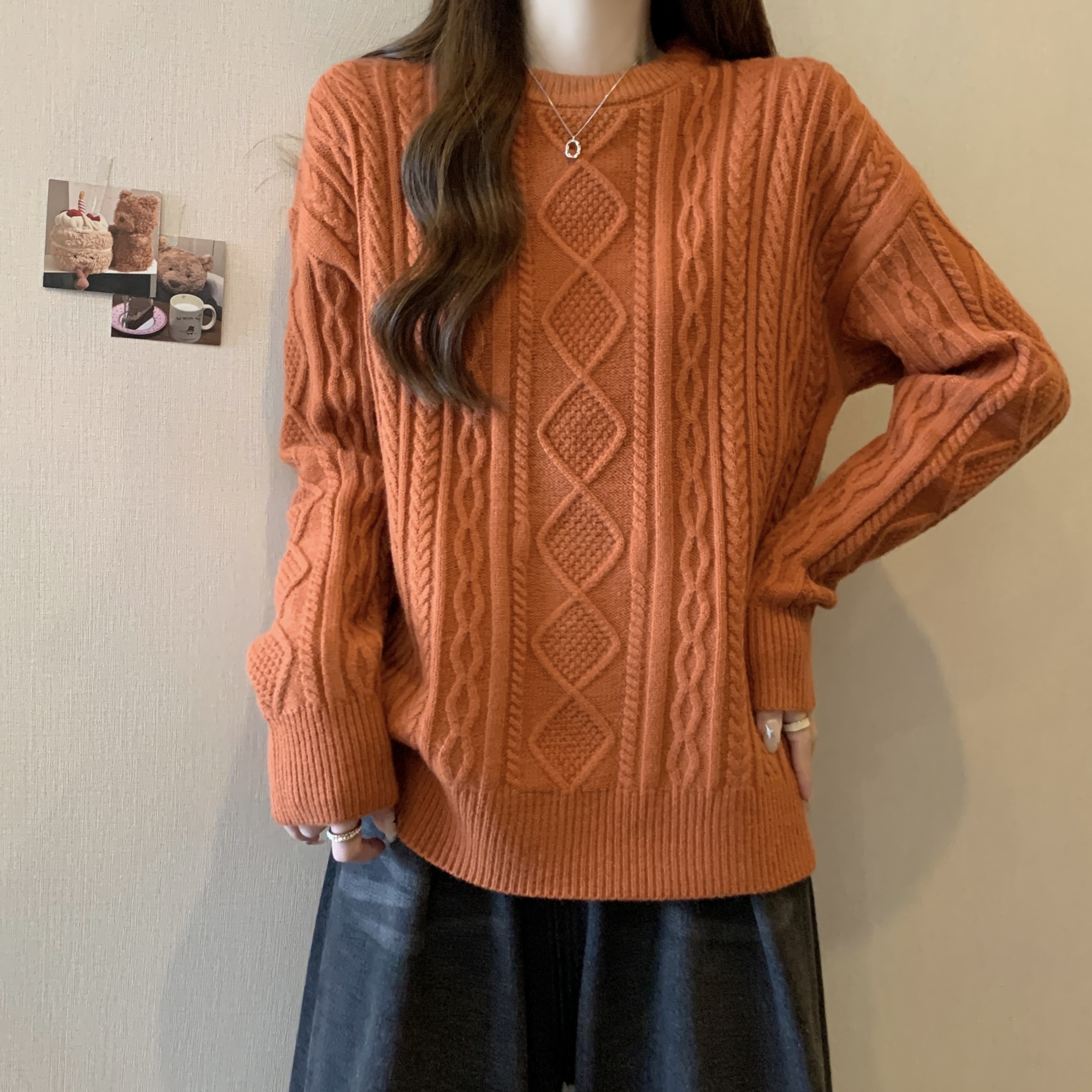 RM28639#大码2023秋冬新款韩系风复古麻花简约高级感针织保暖舒适毛衣