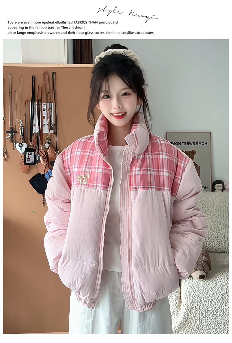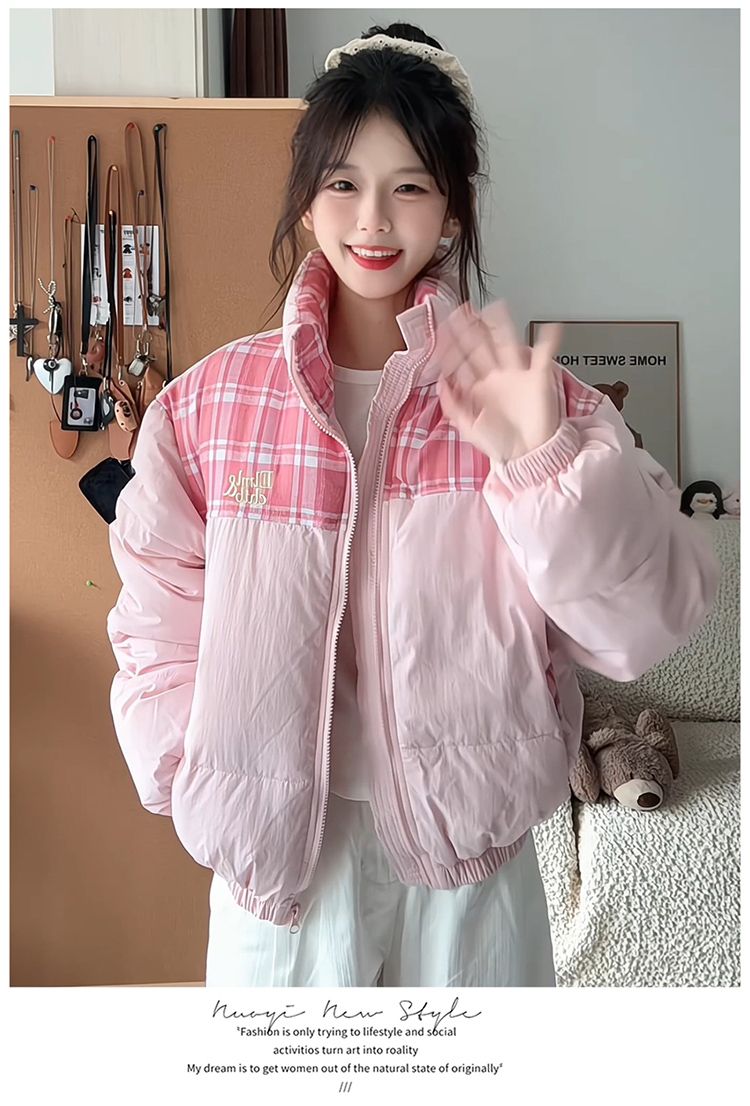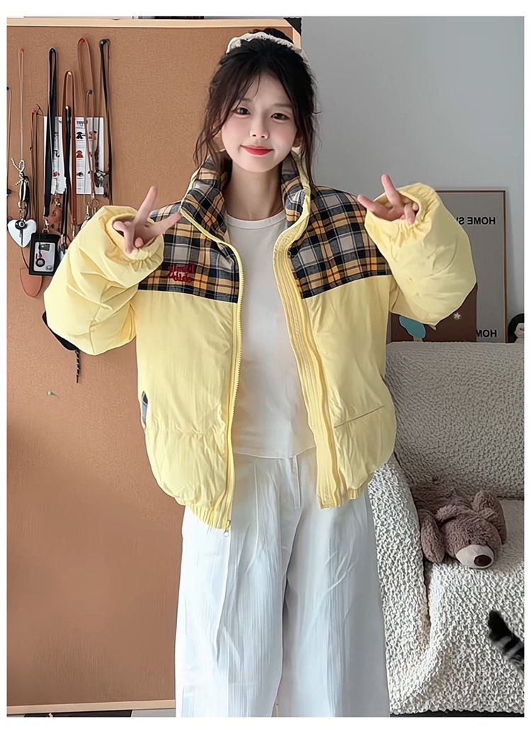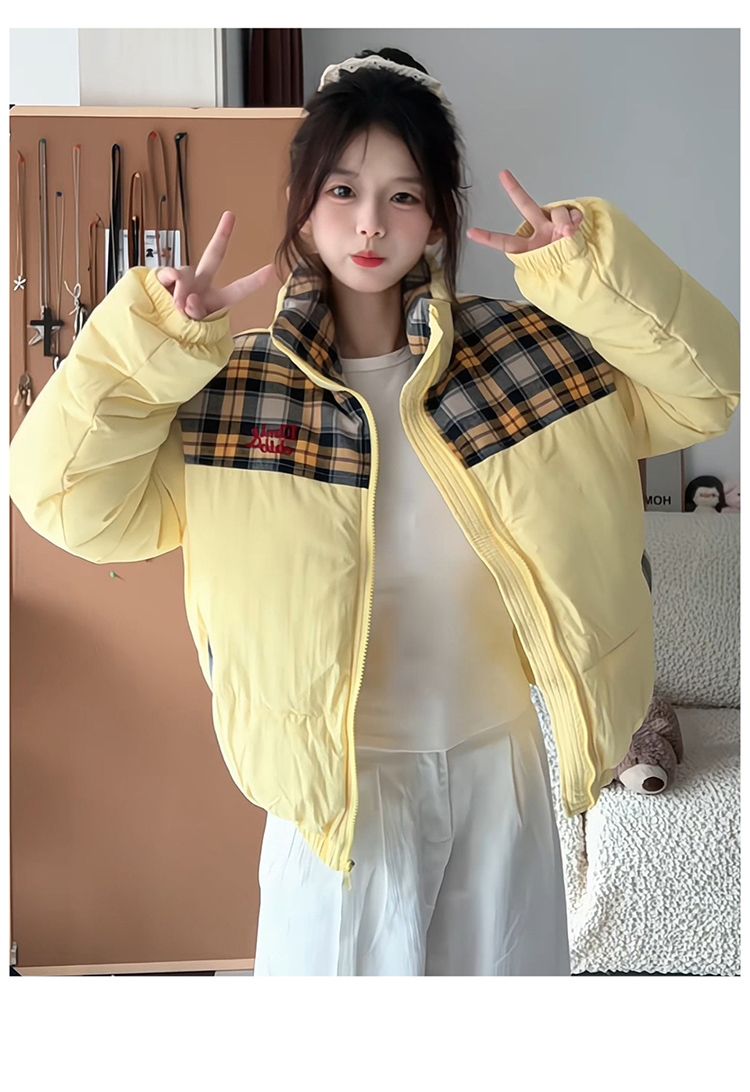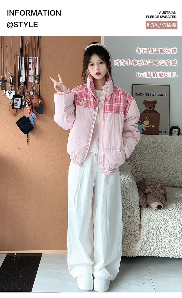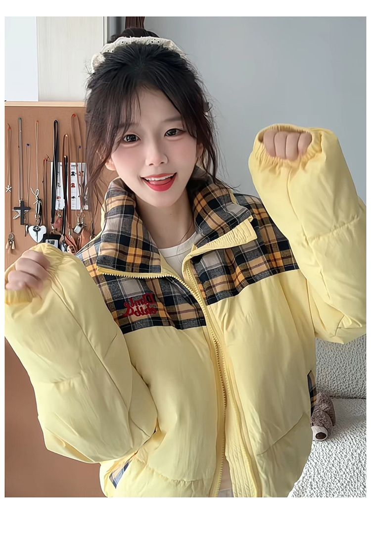 MY14252# 新款韩版拼接格子立领棉服外套女个性百搭休闲棉衣女女裝貨源服裝批發