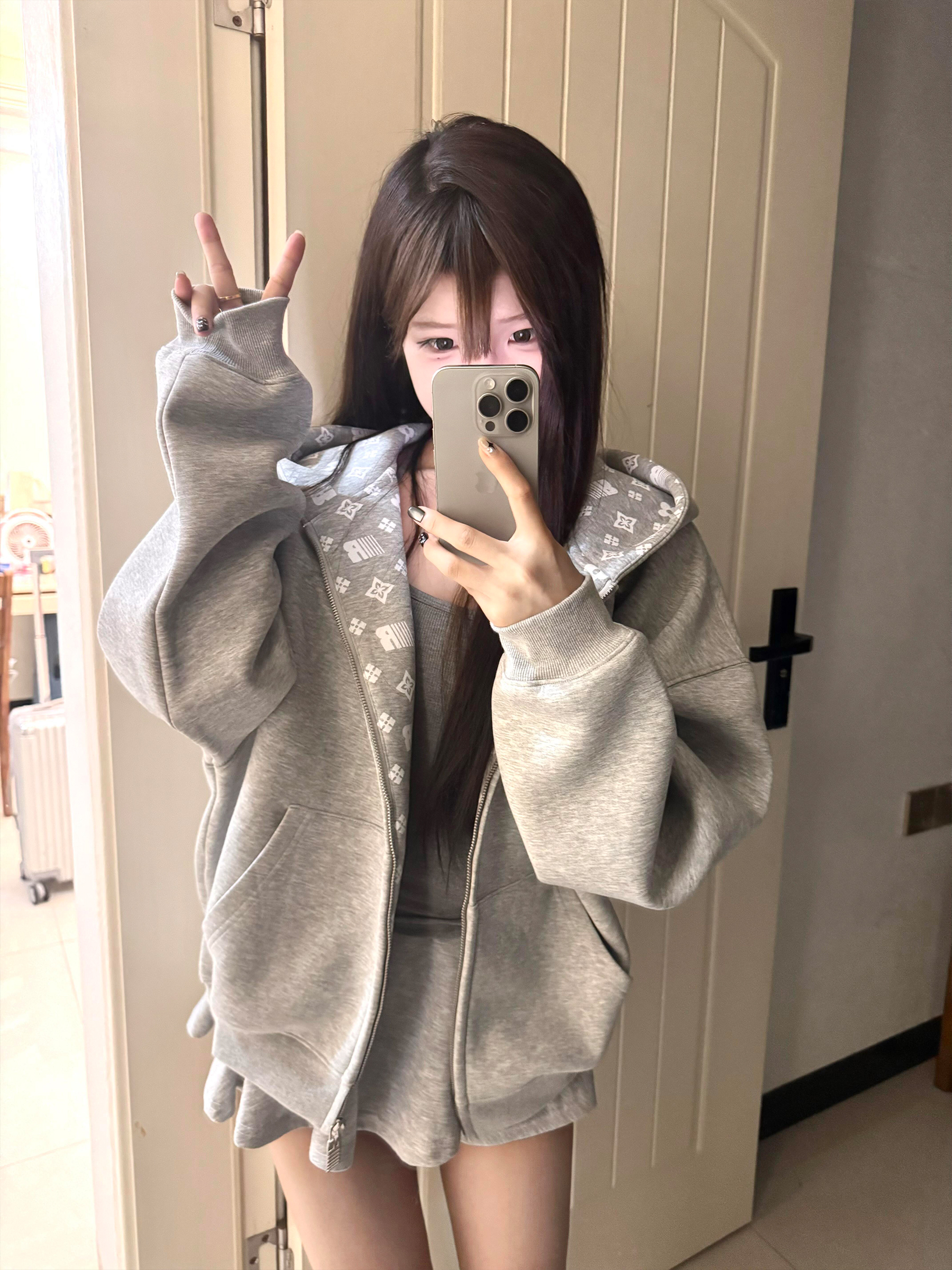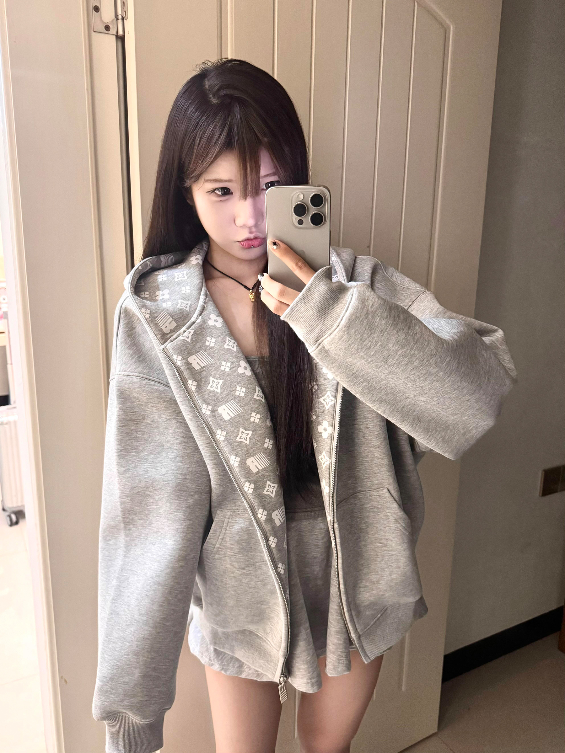 MY14289# 刺绣+有内抽+华棉复合银狐绒特大码300斤加绒外套女裝貨源服裝批發