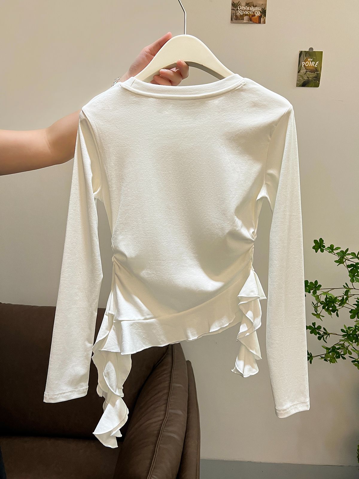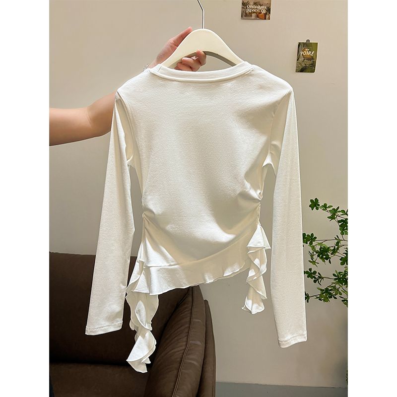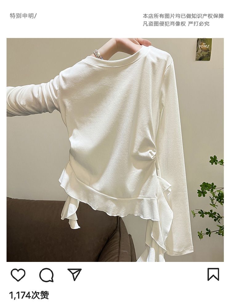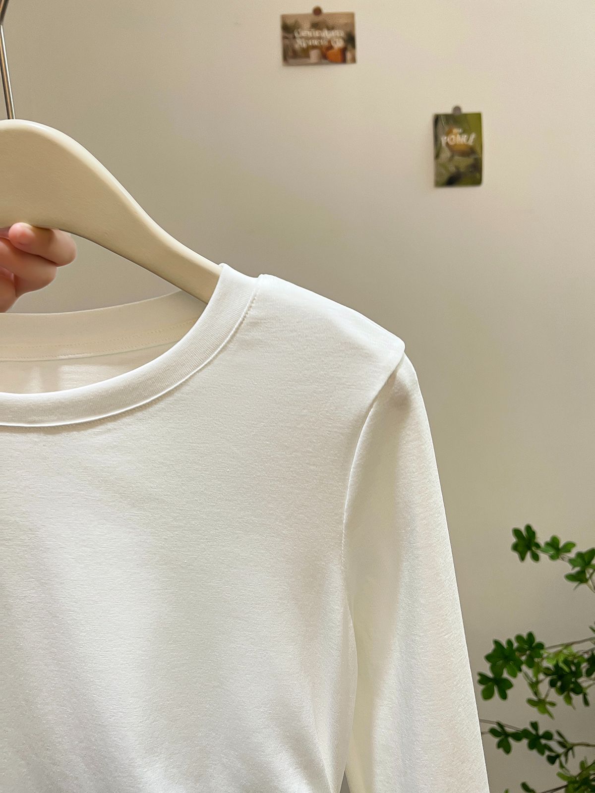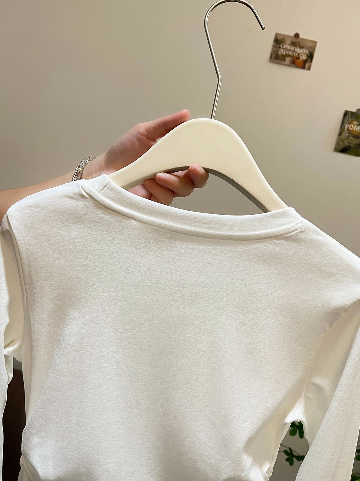 MY14307# 93棉1*1小个子短款不规则修身长袖t恤女秋季上衣女裝貨源服裝批發