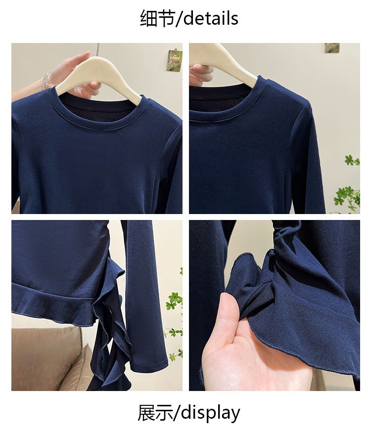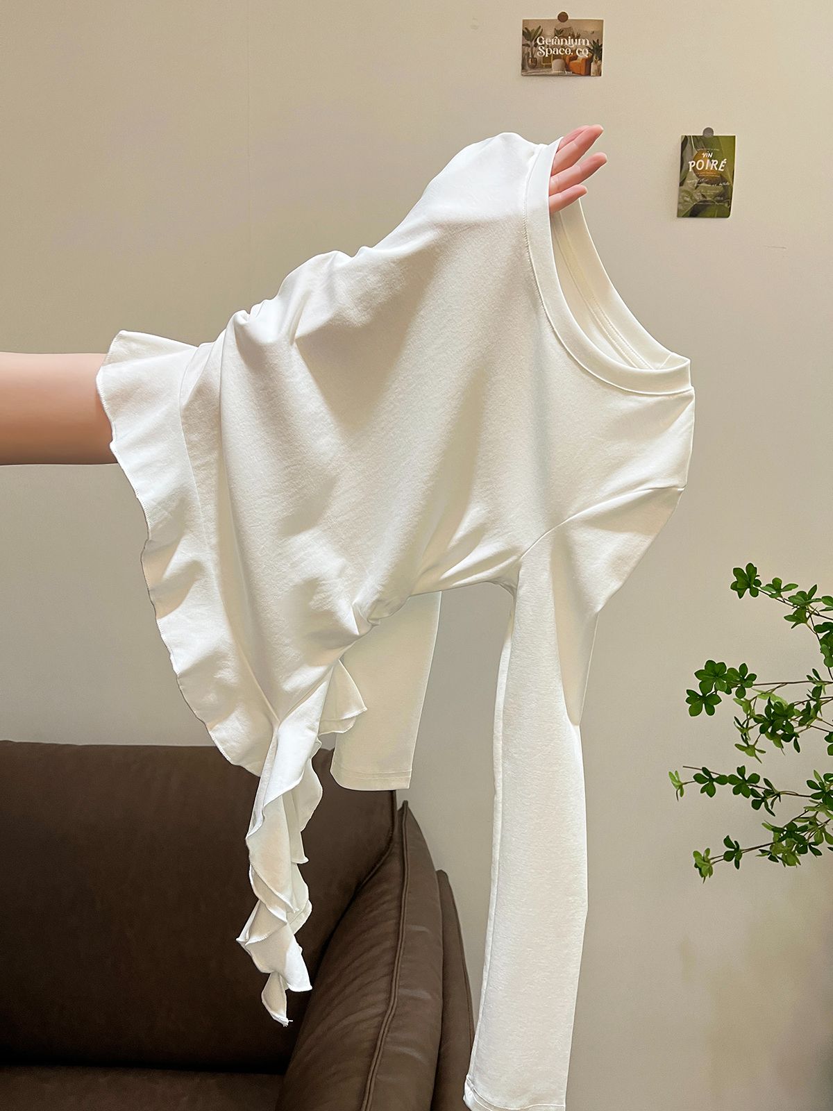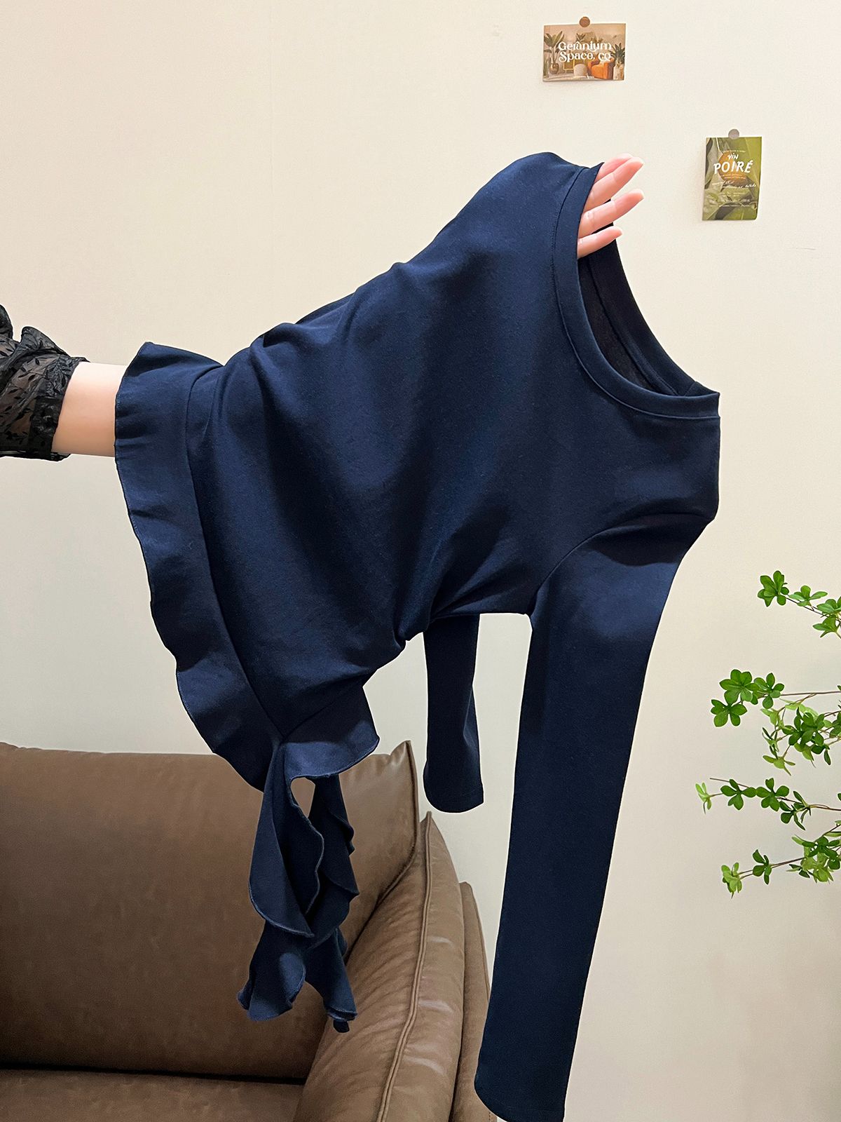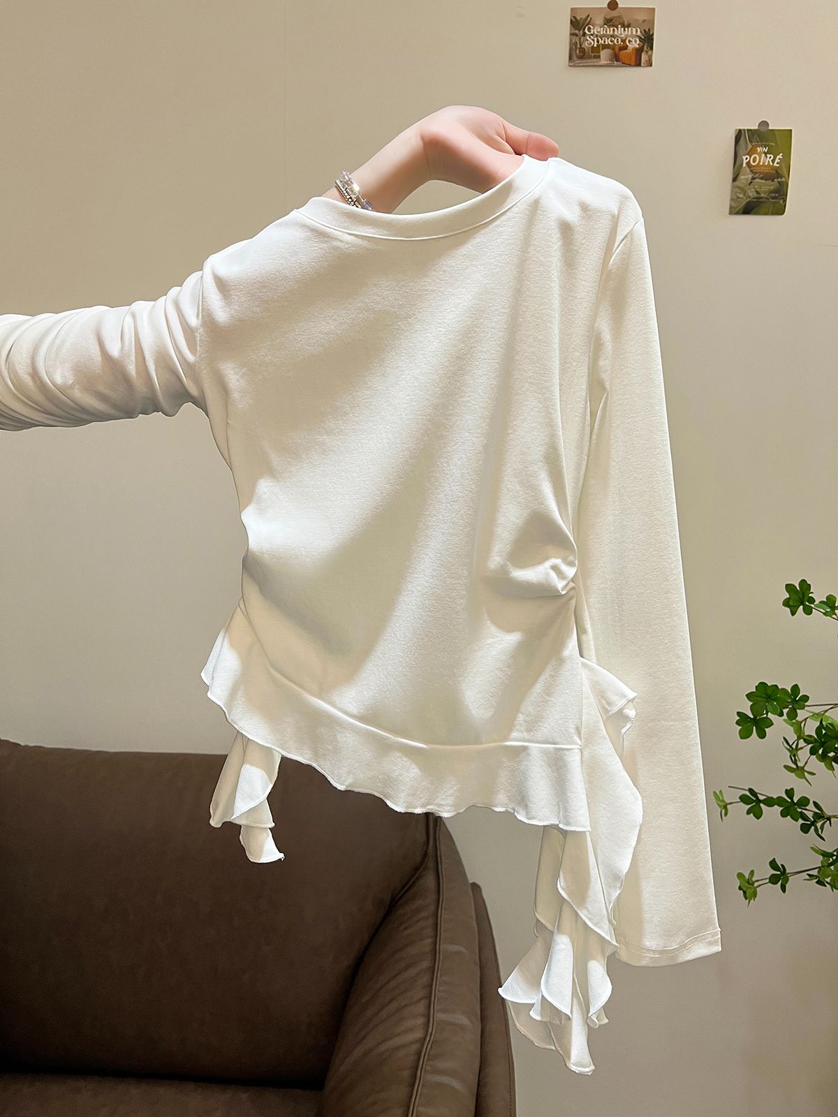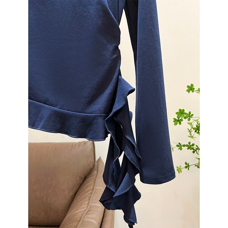 MY14307# 93棉1*1小个子短款不规则修身长袖t恤女秋季上衣女裝貨源服裝批發