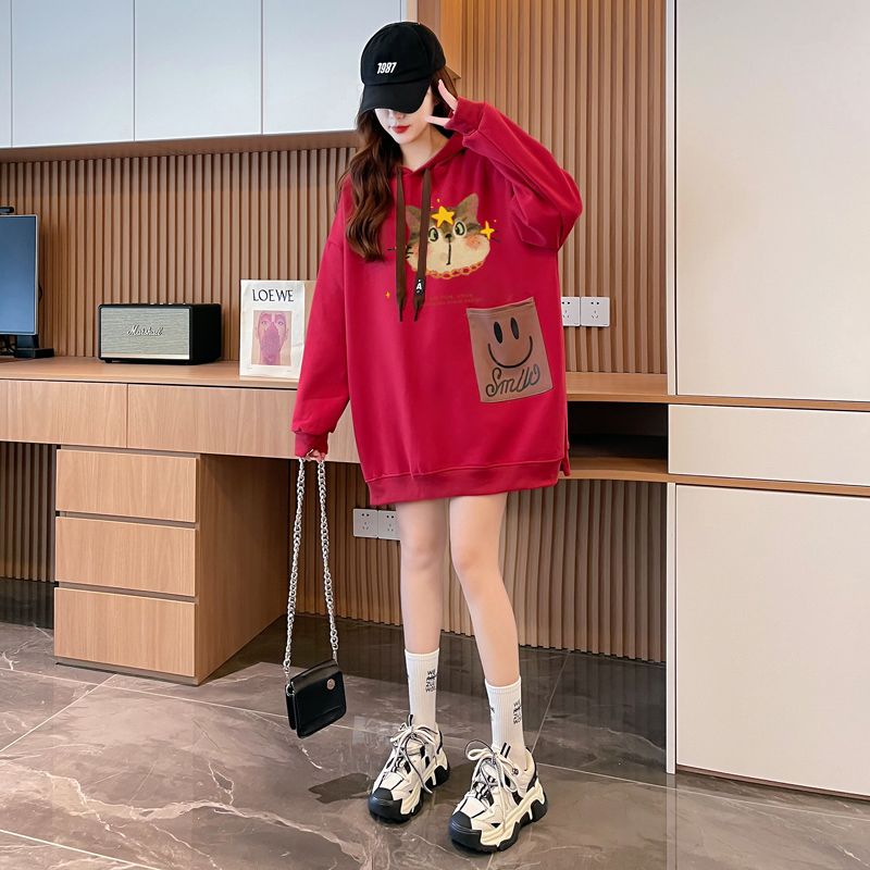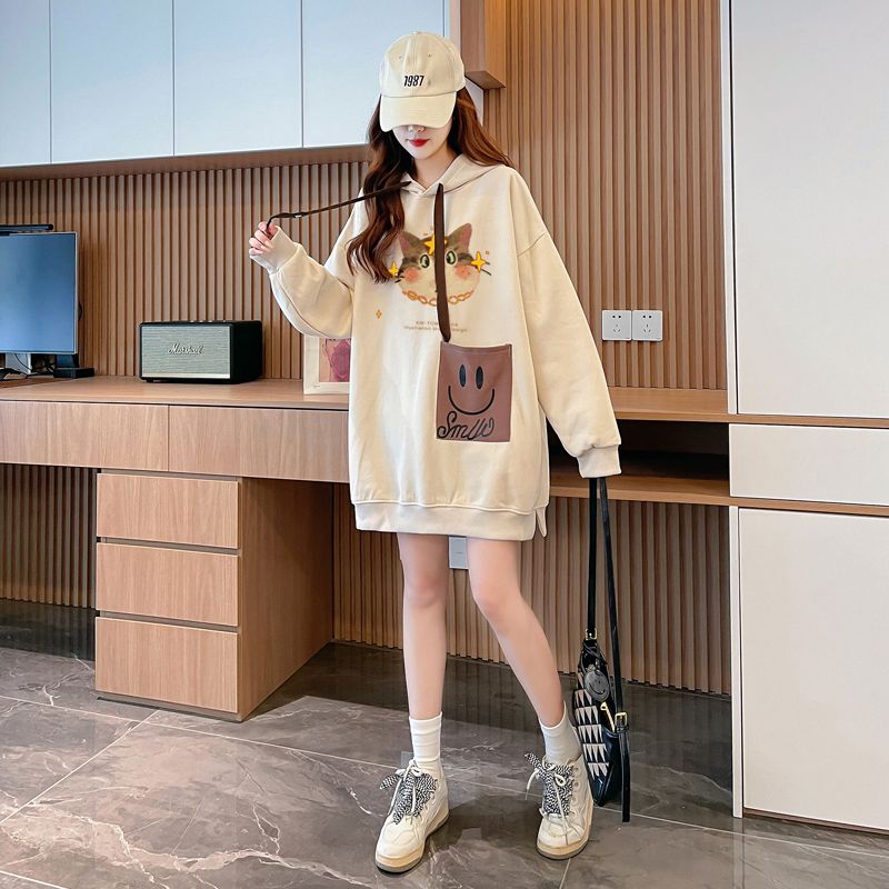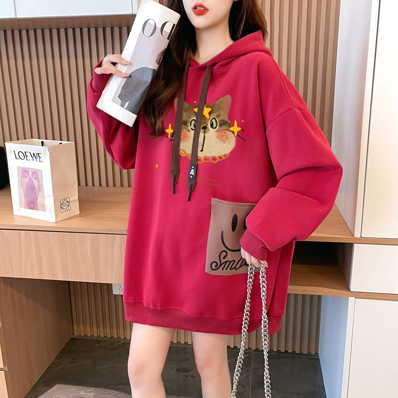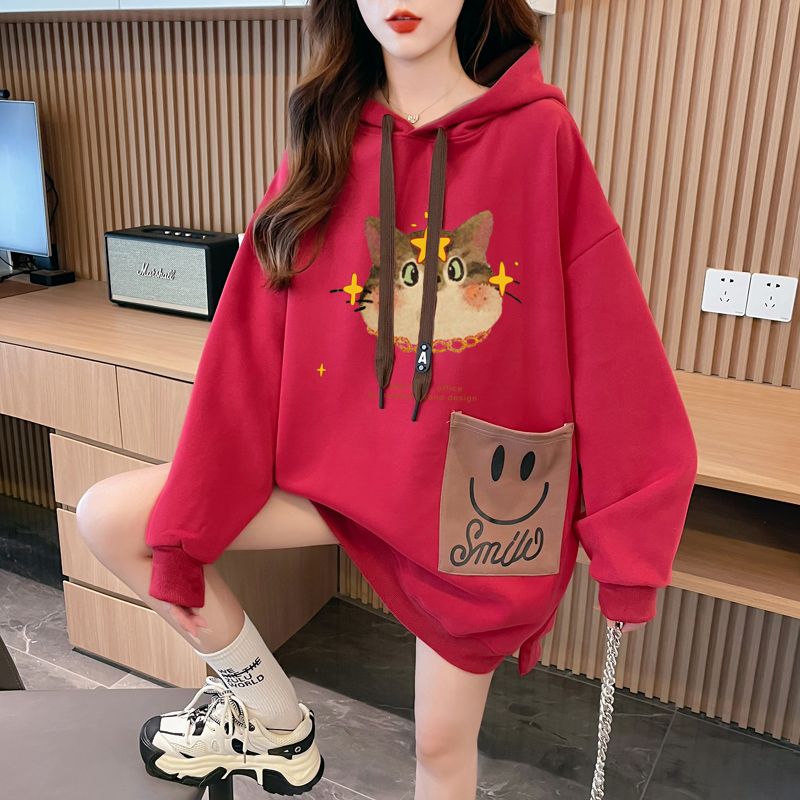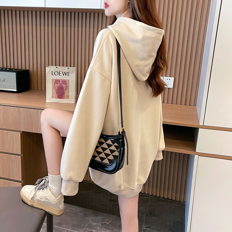 MY14309# 纯棉华棉薄款/加绒双层帽后包领加绒加厚爆款中长款卫衣女女裝貨源服裝批發