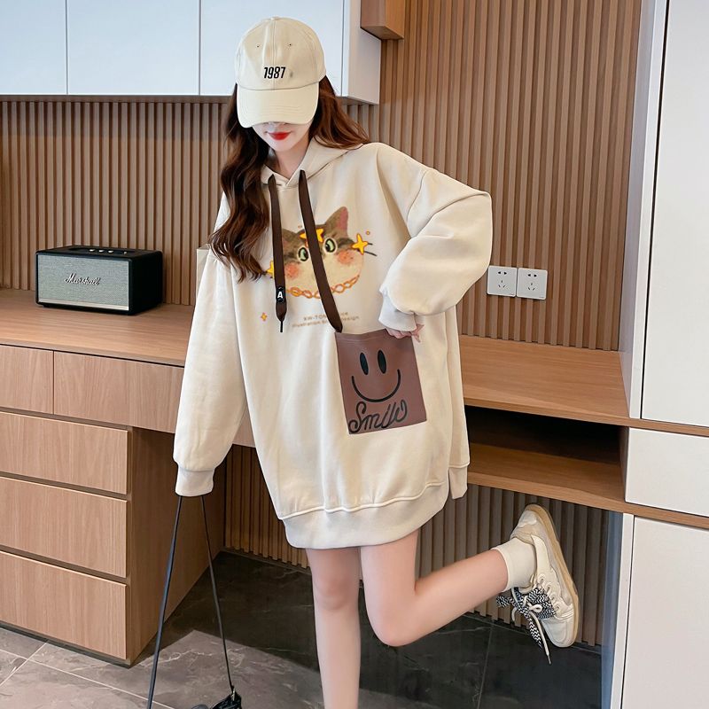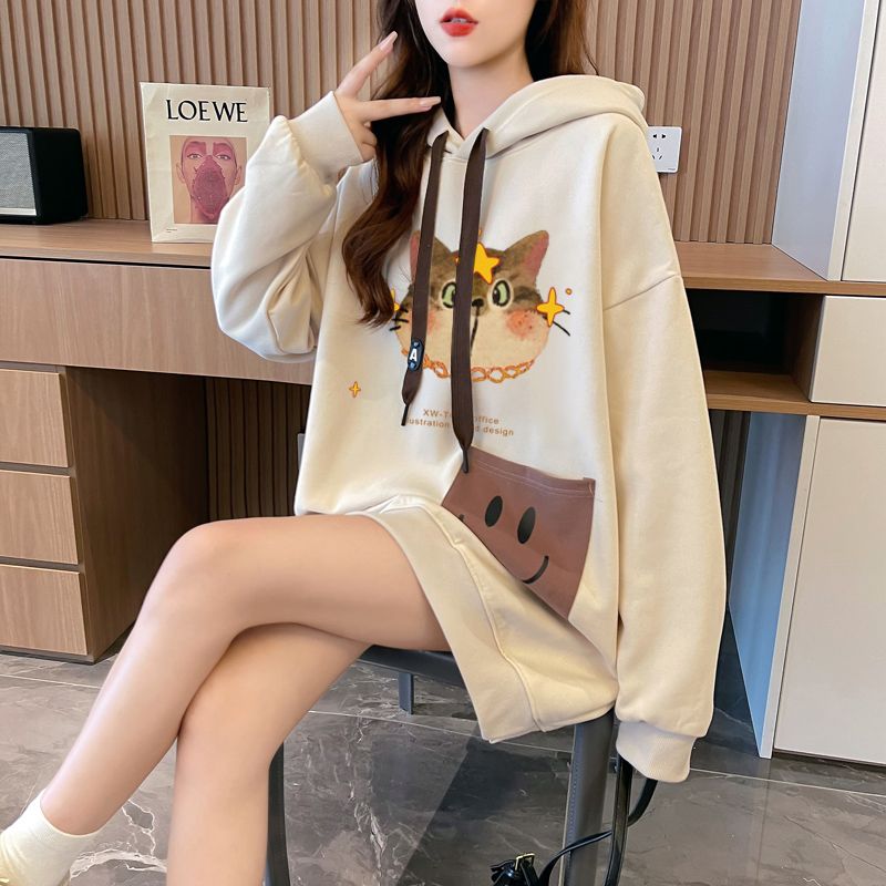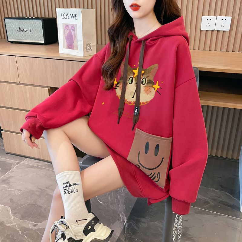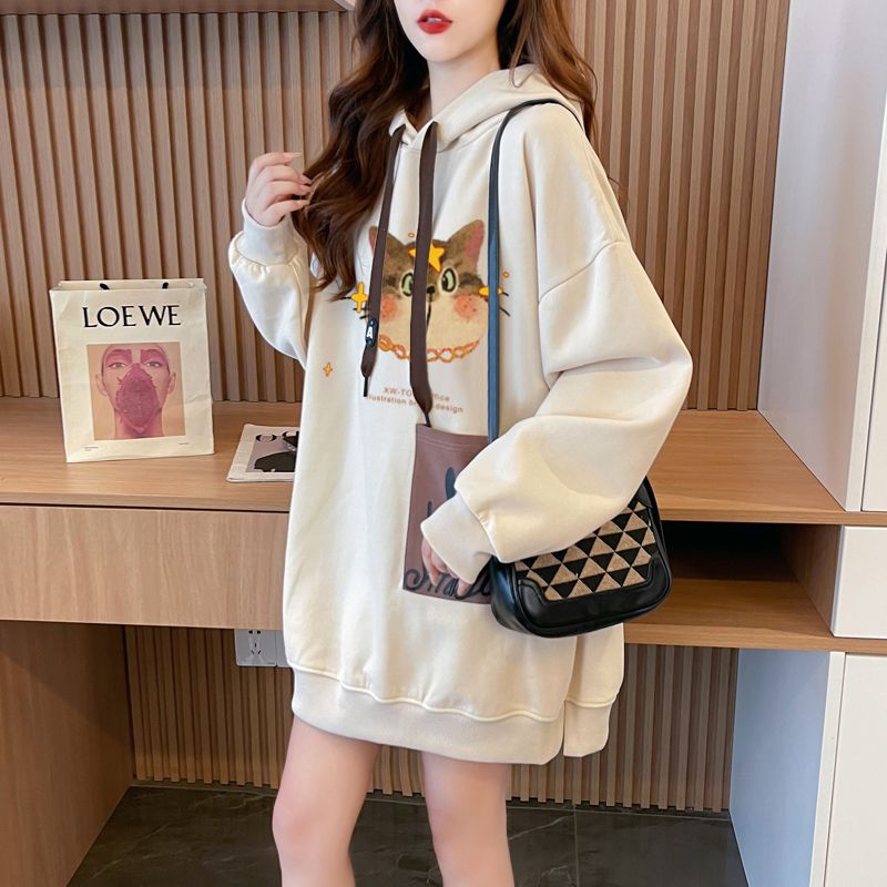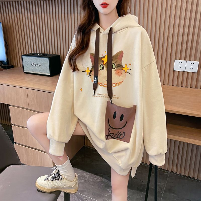 MY14309# 纯棉华棉薄款/加绒双层帽后包领加绒加厚爆款中长款卫衣女女裝貨源服裝批發