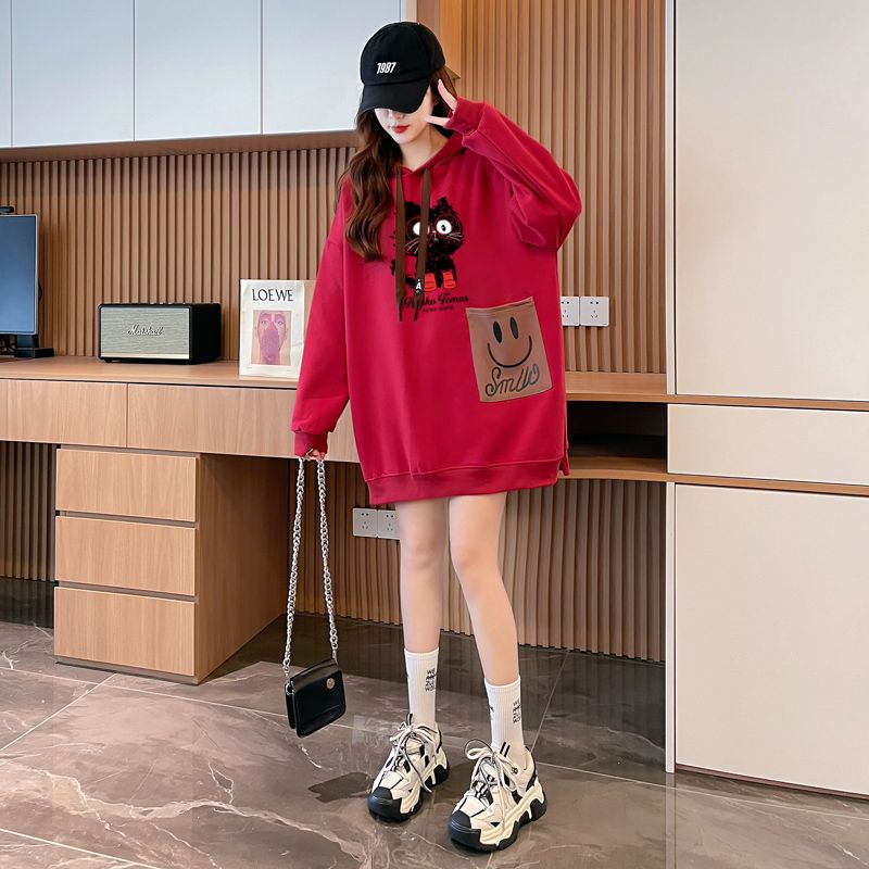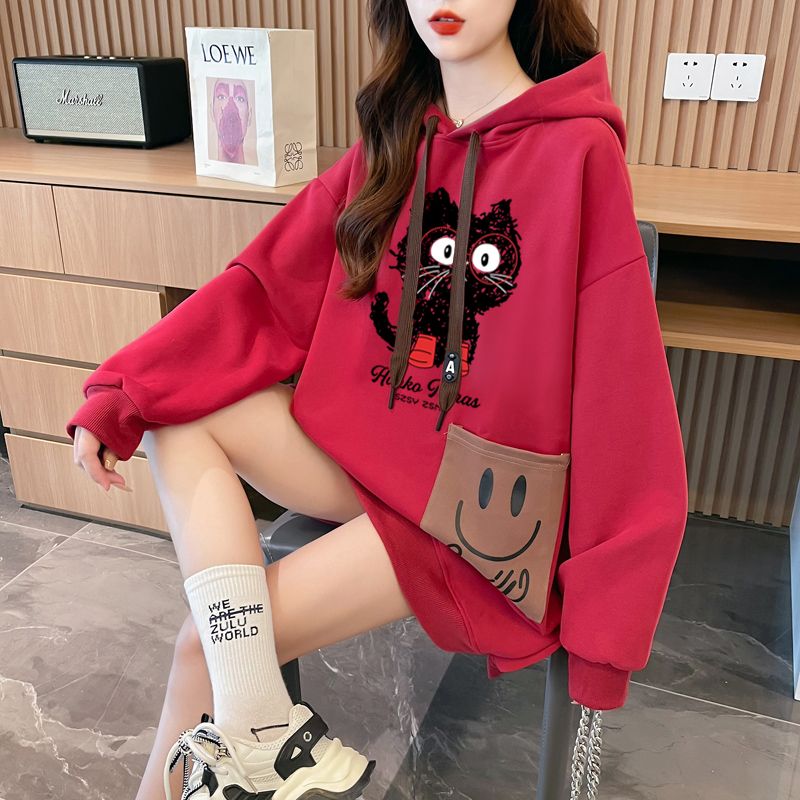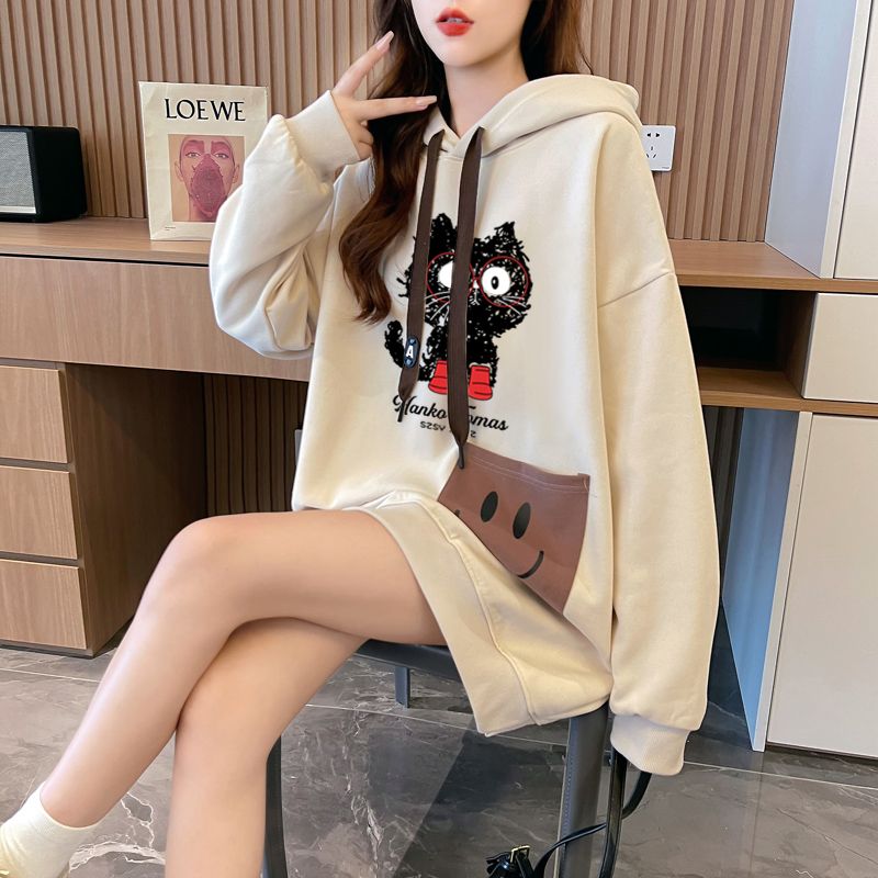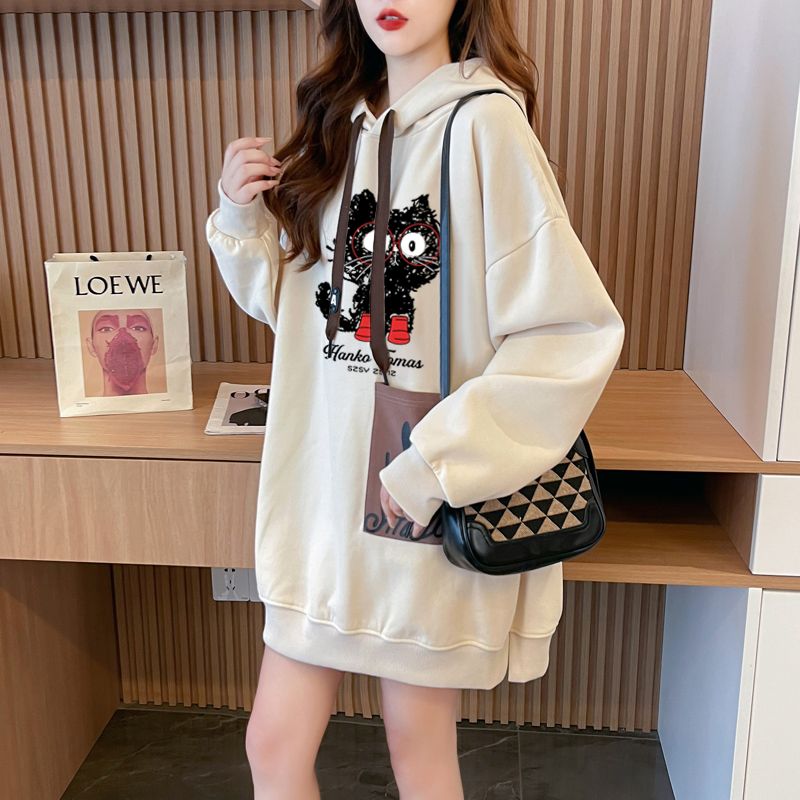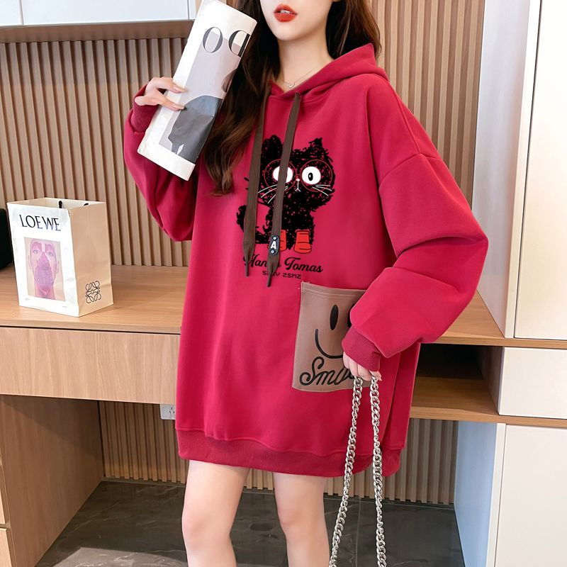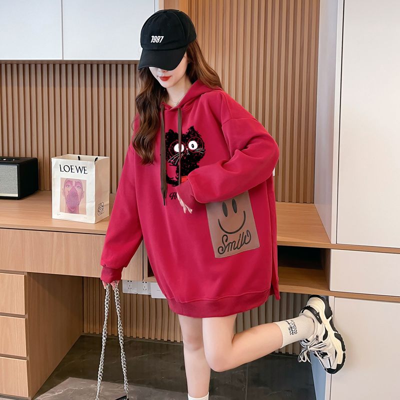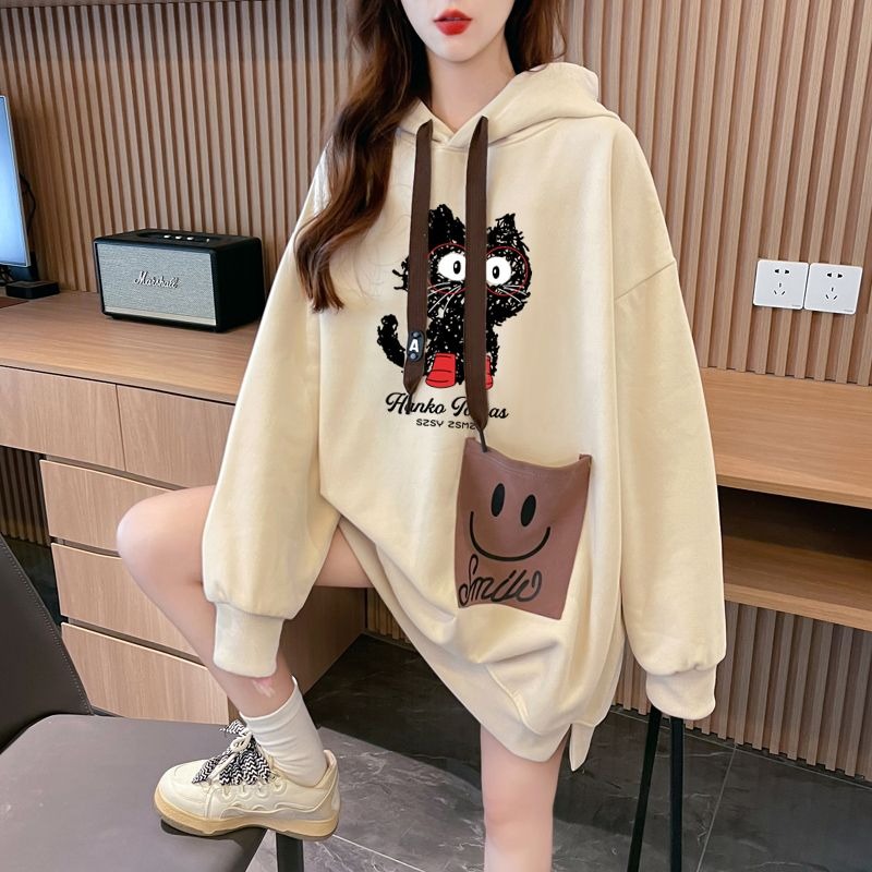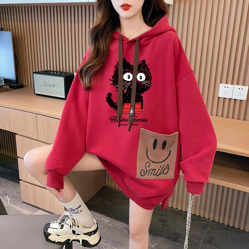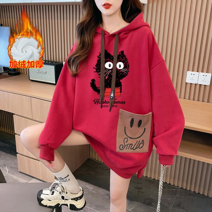MY14311# 纯棉华棉薄款/加绒双层帽后包领加绒加厚爆款中长款卫衣女女裝貨源服裝批發