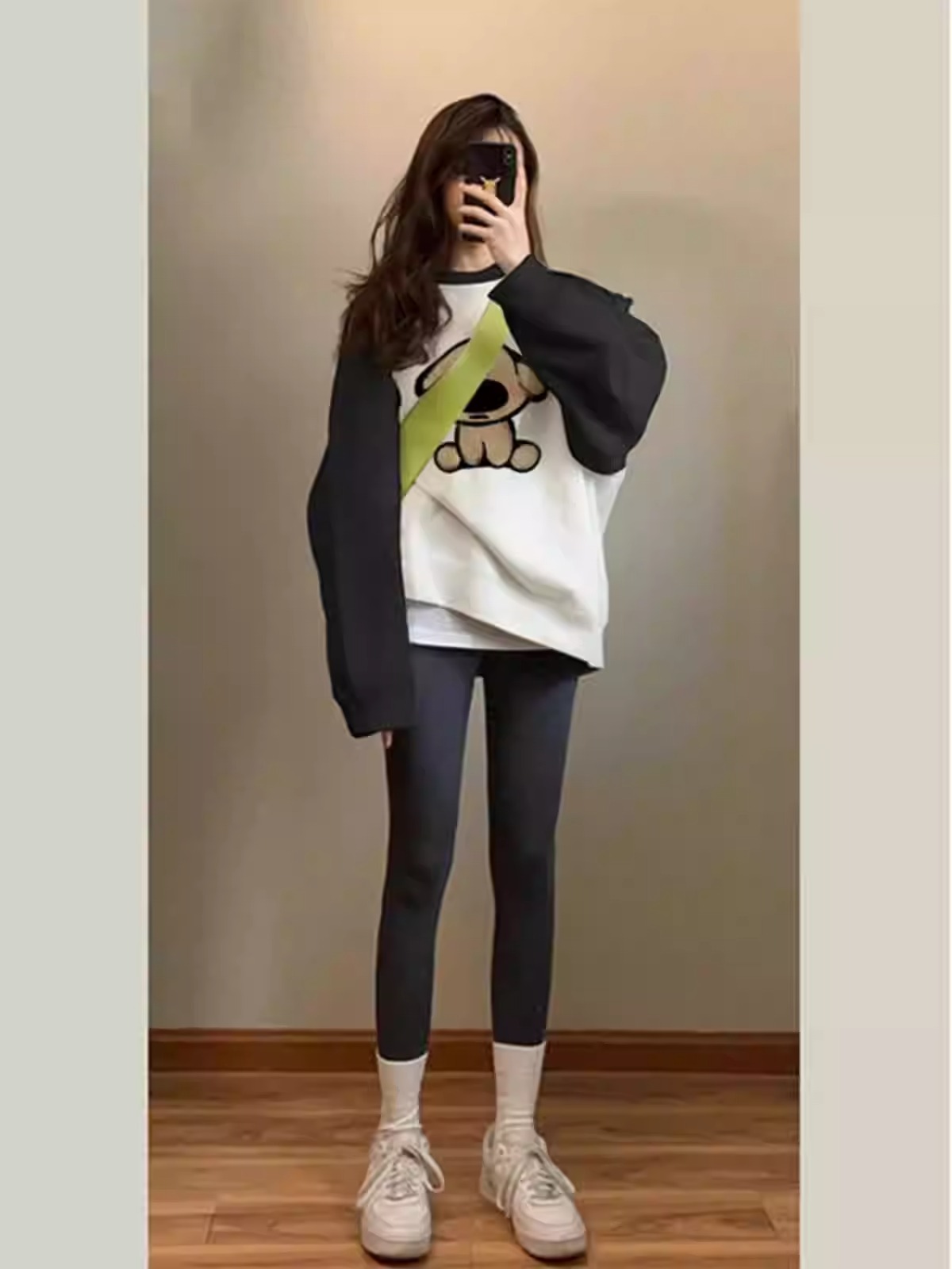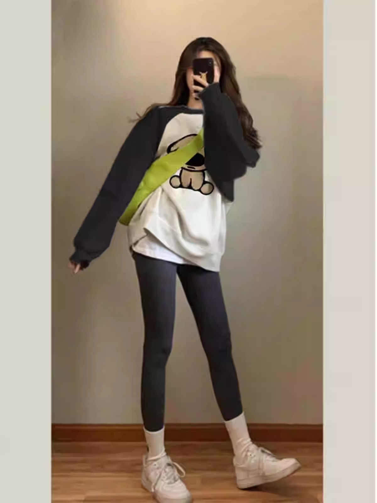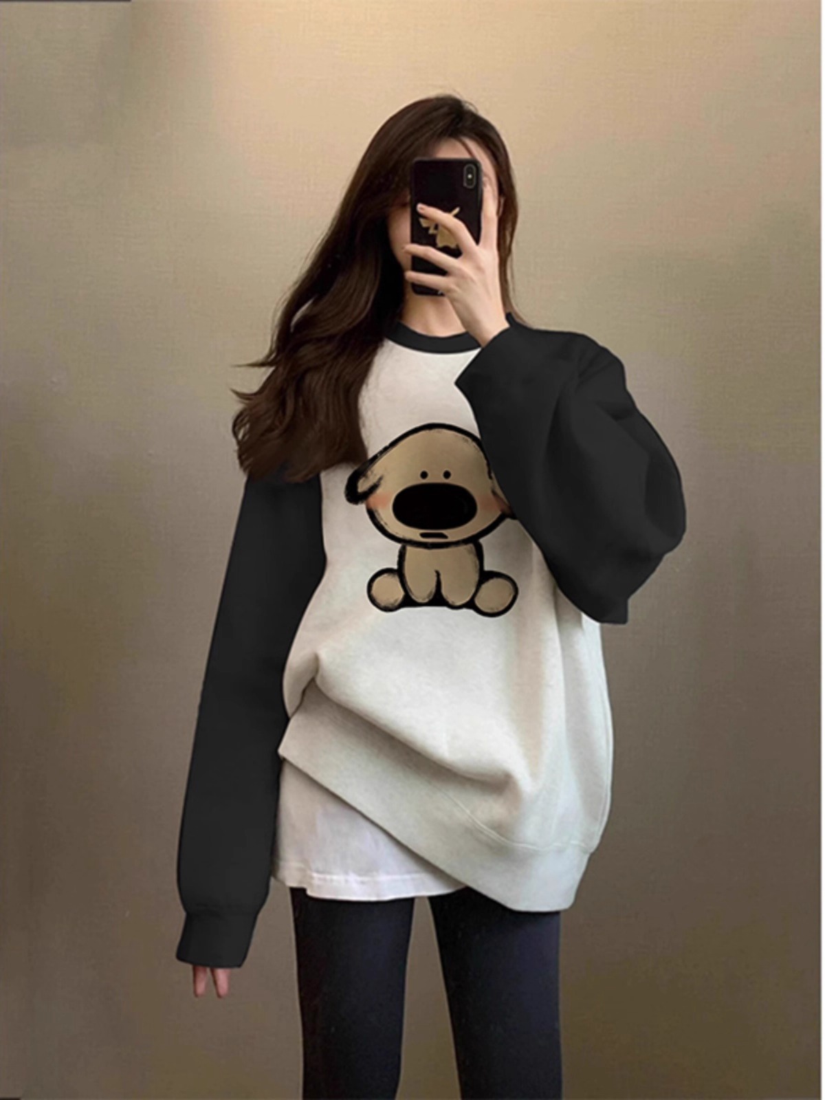 MY14314# 华棉复合 秋冬装插肩袖卫衣女撞色女裝貨源服裝批發