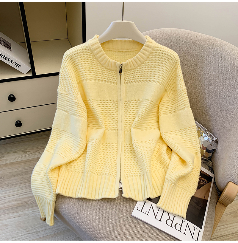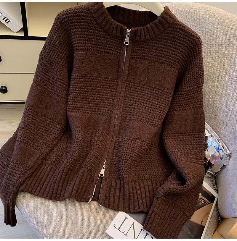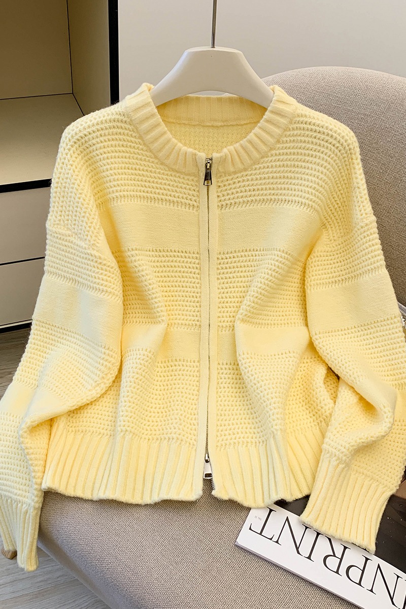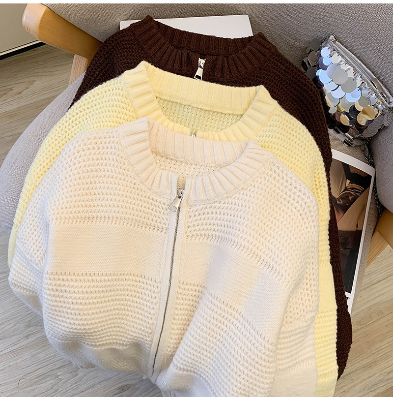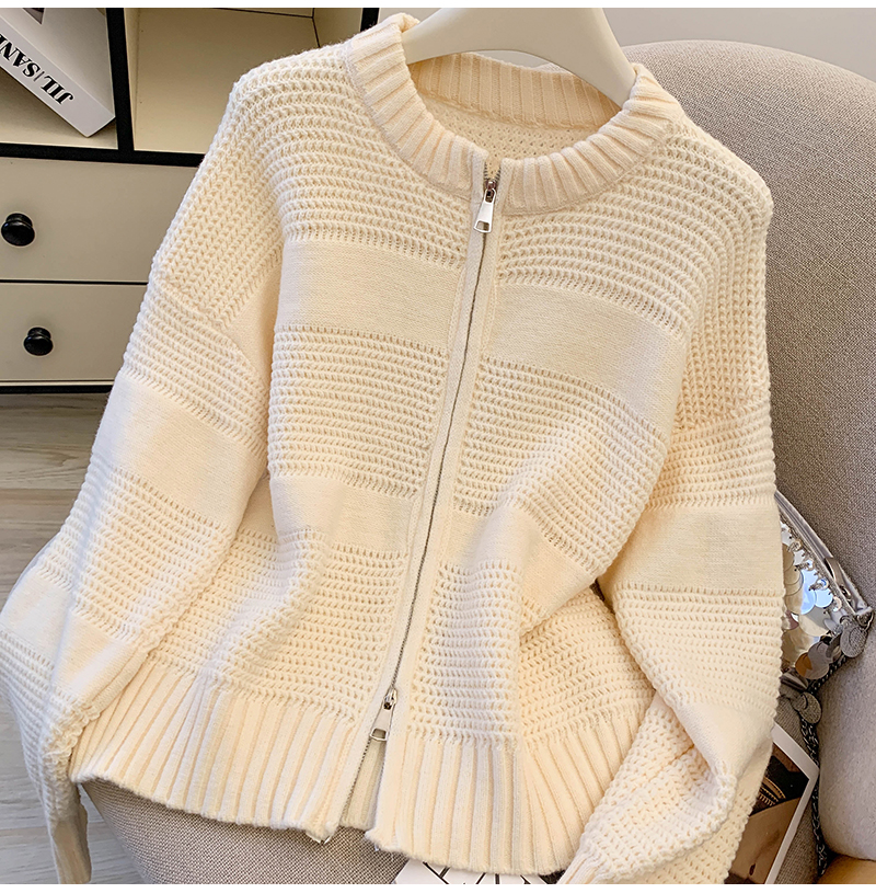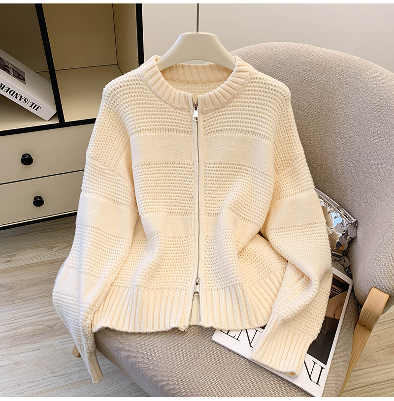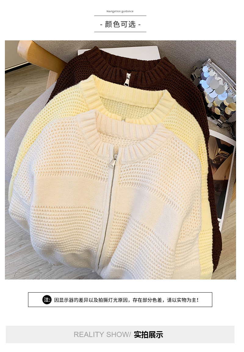 MY14316# 复古重工菠萝针粗针织毛衣外套加厚保暖拉链开衫女东大门女裝貨源服裝批發