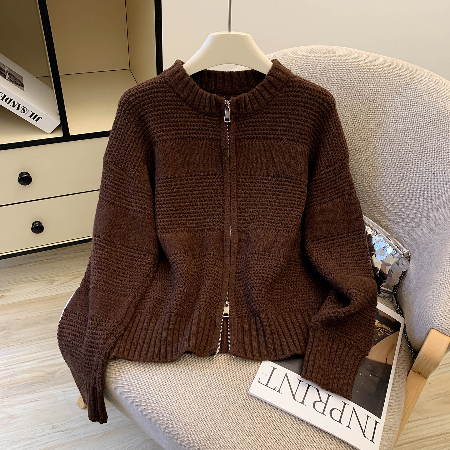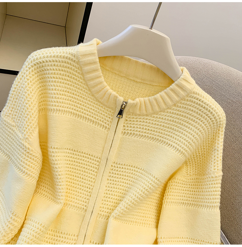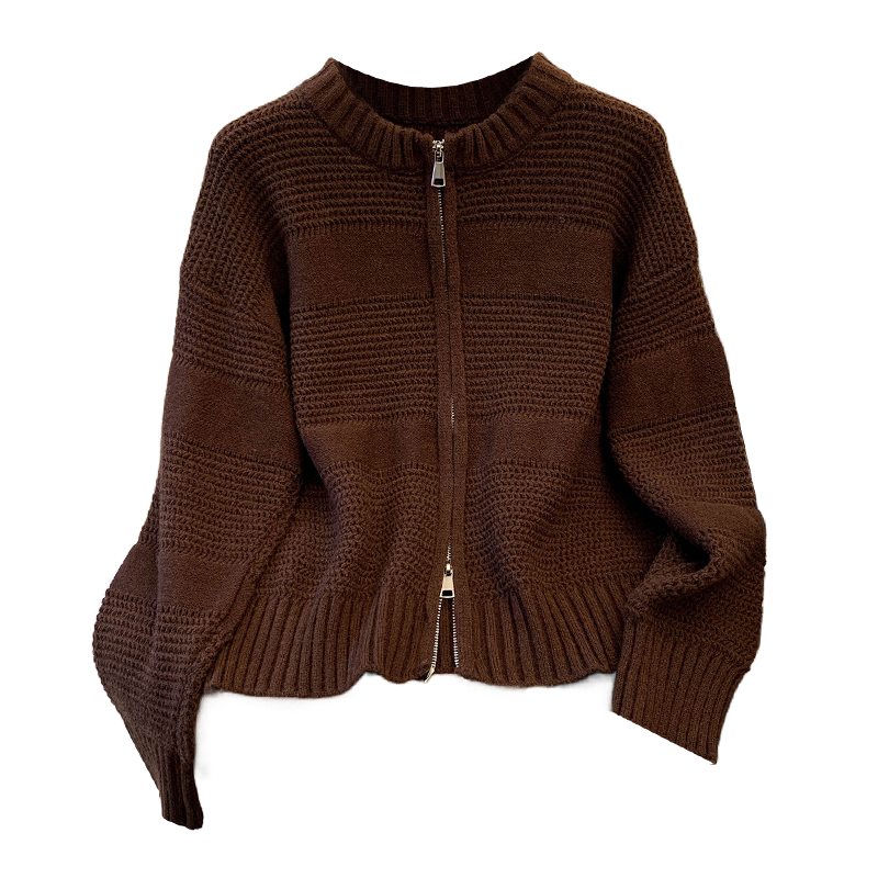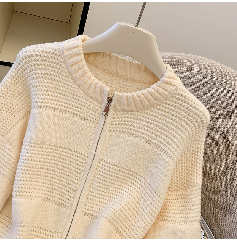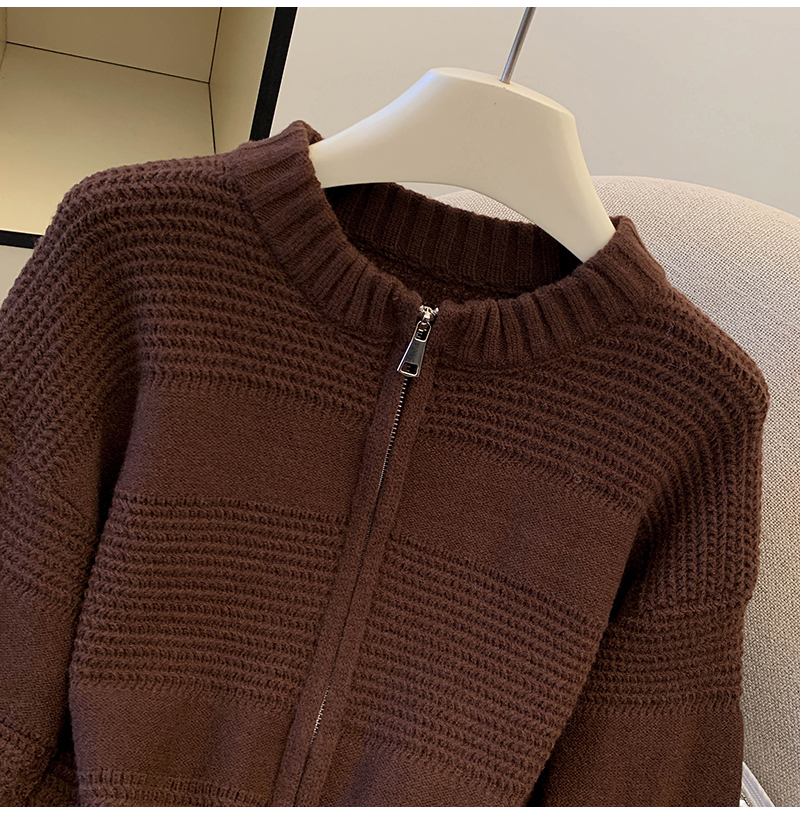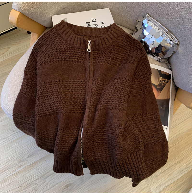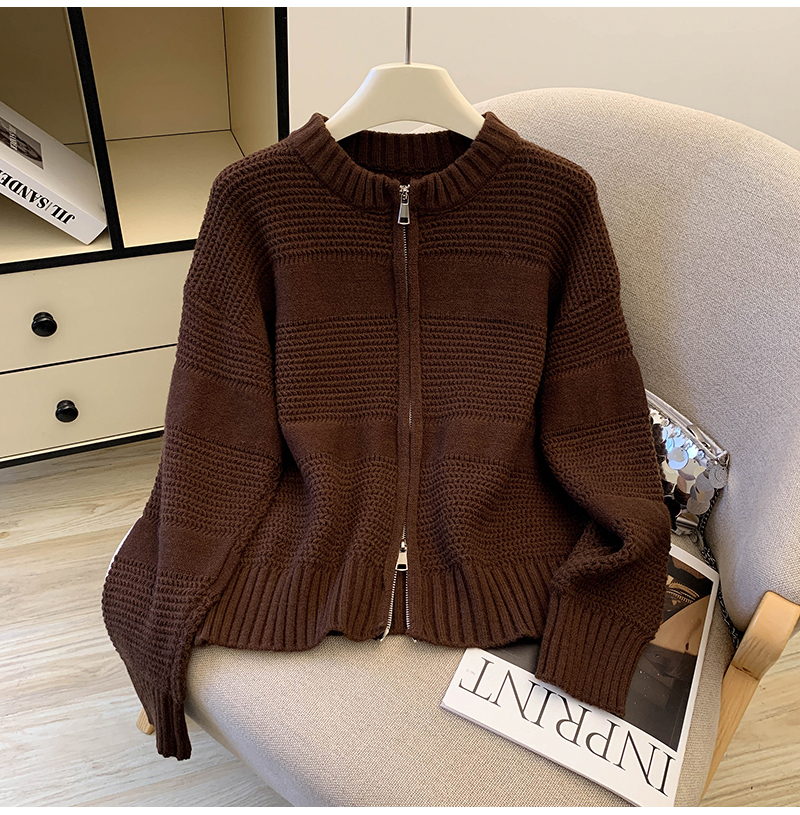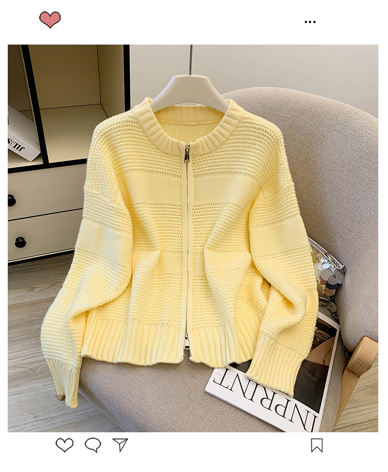 MY14316# 复古重工菠萝针粗针织毛衣外套加厚保暖拉链开衫女东大门女裝貨源服裝批發