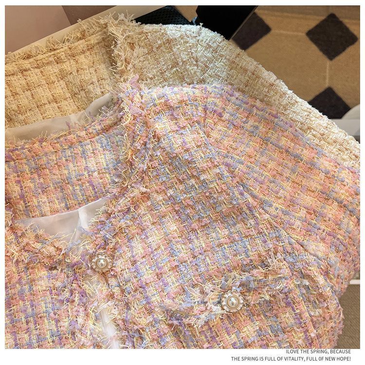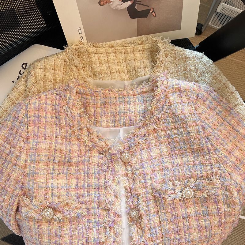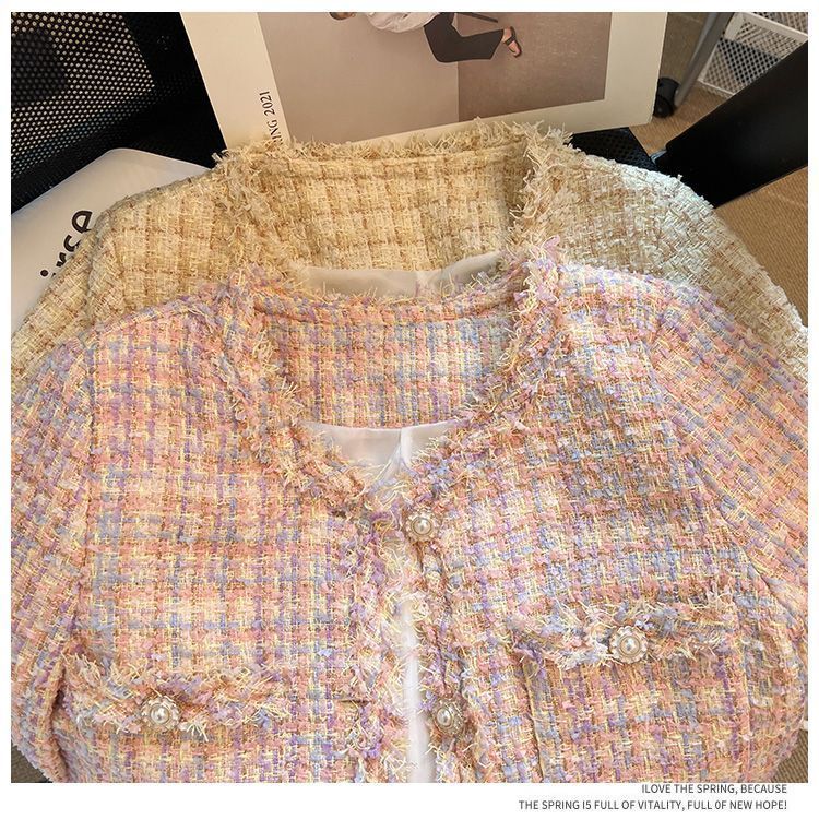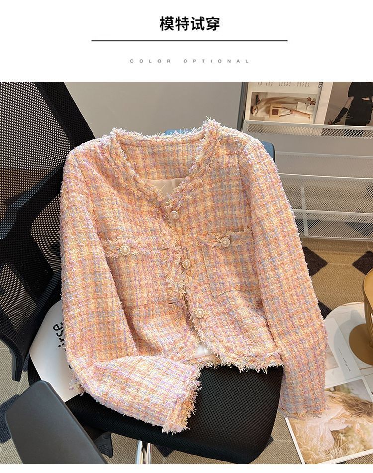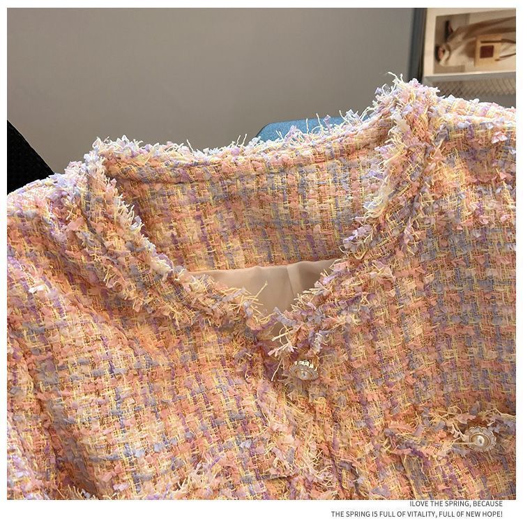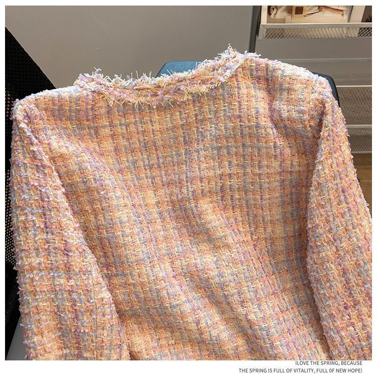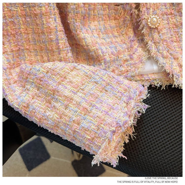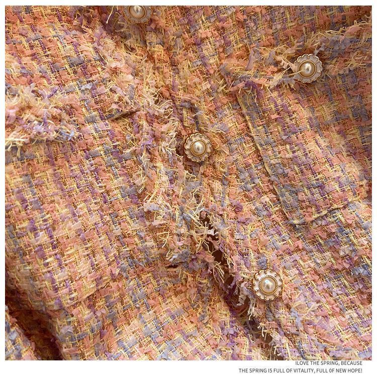 MY14319# 高档小香风外套 碎边五彩粉 宽松百搭外贸爆款女裝貨源服裝批發