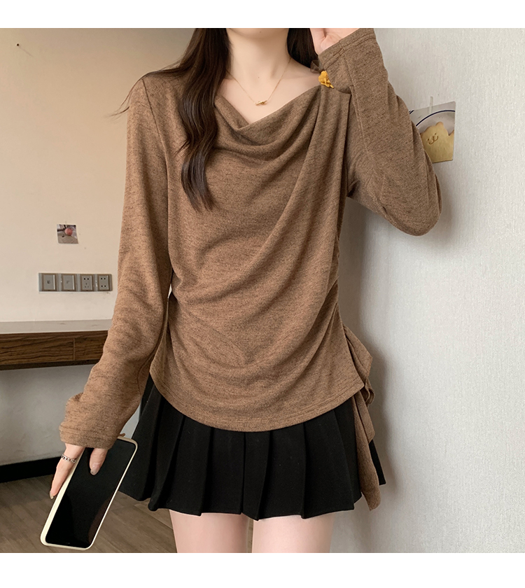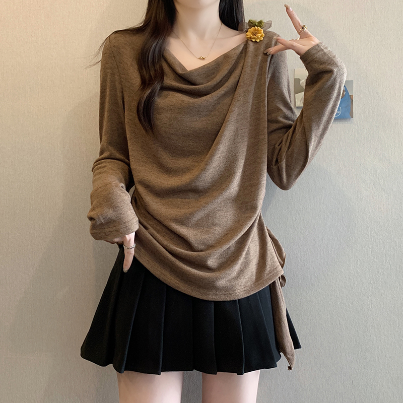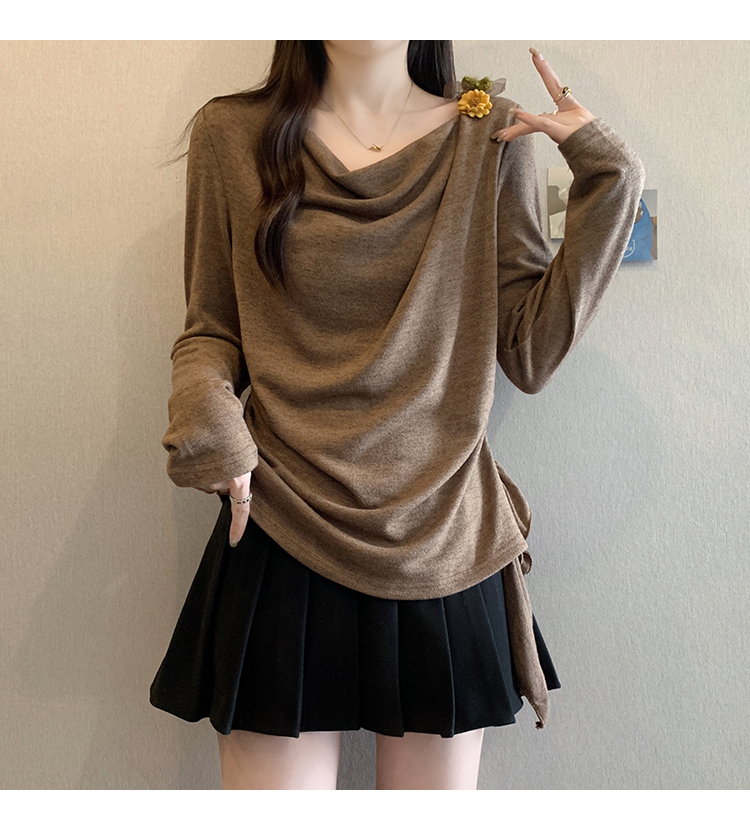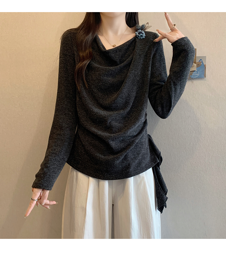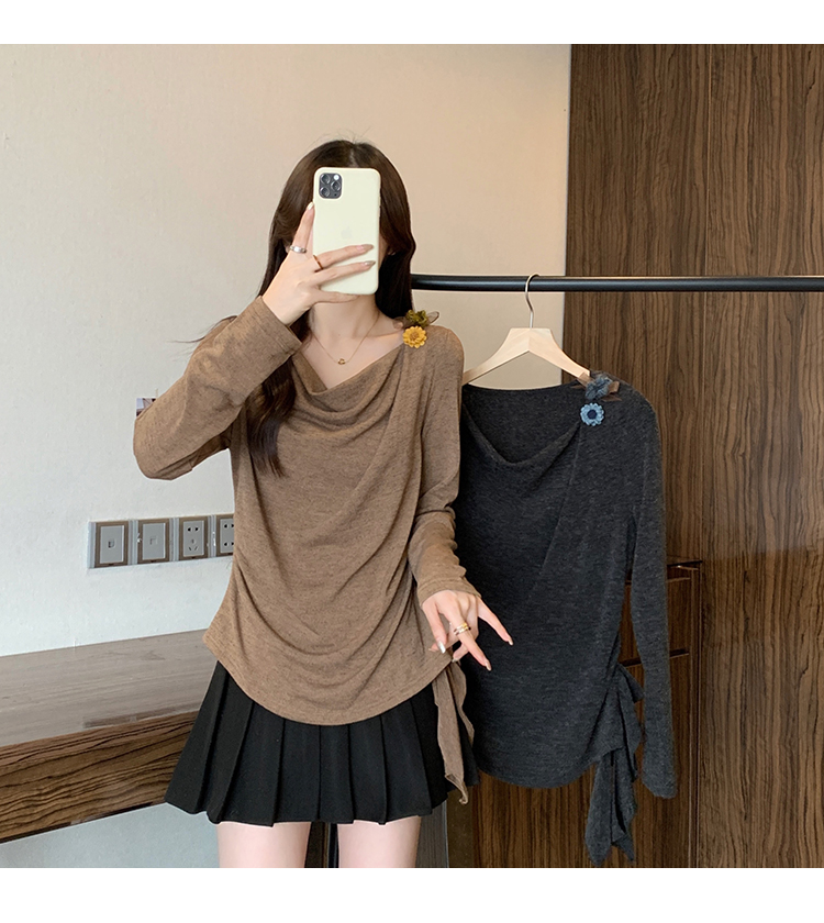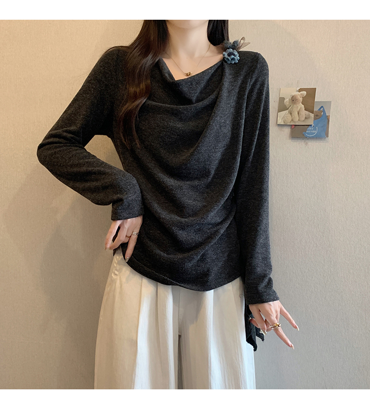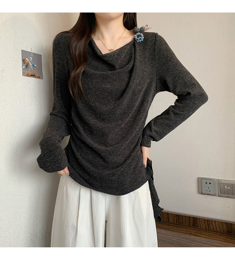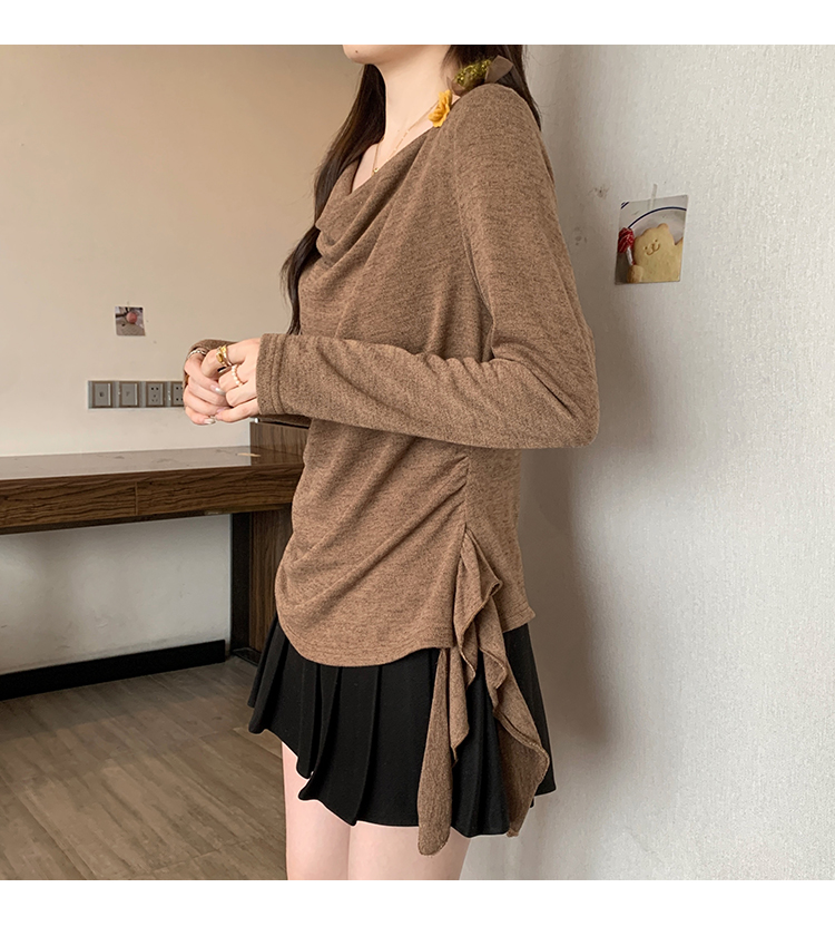MY14349# 新款胖mm大码女时尚荡领不规则修身显瘦内搭长袖上衣女裝貨源服裝批發