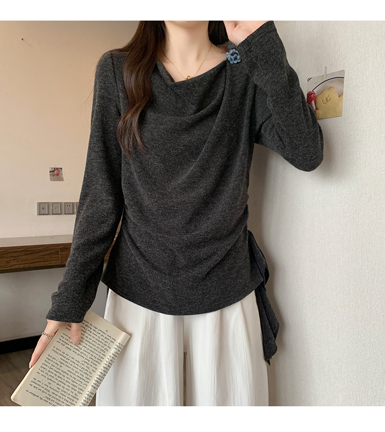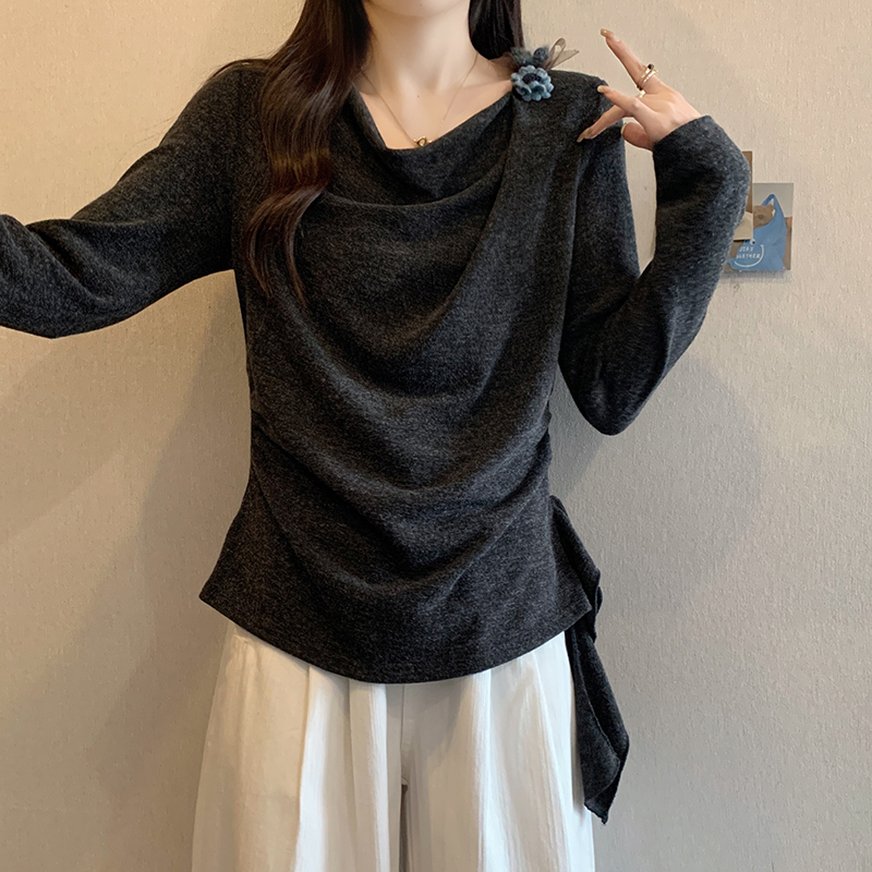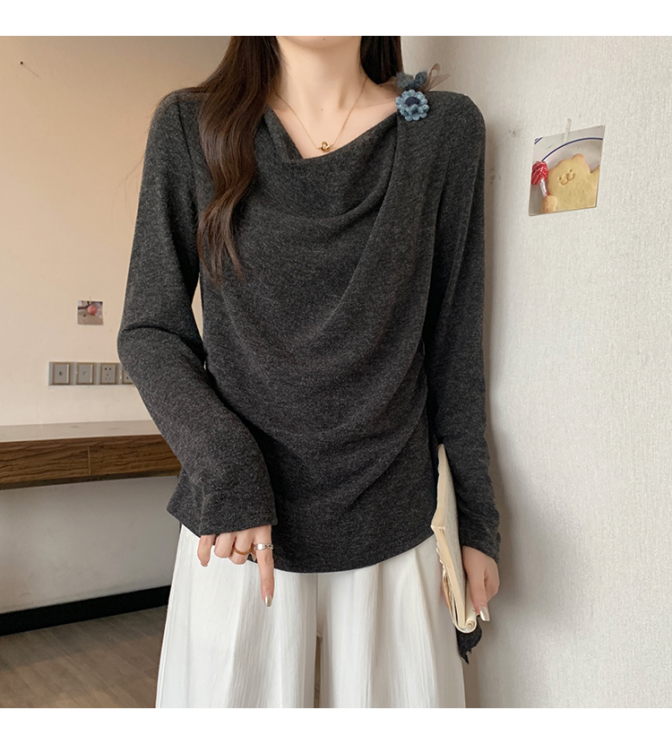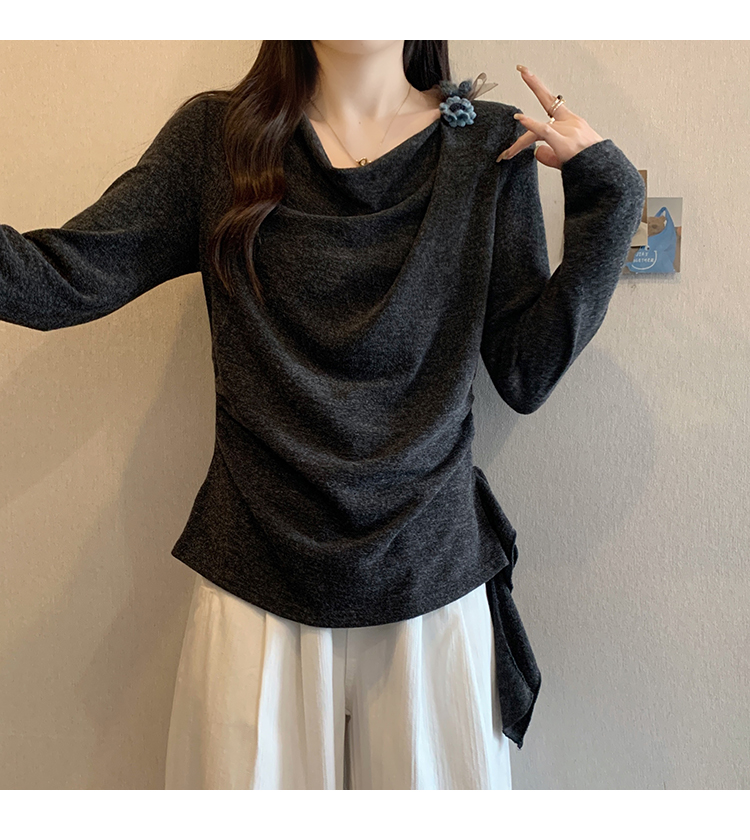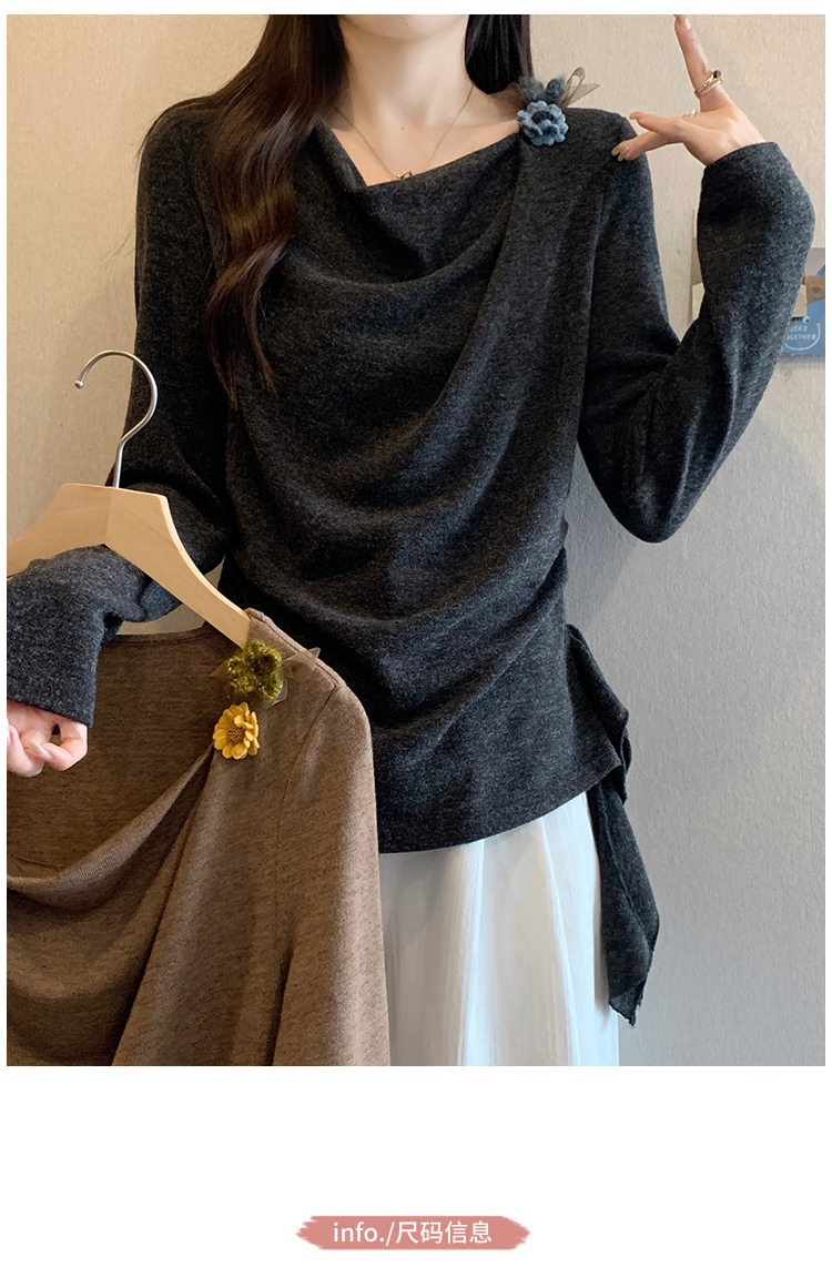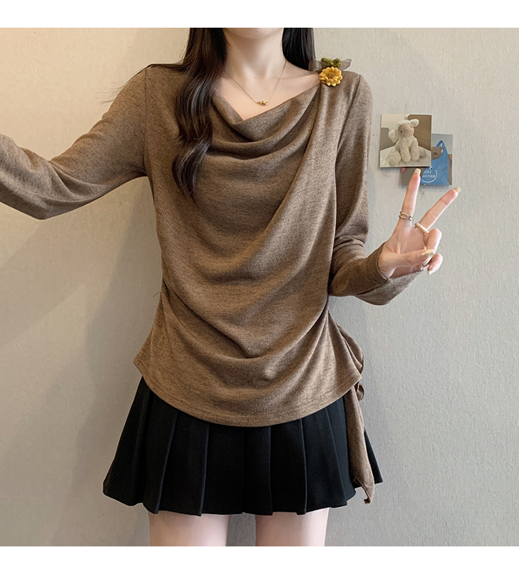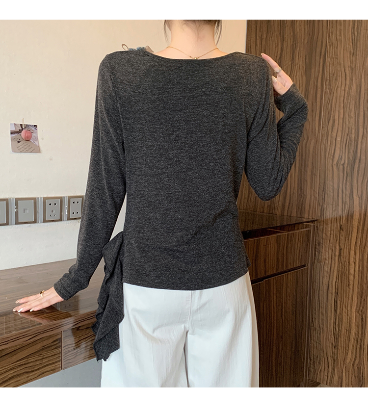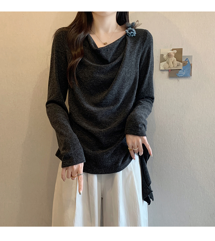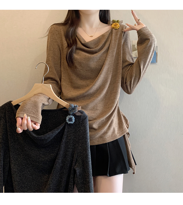 MY14349# 新款胖mm大码女时尚荡领不规则修身显瘦内搭长袖上衣女裝貨源服裝批發