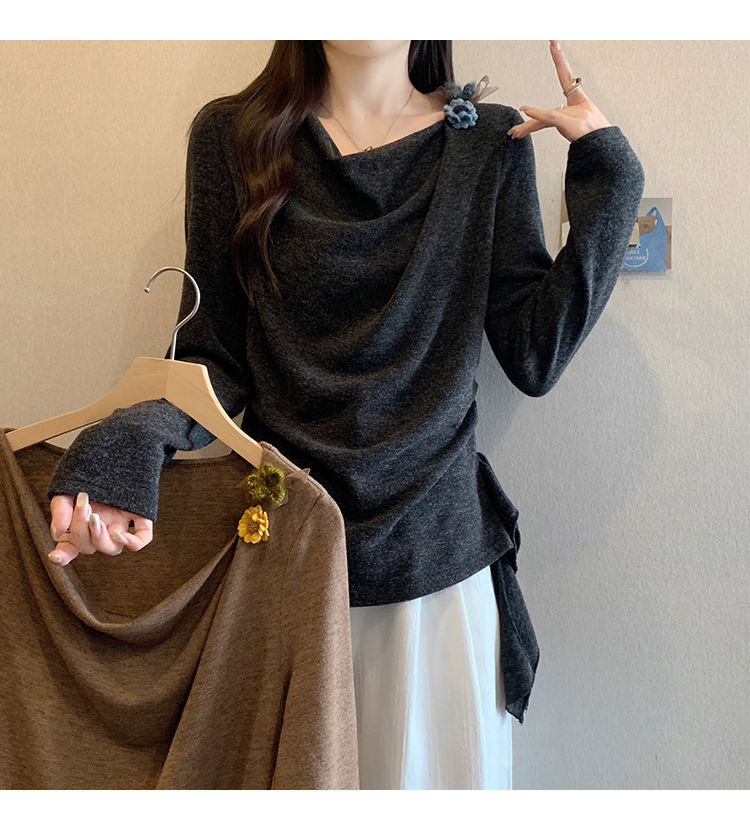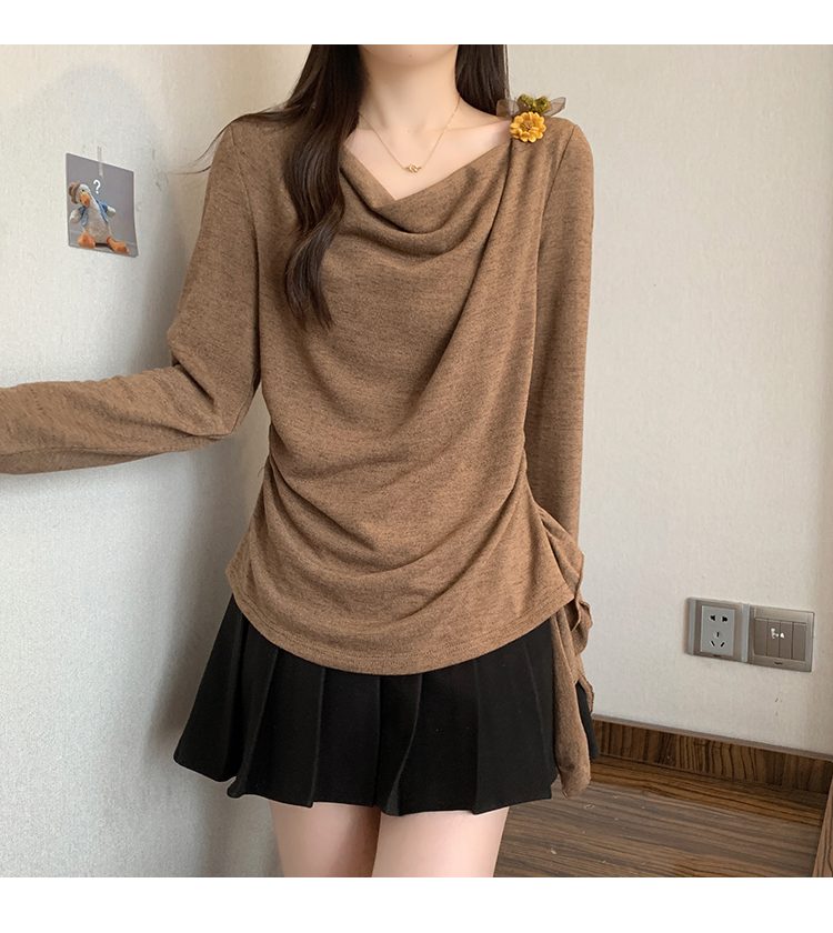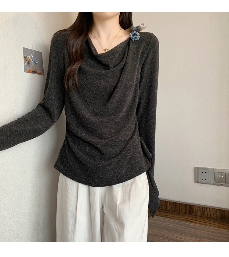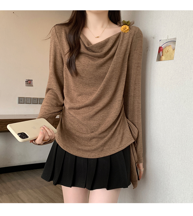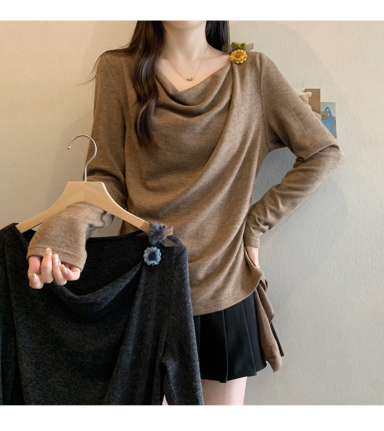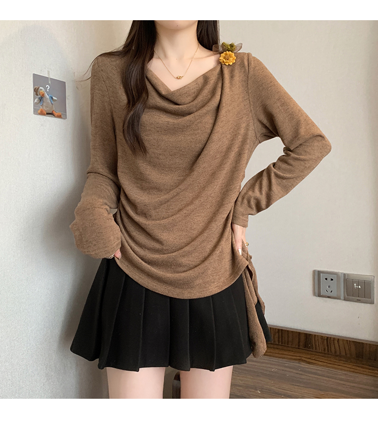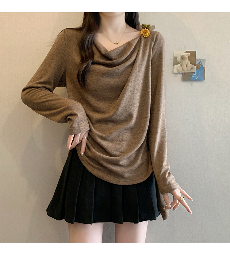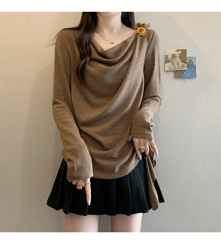 MY14349# 新款胖mm大码女时尚荡领不规则修身显瘦内搭长袖上衣女裝貨源服裝批發
