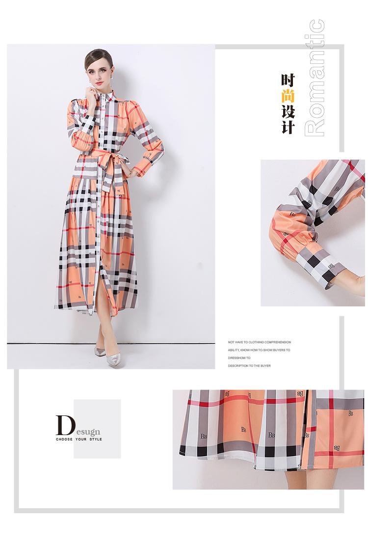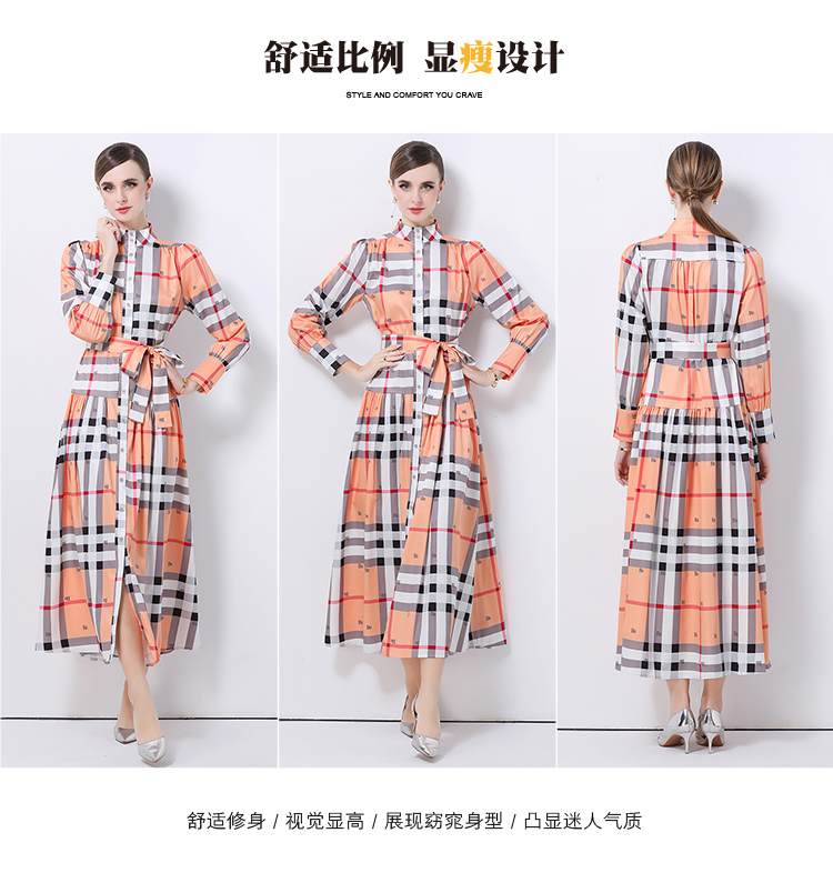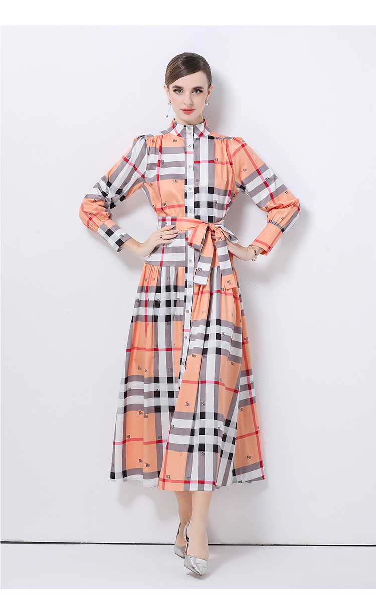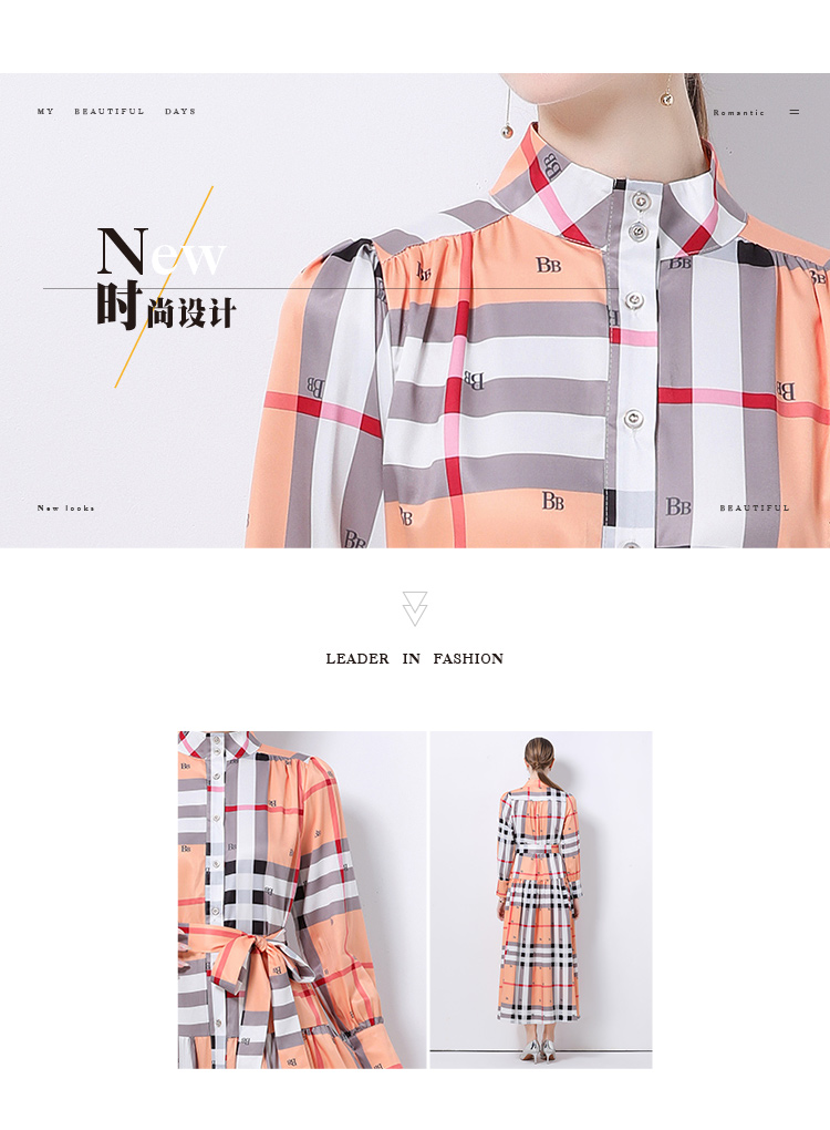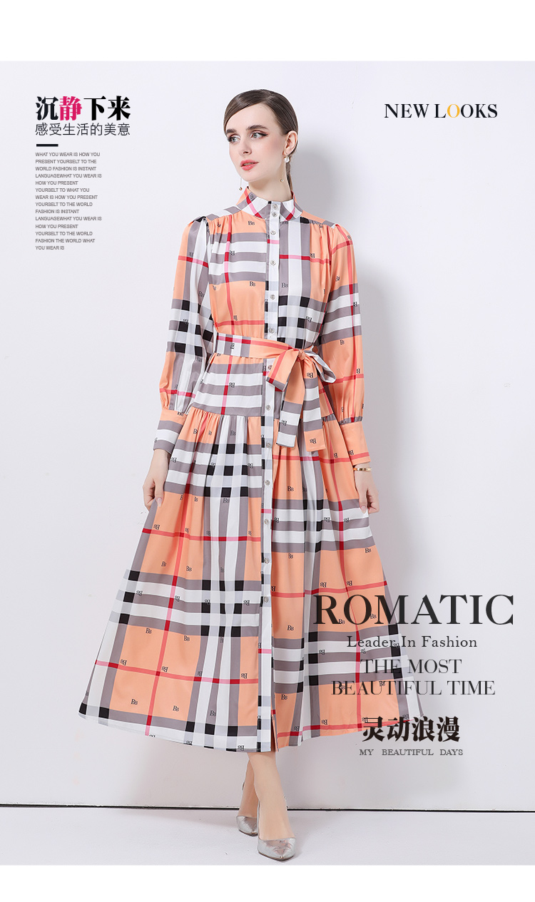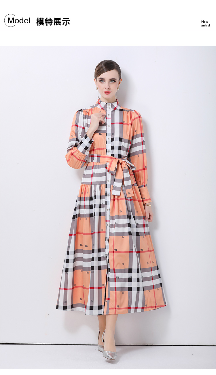 MY14895# 欧美时尚宫廷风立领单排扣印花连衣裙女裝貨源服裝批發