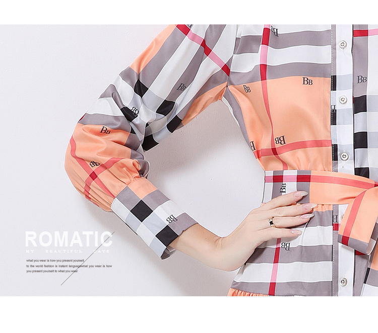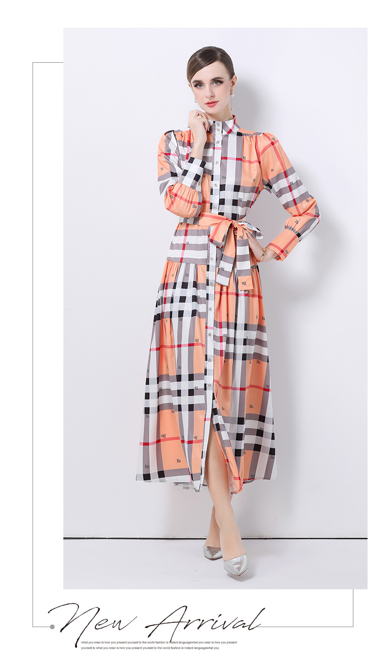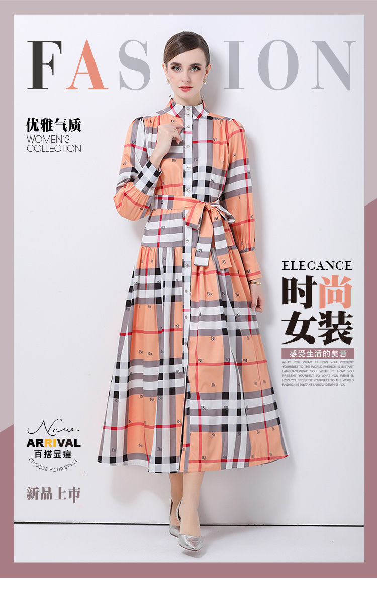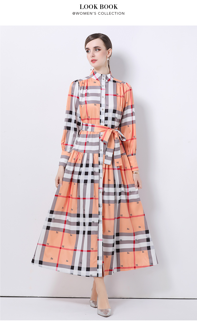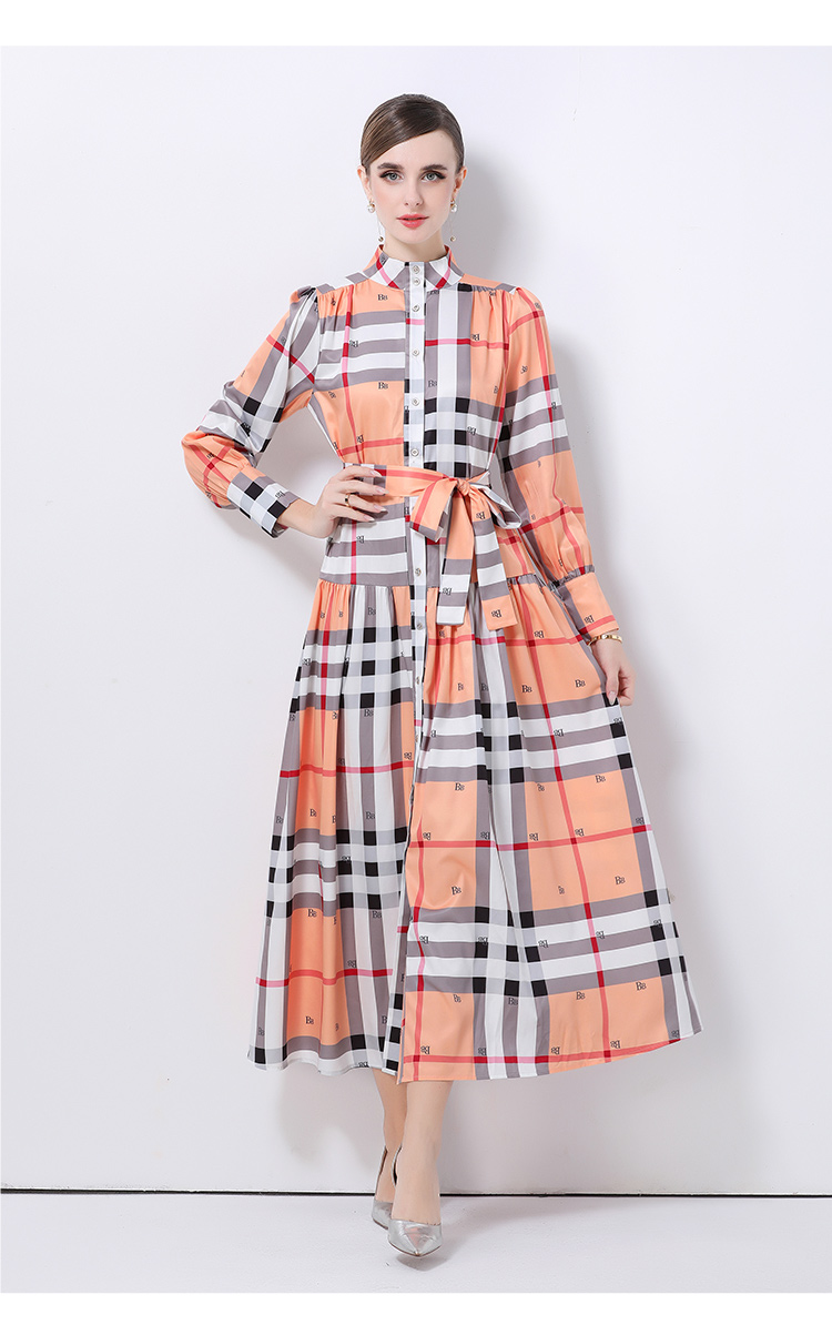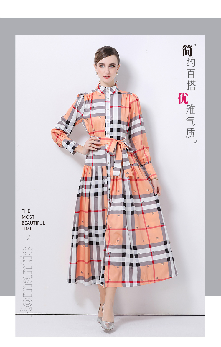 MY14895# 欧美时尚宫廷风立领单排扣印花连衣裙女裝貨源服裝批發